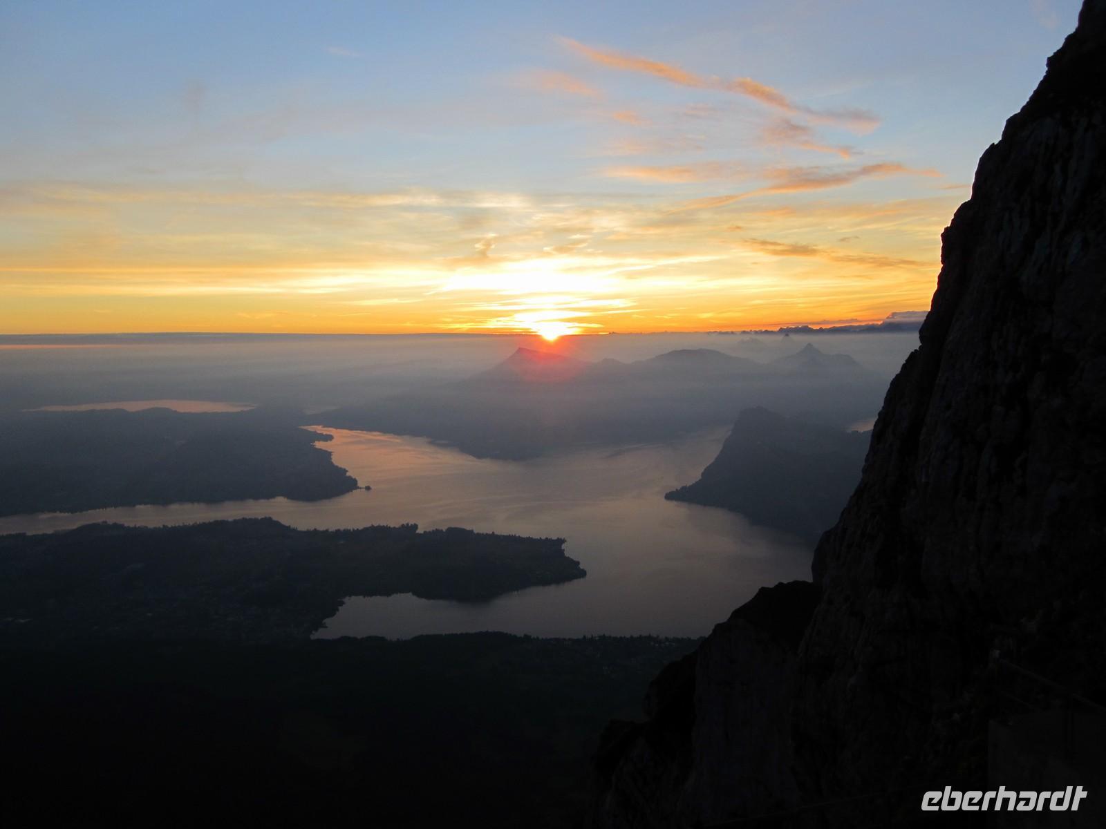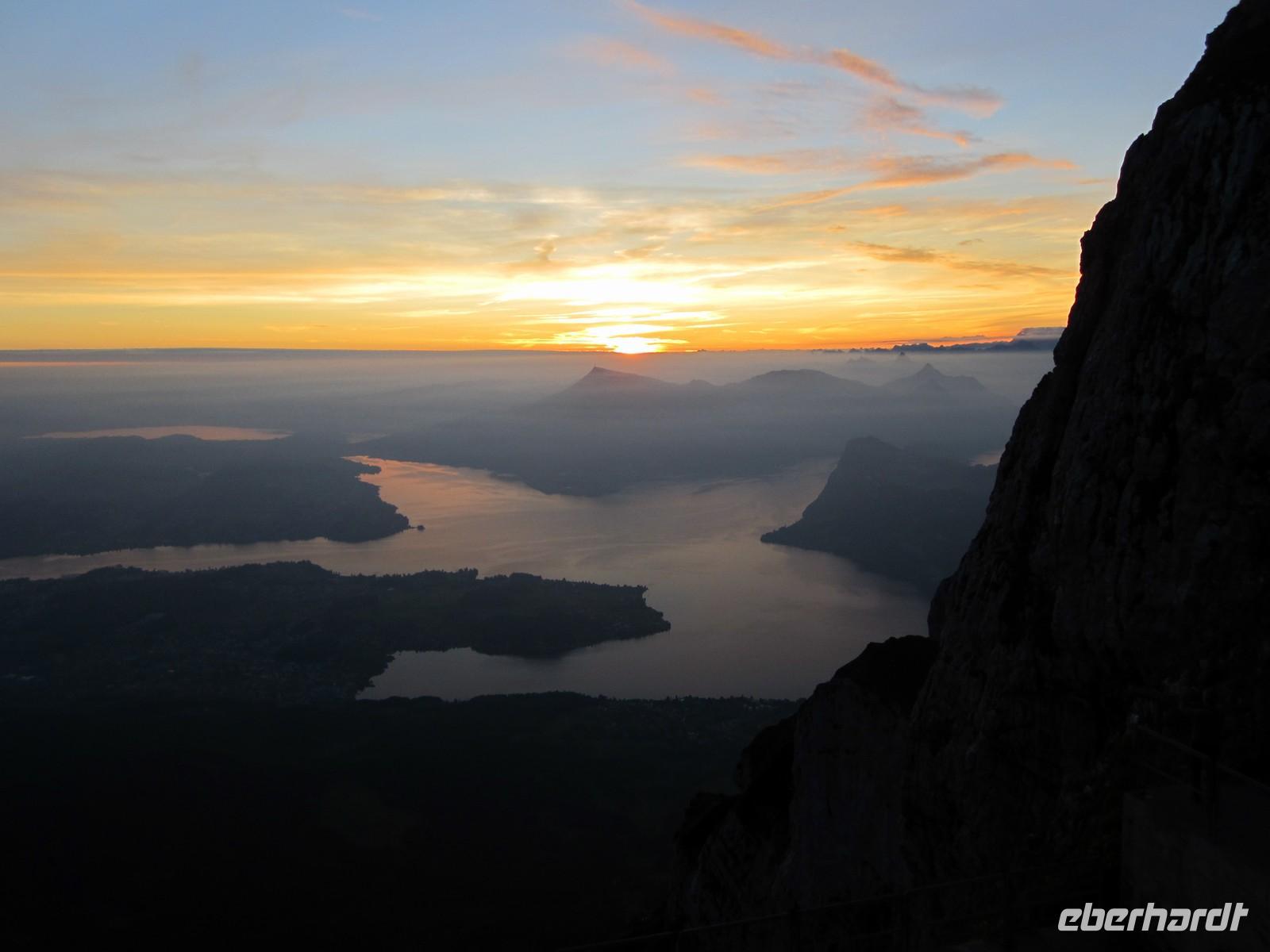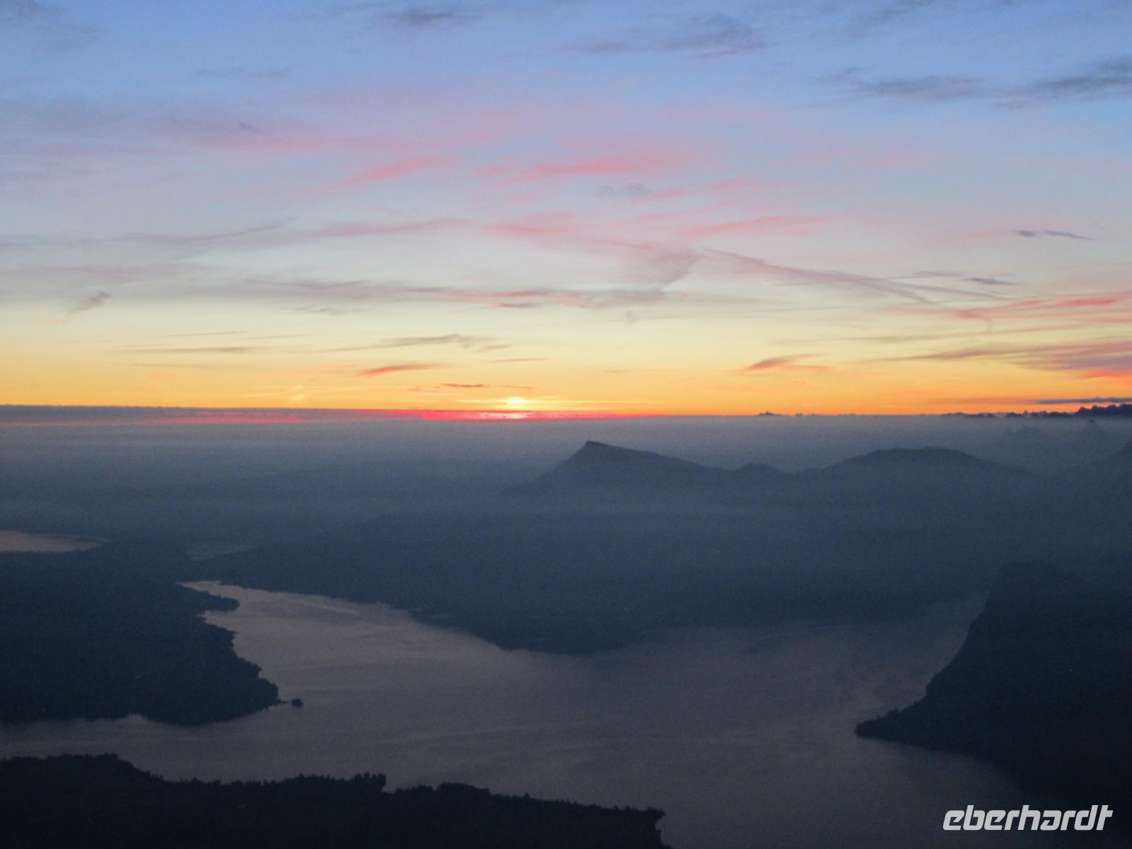 Sonnenaufgang 06.16 Uhr, einige Gäste unserer Gruppe treffen sich auf dem Esel, um den Sonnenaufgang zu beobachten. Das Wetter spielt mit, und es gelingt den Sonnenaufgang zu fotografieren. Ab 07.30 Uhr geht es zum Frühstück und mit der ersten Bergbahn Richtung Kriens. Zum Abschluss erleben wir noch eine schöne Fahrt mit der Luftseilbahn nach Fräkmüntegg und weiter bis Kriens. Sven wartet schon auf uns und wir beginnen nun unsere Heimreise. Die Fahrt führt vorbei an Luzern -Zürich -Winterthur -St.Gallen - zum Grenzübergang Au/Lustenau.Aufgrund einer Umleitung fahren wir durch Bregenz, bevor es unsere gewohnte Strecke nach Dresden weiter geht.