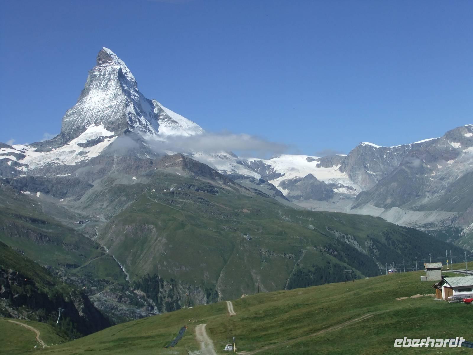 Nach dem Frühstück treffen wir uns am Bus, hier stehen auch schon unsere Koffer bereit. Auf bekannter Strecke fahren wir bis Stalden, biegen dann aber ins Mattertal ab. Unser Ziel ist Zermatt. Für den Bus ist in Täsch die Reise zu Ende, weiter geht es von hier mit dem Shuttle-Zug. In Zermatt werden wir gleich mit Musik empfangen, denn heute ist hier Folkloretag. Die meisten Gäste nutzen das schöne Wetter und fahren mit mir auf den Gornergrat. Bereits während der 40minütigen Fahrt bietet sich uns immer wieder ein fantastischer Blick auf das Matterhorn. Auch vom Gornergart aus sehen wir den wohl bekanntesten Schweizer Berg ohne die kleinste Wolke in voller Schönheit. Wir genießen die Zeit auf dem Gipfel und machen bei der Rückfahrt noch einen Stopp an der Station Rotenboden, wo sich das Matterhorn im Riffelsee spiegelt. Einige Gäste nutzten während der Zeit in Zermatt auch die Möglichkeit zum Schwarzsee zu fahren und schwärmen danach ebenfalls vom Matterhorn, das zum Greifen nah war. Der Nachmittag bietet noch einen besonderen Höhepunkt: Es gibt in Zermatt heute den größten Folkloreumzug der Schweiz. Zwei Stunden lang ziehen Trachtengruppen, Alphornbläser, Musikvereine und Tänzer an uns vorbei. Wir fotografieren bis die Akkus leer sind. Den Abschluss bildet die historische Feuerwehr, die mit ihrem Spritzenwagen für nasse Überraschungen und viel Gaudi sorgt. Damit endet auch unser Zermatt-Aufenthalt. Mit dem Zug geht es wieder nach Täsch, wo Gerald geduldig auf uns gewartet hat. Er bringt uns mit dem Bus zu unserem nächsten Hotel. Das befindet sich in Leukerbad. Die letzten 16 Kilometer müssen wir wieder „klettern“. Nach 80 Kurven entlang tief eingeschnittener Täler und vorbei an steil aufragenden Felswänden haben wir unser Ziel erreicht. Im 4-Stern-Lindnerhotel beziehen wir unsere Zimmer. Dann erwartet uns ein Buffet mit internationalen Spezialitäten. Anschließend gehen einige Gäste noch zum Orgelkonzert in die Kirche.
