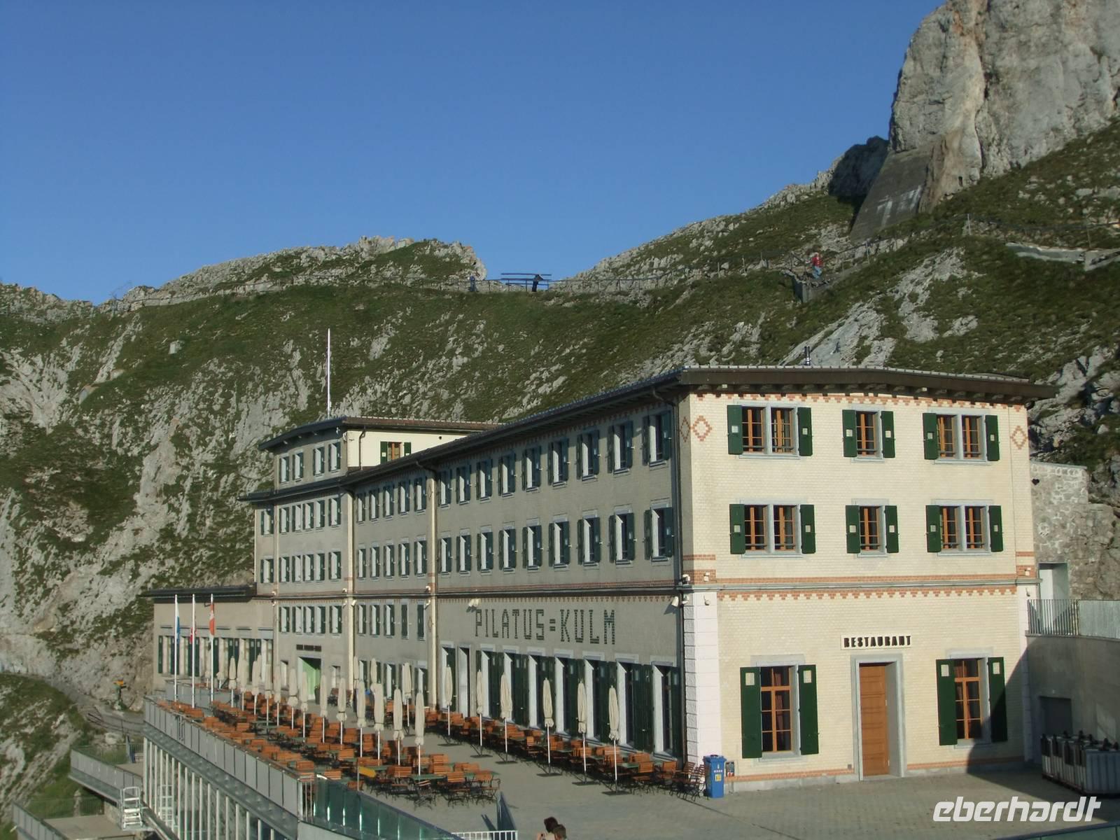 Leider müssen wir uns heute von Leukerbad verabschieden. Die Koffer sind schnell eingeladen. Ein letztes Mal geht es die Serpentinen hinab, dann weiter durch das Rhonetal und das Goms. An der Seilbahn in Mörel holen wir unsere Wandergäste an, die in den letzten Tage ausgedehnte Wanderungen im Aletschgebiet unternommen haben. In Gletsch beginnt dann die Straße über den Grimselpass. Wir genießen den Blick zurück ins Tal und auf den Rhonegletscher. An der Passhöhe machen wir unsere Mittagspause und viele Fotos - auch von den dicken Murmeltieren. Weiter geht es nach Alpnachstadt. Mit der steilsten Zahnradbahn der Welt fahren wir auf den Pilatus. Oben angekommen beziehen wir unsere Zimmer mit den großen Panoramafenstern im Hotel „Belevue“. Es folgt ein kleiner Erkundungsspaziergang auf dem „Drachenberg“, dann werden wir zum Apero in der Steinbockbar und zum 3-Gang-menü im Hotel „Kulm“ erwartet. Langsam lichten sich auch die Wolken und geben den Blick frei auf den Vierwaldstätter See und die abendlichen Licheter von Luzern.