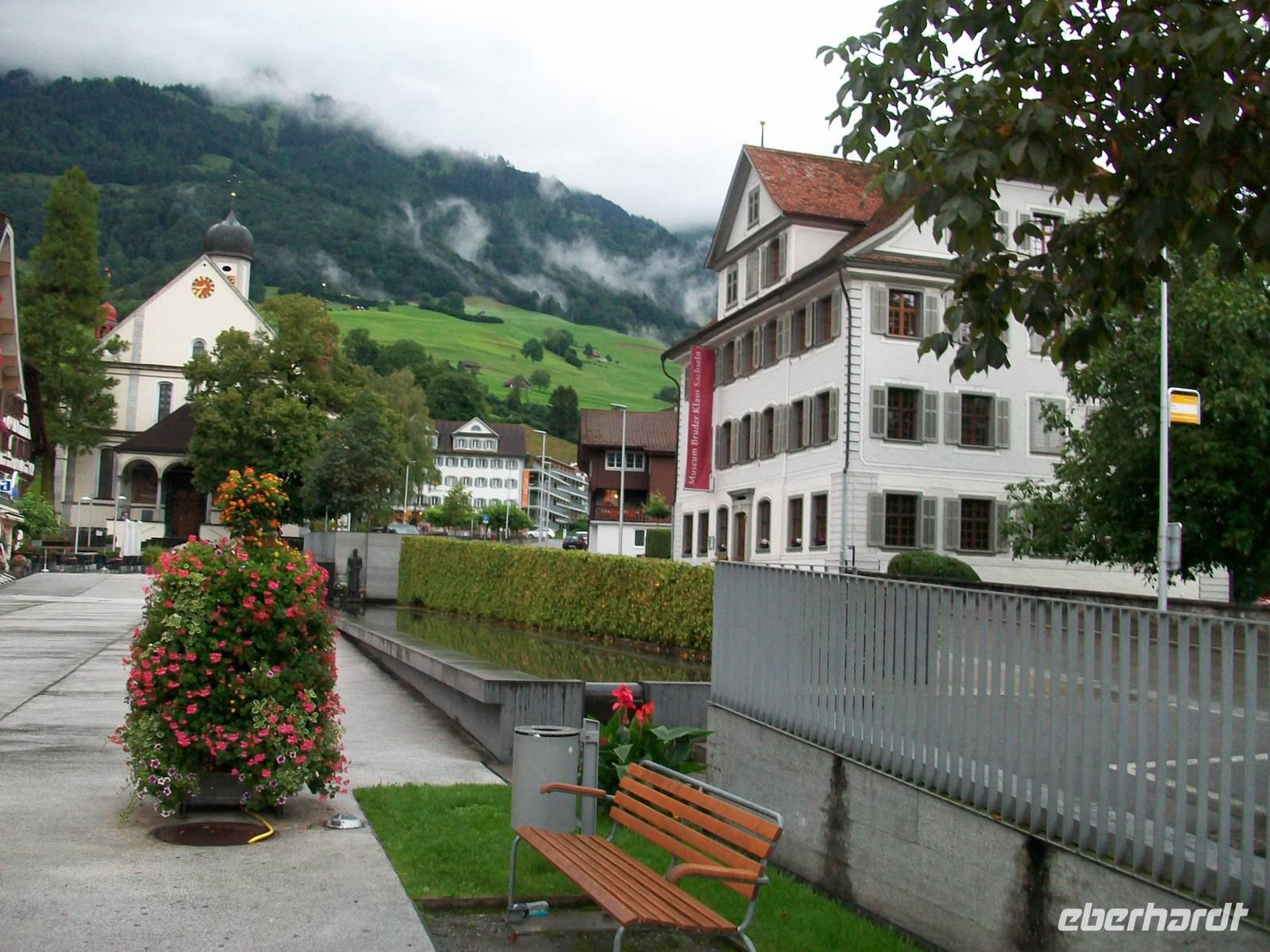 Beim Koffer verladen hat es aufgehört zu regnen; unser Weg führt uns entlang des Sarner- Sees später gelangen wir zum Vierwaldstättersee. Nun lichten sich die Wolken; als wir unser erstes Ziel Altdorf erreichen, ist es recht schön geworden. Hier sind wir nun in der Kantonshauptstadt von Uri angelangt, es ist ein sehr geschichtsträchtiger Ort und Schauplatz der berühmten Szene als Wilhelm Tell seinem Sohn den Apfel vom Kopf schoss. Im Zentrum des Ortes zeugt ein Denkmal vom großen Schweizer Helden und wir gönnen uns ein halbes Stündchen um einen Bummel durch diesen beschaulichen Ort mit seinen schönen und gepflegten Häusern zu unternehmen.