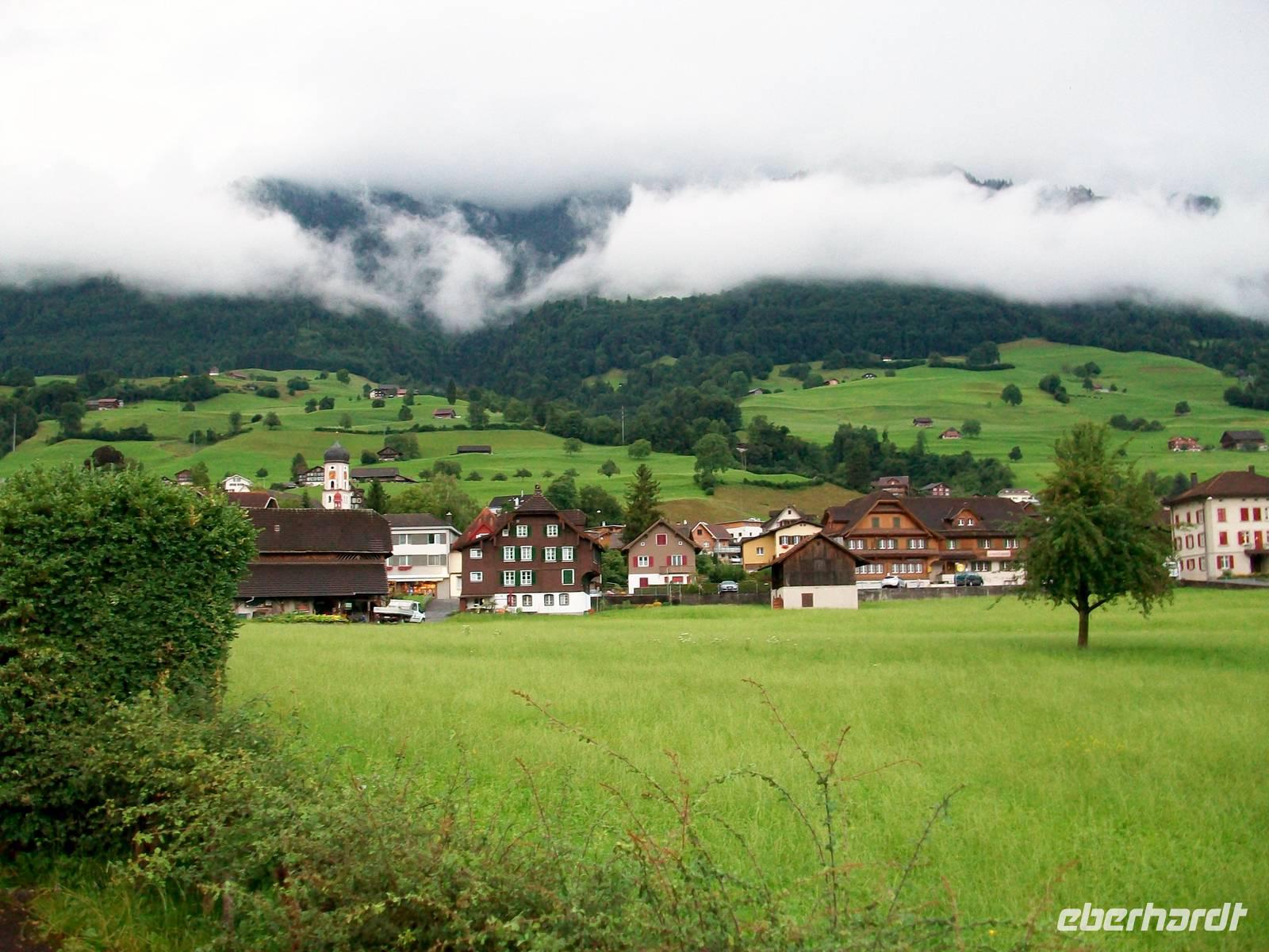 Das Wetter ist heute wieder heiter, am blauen Himmel ziehen weiße Wolken ihre Bahn, ein schöner Kontrast zum grünen Tal in dem der Ort liegt. Von der hinteren Talwand dringt das Rauschen der Bergbäche an unser Ohr- romantischer kann ein Tag nicht beginnen!