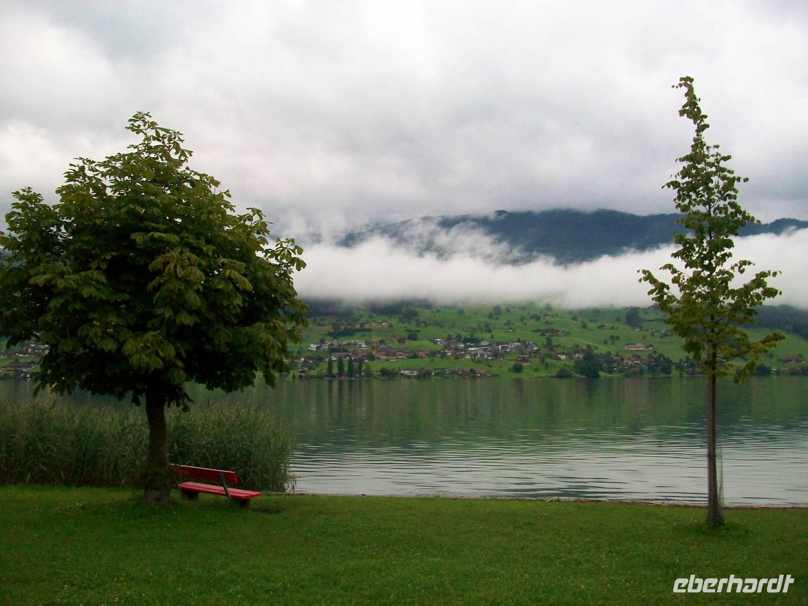 Später wechseln wir dann über nach Baden- Württemberg, sehen aus der Ferne den Kirchturm des Ulmer Münsters und gelangen bald in die Höhe des Bodensees. Auf die Berge ringsum haben sich dicke Wolken aufgelegt, die Sicht ist versperrt aber wir nehmen dennoch unseren Weg. Zunächst, nachdem wir die Grenze zur Schweiz überschritten haben, sind wir im Rheintal unterwegs, wir lassen Lichtenstein auf unserer linken Seite liegen und schwenken hinter Sargans in Richtung Zürich ein und sehen bald zu unserer Rechten die Wasserfläche des Walensees liegen; steil steigen die Ufer an der Gegenseite an so dass der Eindruck entsteht an einem Fjord vorbei zu fahren.