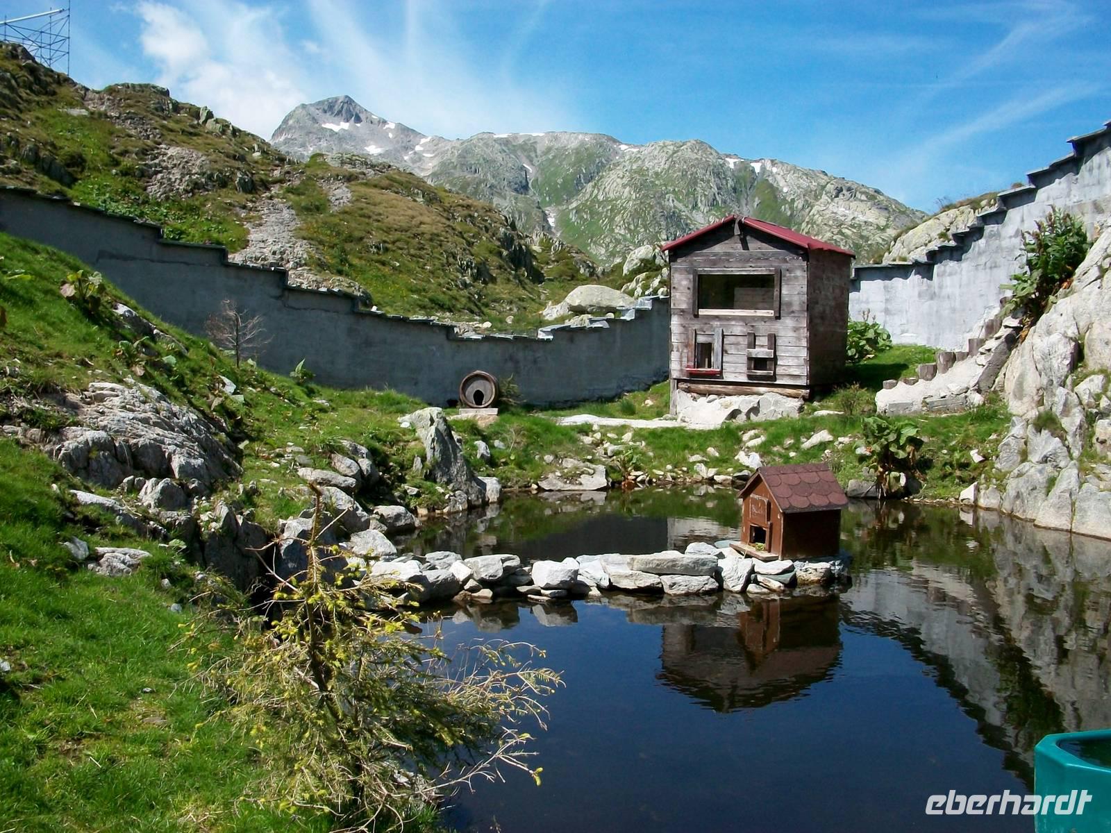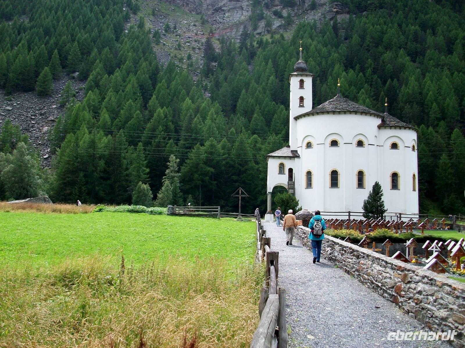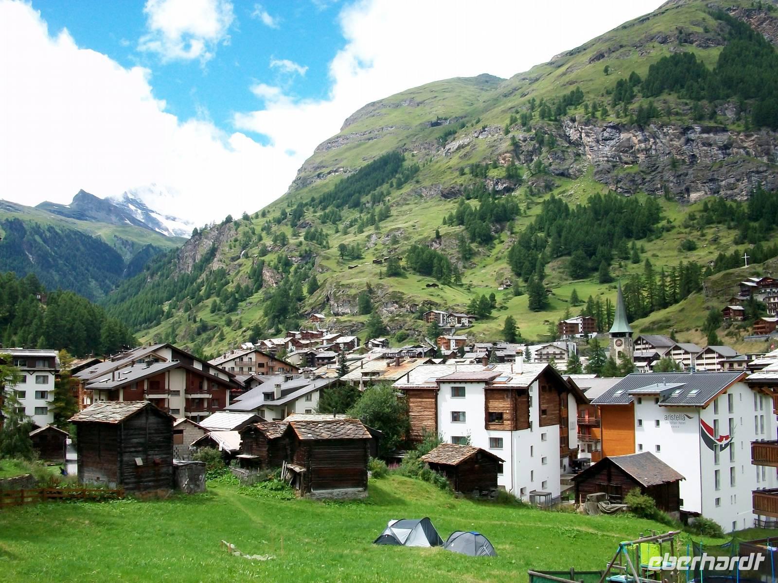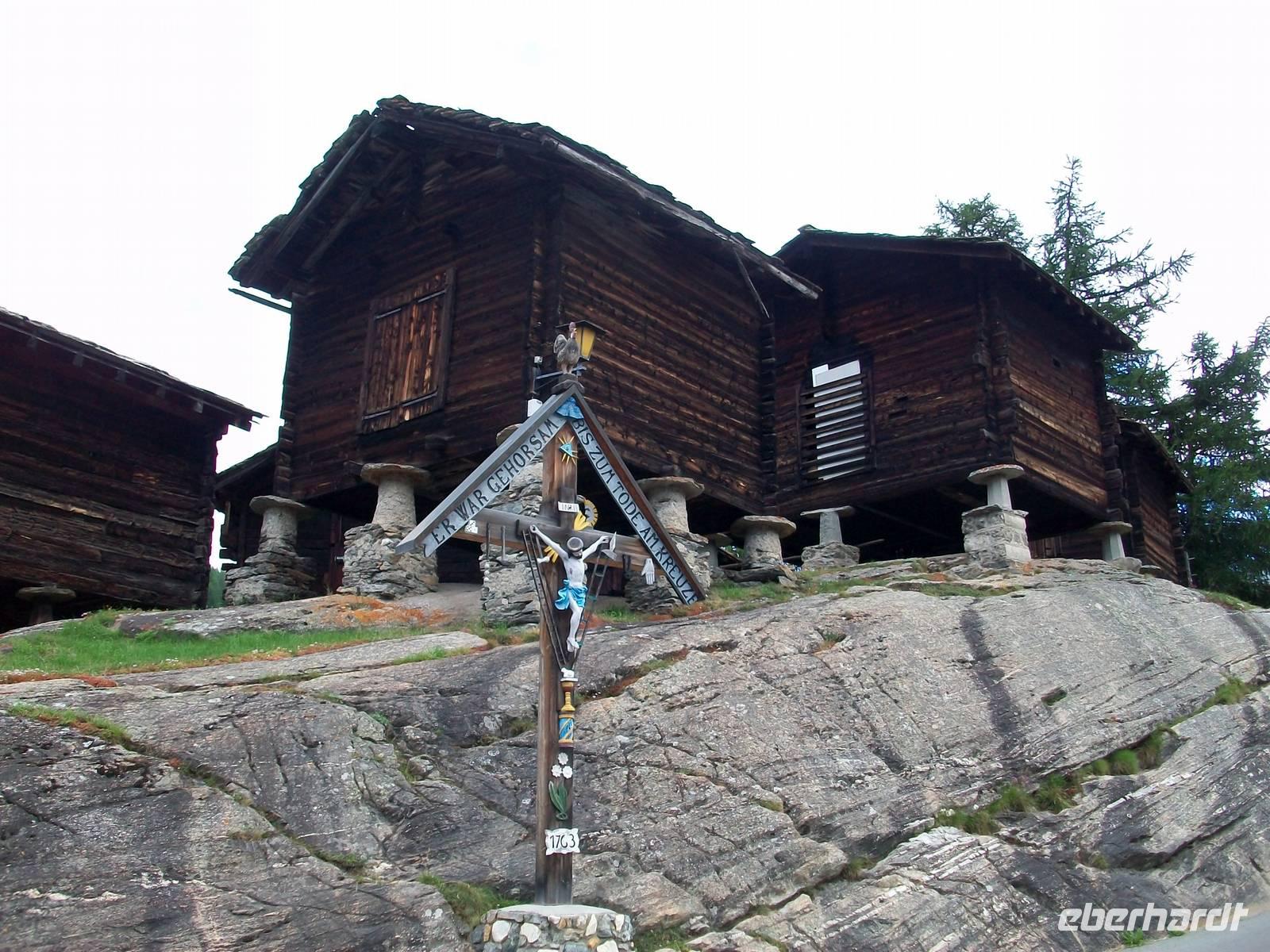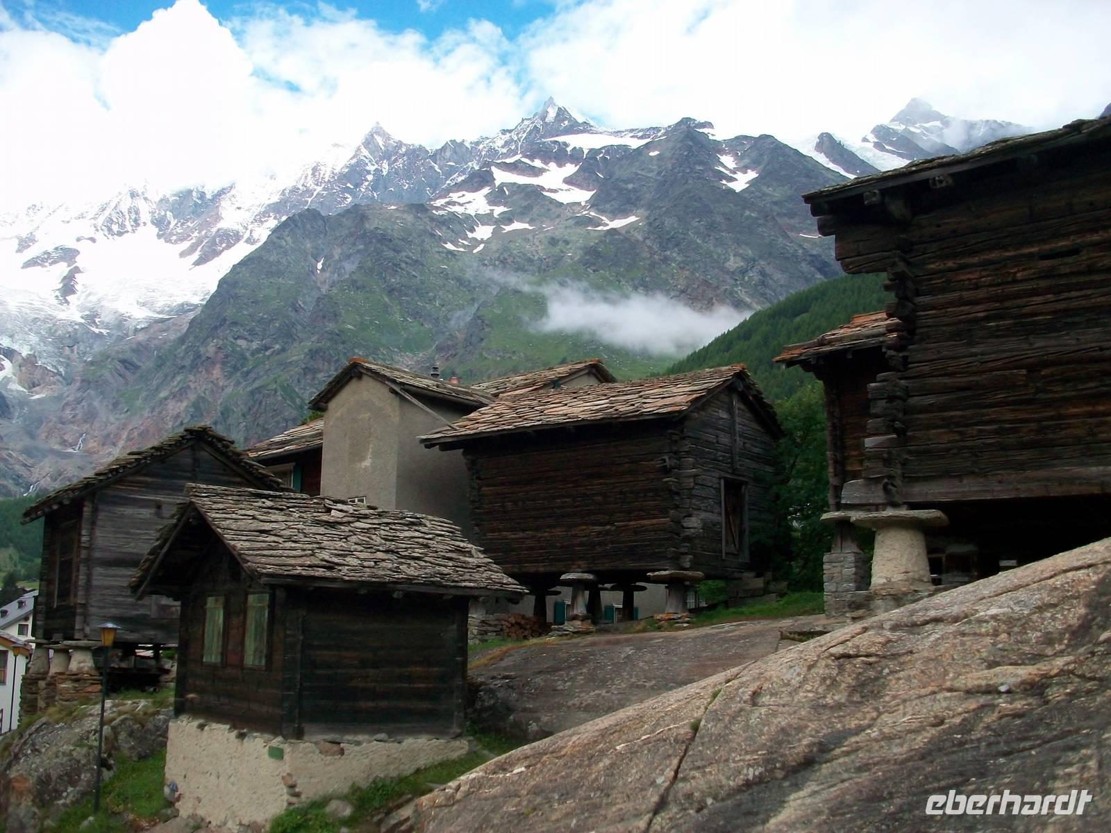 Herr Kalbermatten zeigt und die schönsten Ecken von Saas Fee; einst ein ruhiges Bergdorf mit viel Landwirtschaft gewesen, lebt man heute hier fast ausschließlich vom Tourismus. Dennoch konnte sich der Ort viel von seinem ursprüngliche Charme erhalten; wir sehen die uralten Stadel, hier wurde früher Getreide gelagert, gelangen an den moderneren Hotelgebäuden vorbei und bestaunen in der Fußgängerzone die vielen geschmackvollen Auslagen der Geschäfte. Doch der Blick schweift immer wieder hinauf zu den schneebedeckten Bergen; hier unten im Tal ist Sommer und oben in strahlendem Weiß, ist ewiger Winter- dieser Kontrast fasziniert den Betrachter.