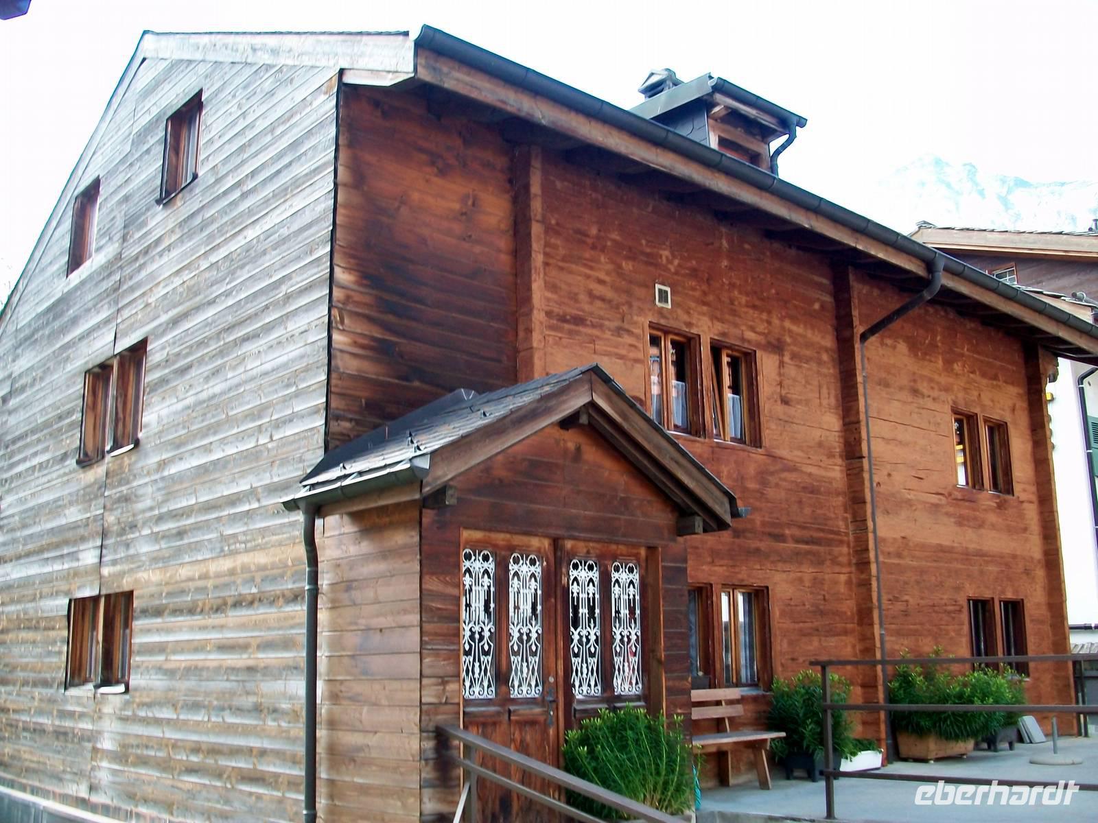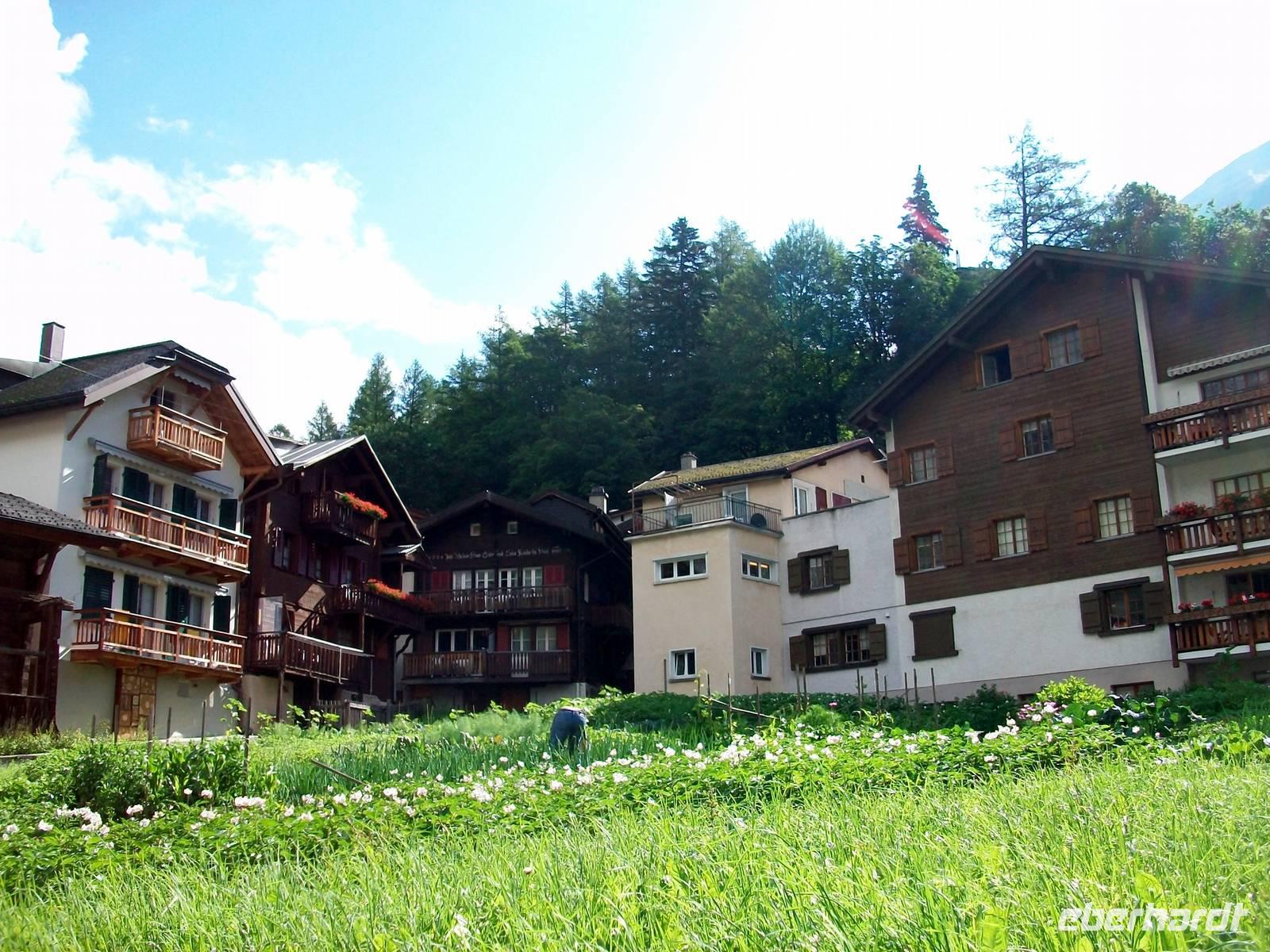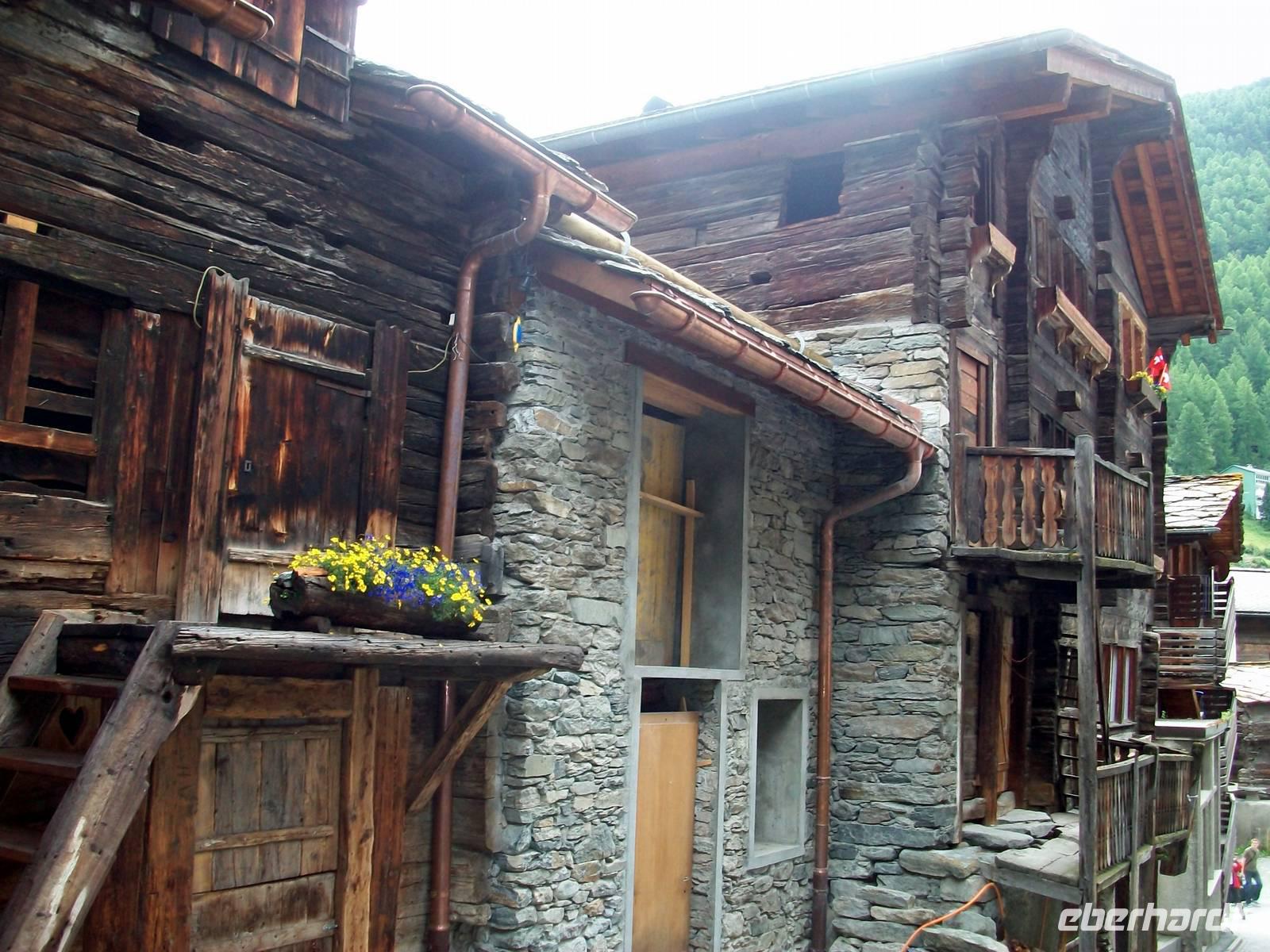 Vorbei an den zahlreichen Bädern geht es wieder bergan und wir erreichen den historischen Teil von Leukerbad. Zahlreiche Walliser Holzhäuser sind hier zu sehen, wir kennen sie schon von Zermatt und Saas Fee.
