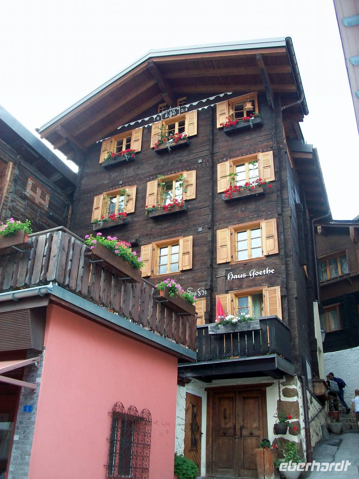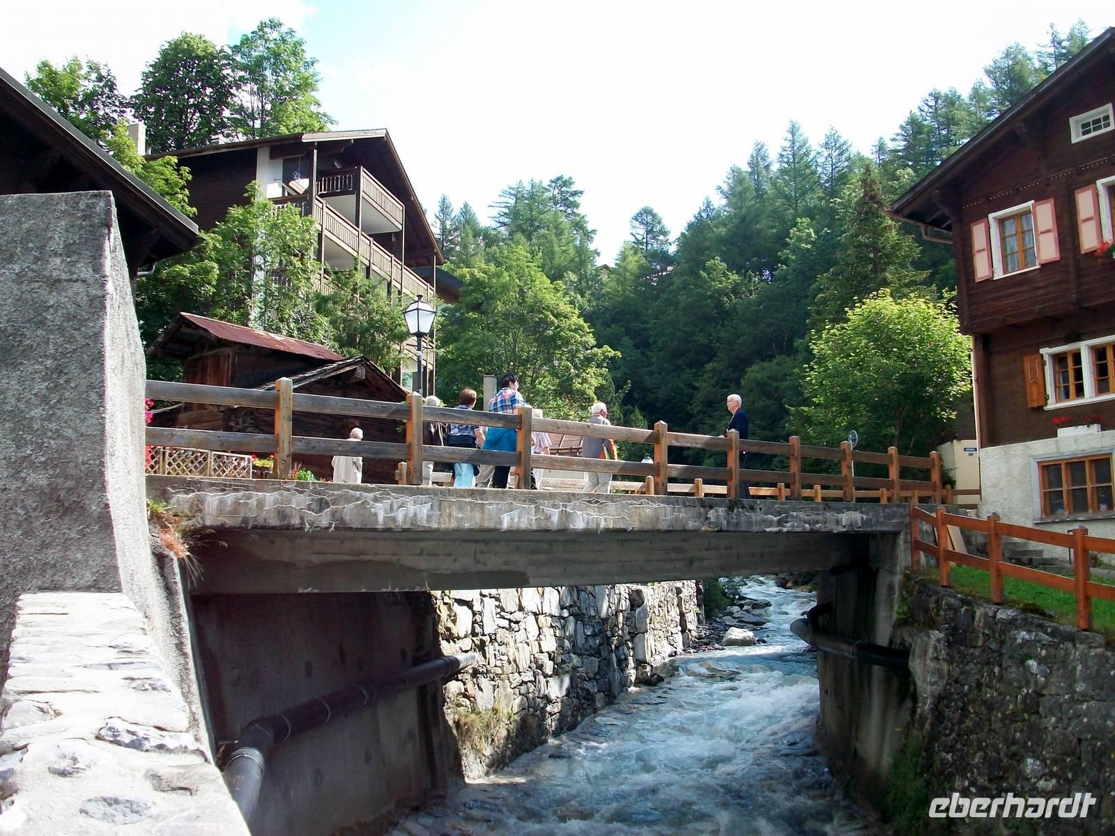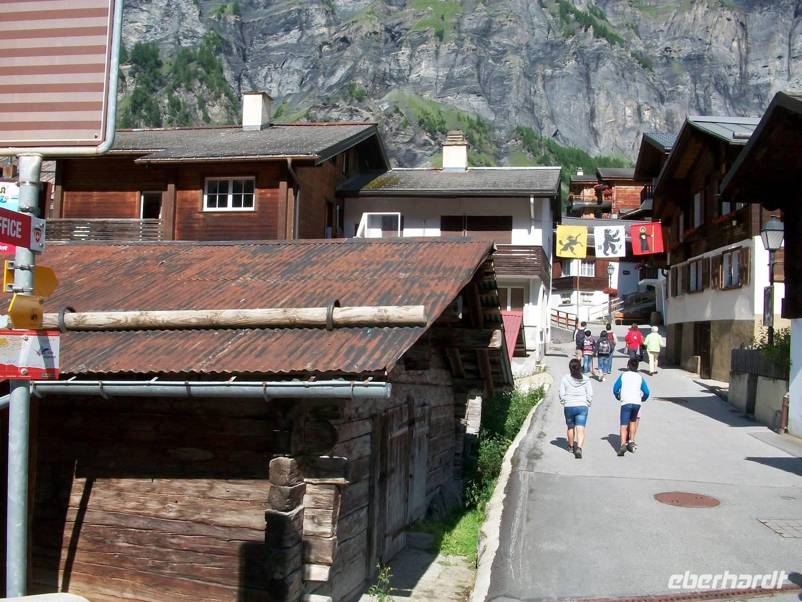 Vorbei an den zahlreichen Bädern geht es wieder bergan und wir erreichen den historischen Teil von Leukerbad. Zahlreiche Walliser Holzhäuser sind hier zu sehen, wir kennen sie schon von Zermatt und Saas Fee.