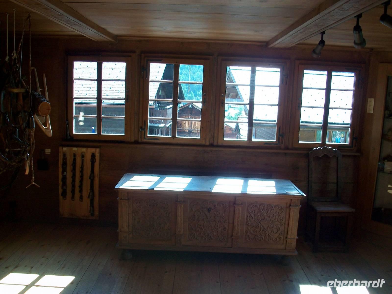 Am Ende des wissenswerten Rundgangs besuchen wir noch das Heimatmuseum; hier begeben wir uns gleichsam auf eine Zeitreise. In dem alten Gebäude ist eine wirklich schöne Ausstellung aufgebaut; wir schauen in eine Wohnstube vergangener Zeiten hinein, sehen wie die Leute früher gelebt haben und erfahren außerdem sehr viel über den Ort, die Gletscher und die unerbittliche Natur der Berge.