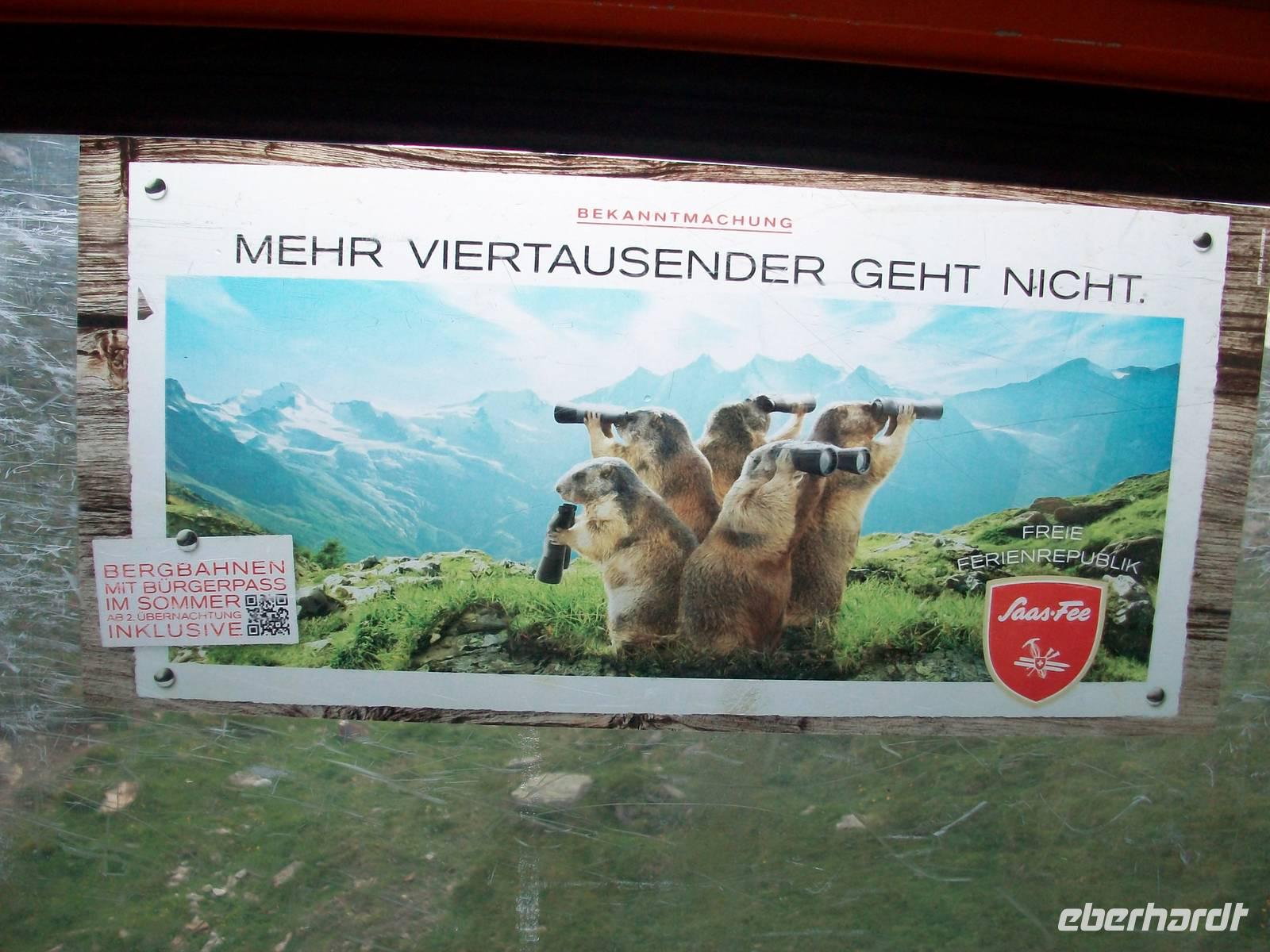Nach dieser wirklich schönen Einführung durch Herrn Kalbermatten verbleibt nun für diesen sonnigen Tag viel Freizeit für die wirklich zahlreichen Attraktionen des Ortes. Mit der Gästekarte die unsere Gäste bekommen haben, kann der übergroße Teil der Bergbahnen gratis benutzt werden, wir sind schließlich mit dem Bürgerpass eine Zeit lang Bürger der Freien Ferienrepublik Saas Fee.