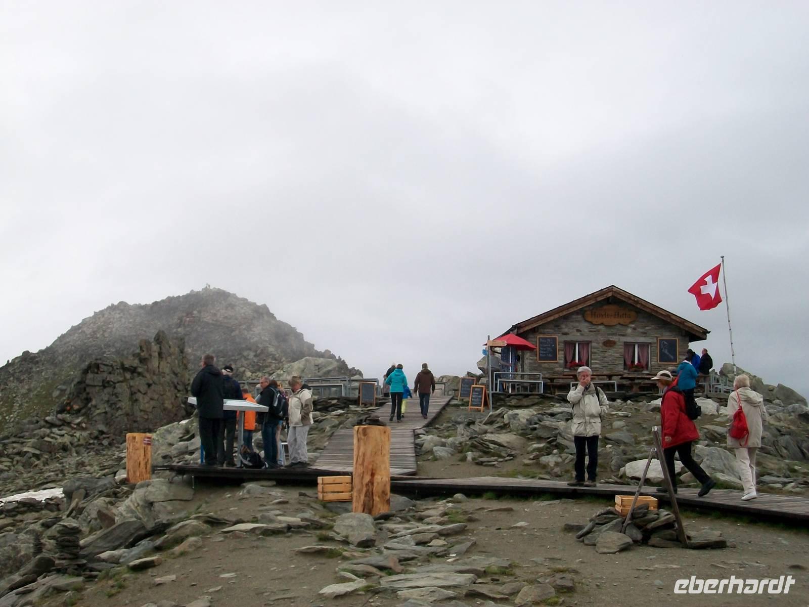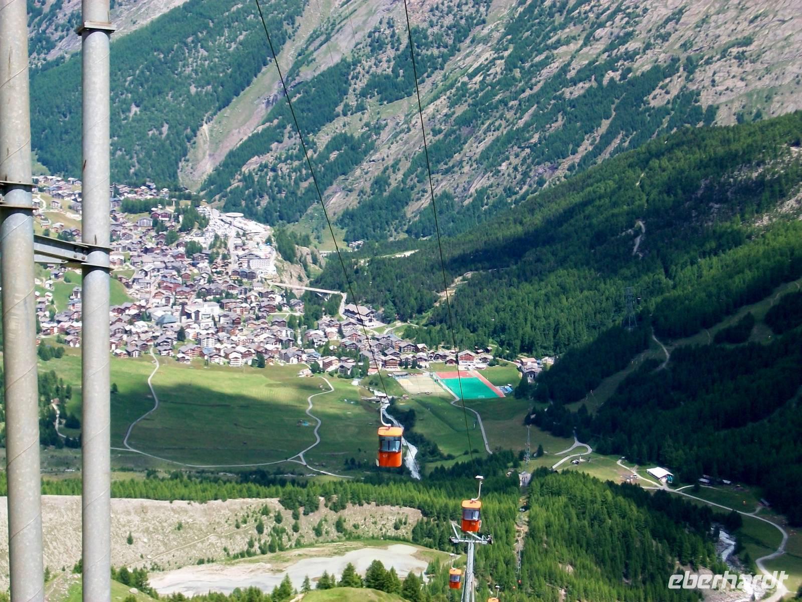 Nachdem unsere Gruppe in der großen Kabine Platz gefunden hat geht es hinauf; leise summend gewinnen wir an Höhe und die Häuser unter uns werden kleiner. Dann erfolgt der Umstieg in die zweite Sektion und die Bahn bringt uns hinauf jenseits der Baumgrenze auf das Eggishorn; hier sind wir fast 3 000 Meter über dem Meeresspiegel.