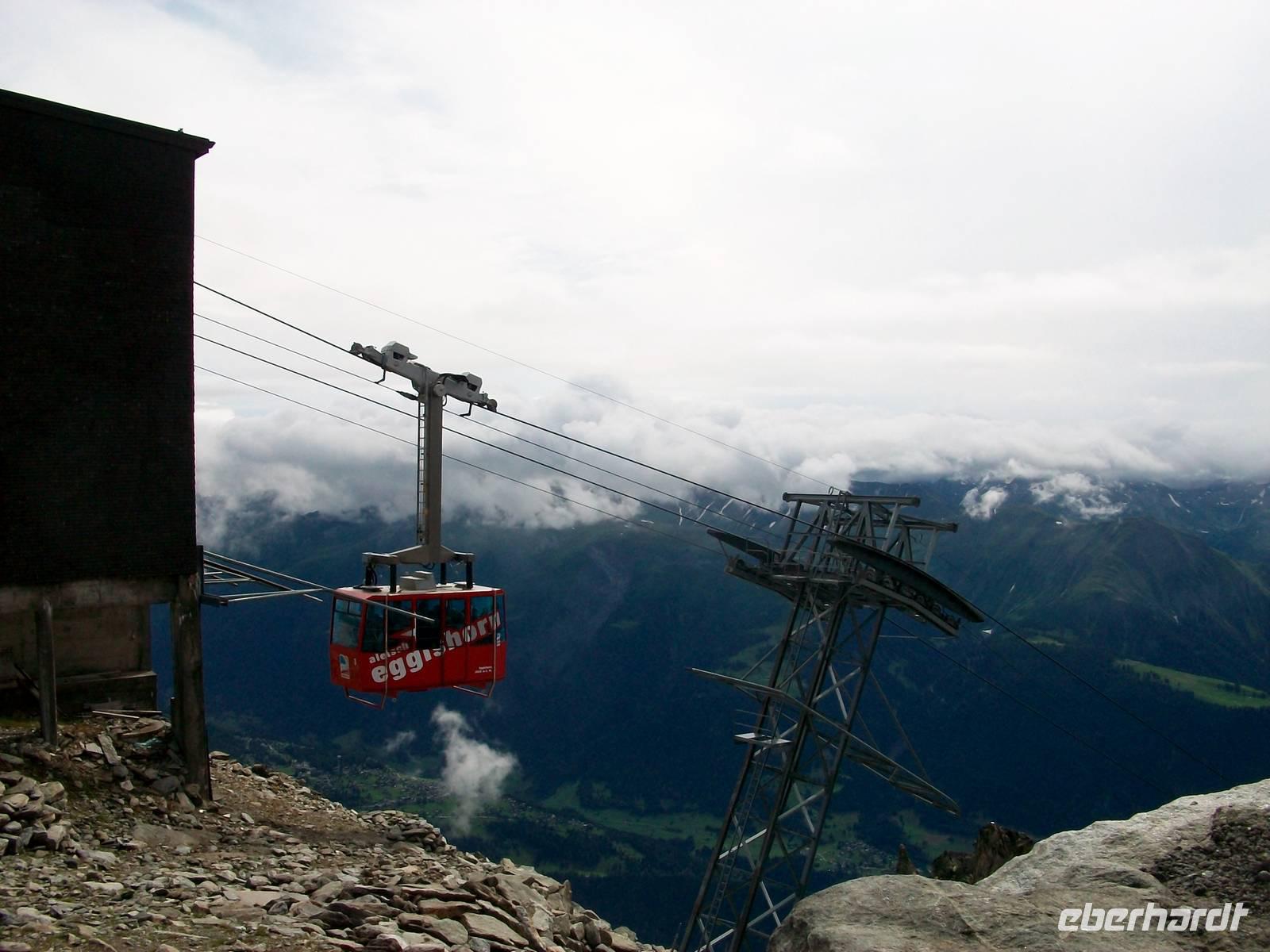 7.8.2014. Nun ist der Abschied gekommen. Wieder einmal viel zu schnell sind die schönen Tage vergangen; nach dem kräftigenden Frühstück hat sich unsere Reisegruppe ein letztes Mal versammelt und mit der Luftseilbahn wird es nun zu Tal gehen.