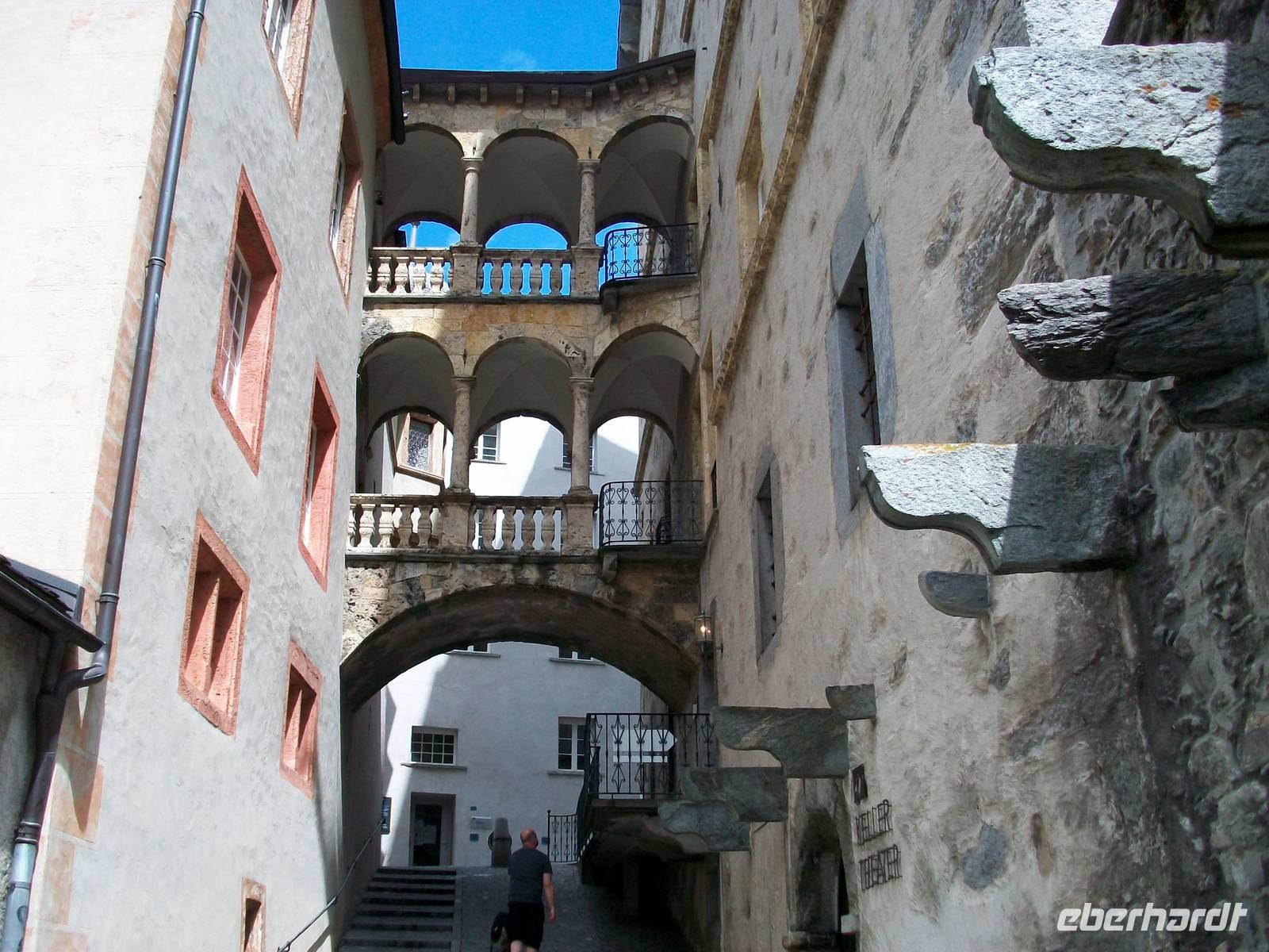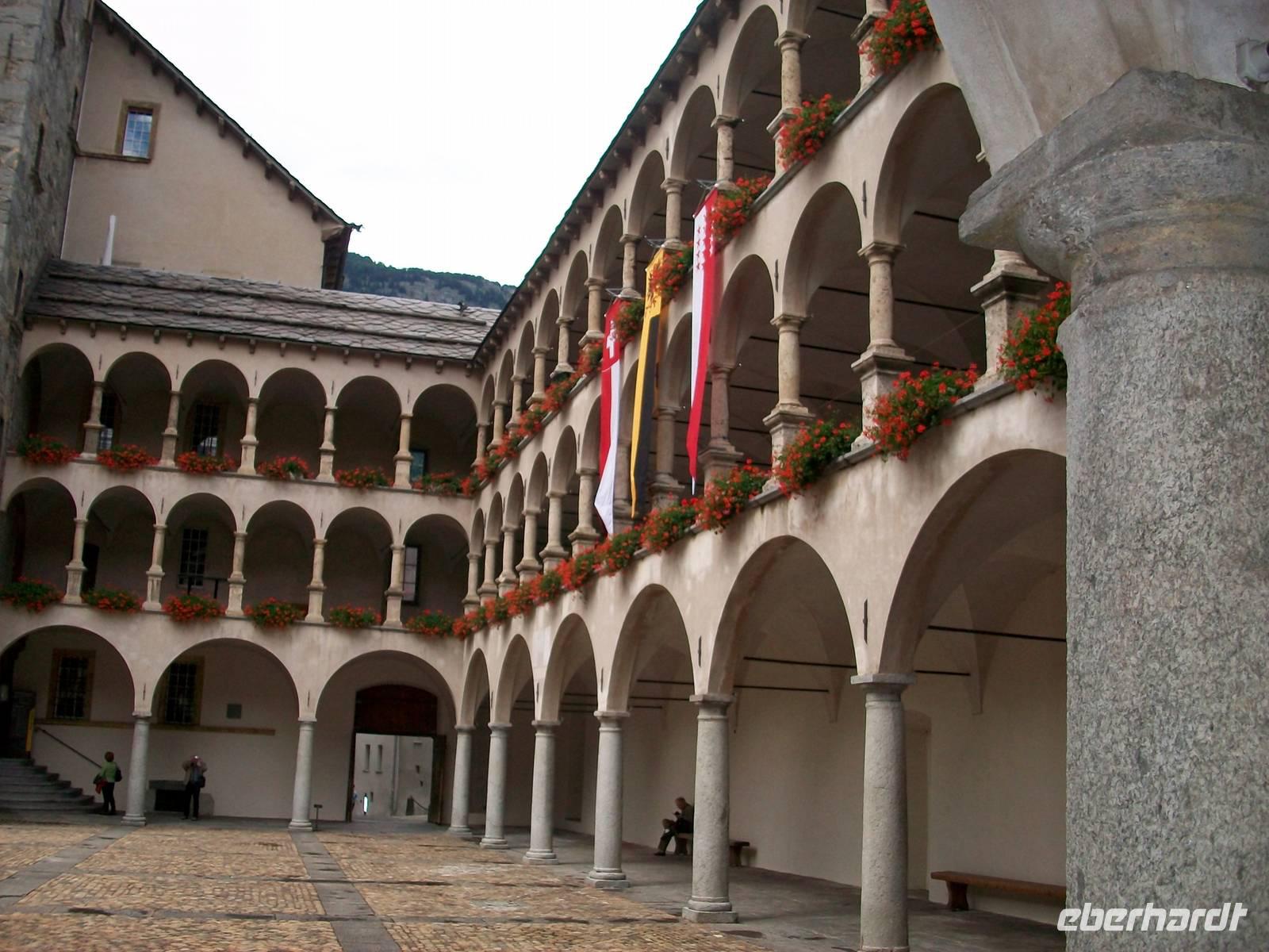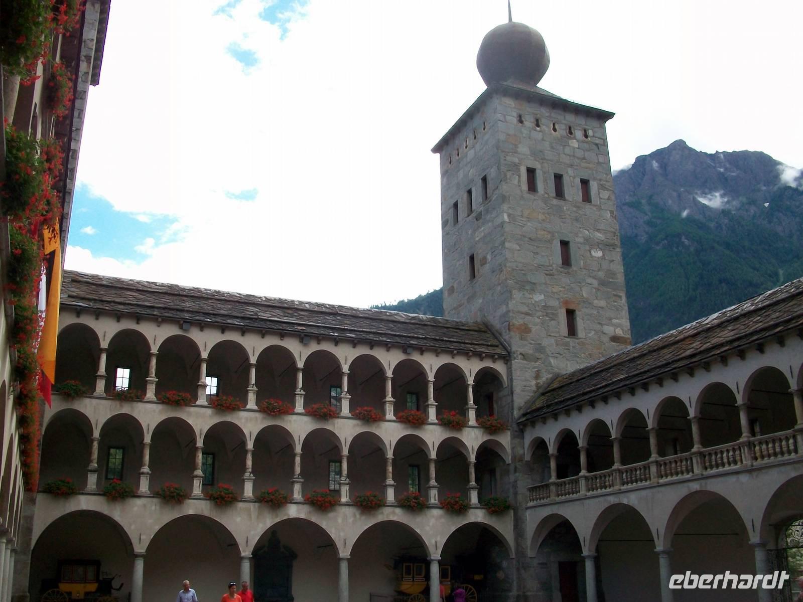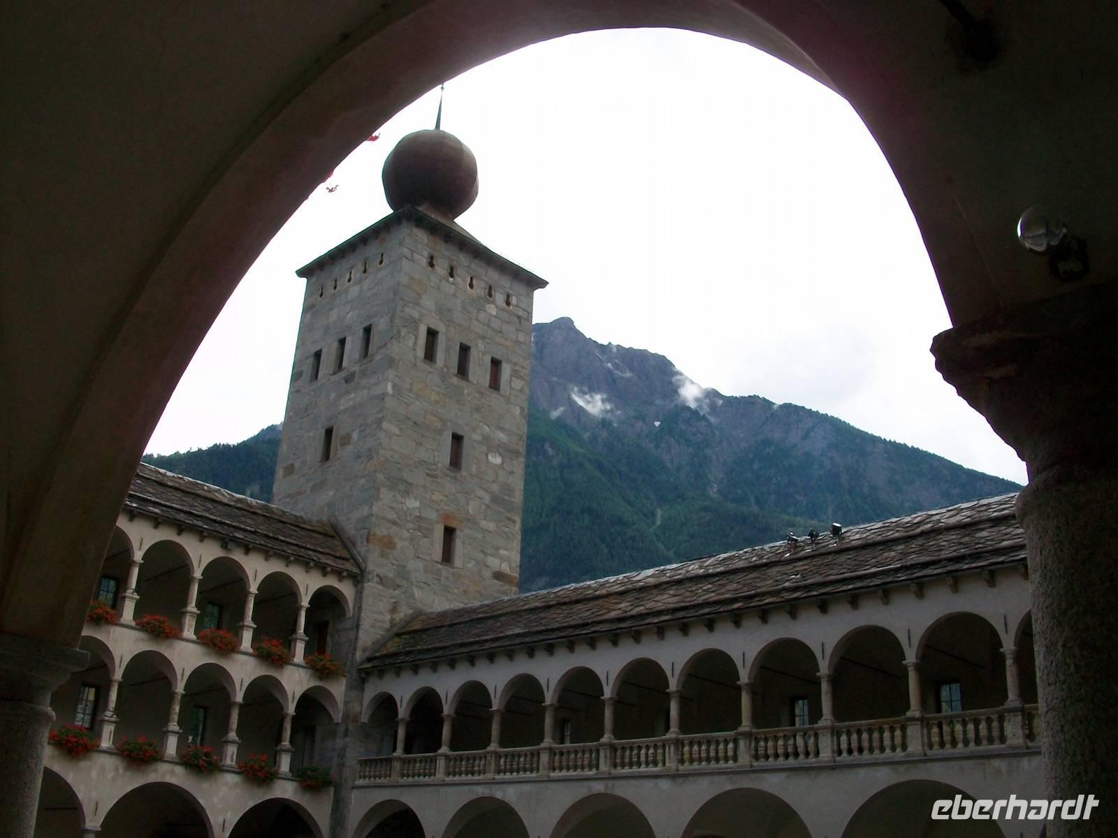 Mächtig dominiert der Palast der Familie Stockalper den Blick, schön ist der Abstecher hinein in den Innenhof mit den Arkaden; dieser Hof wird begrenzt von starken Mauern und den Türmen mit Zwiebelhauben- imposant.
