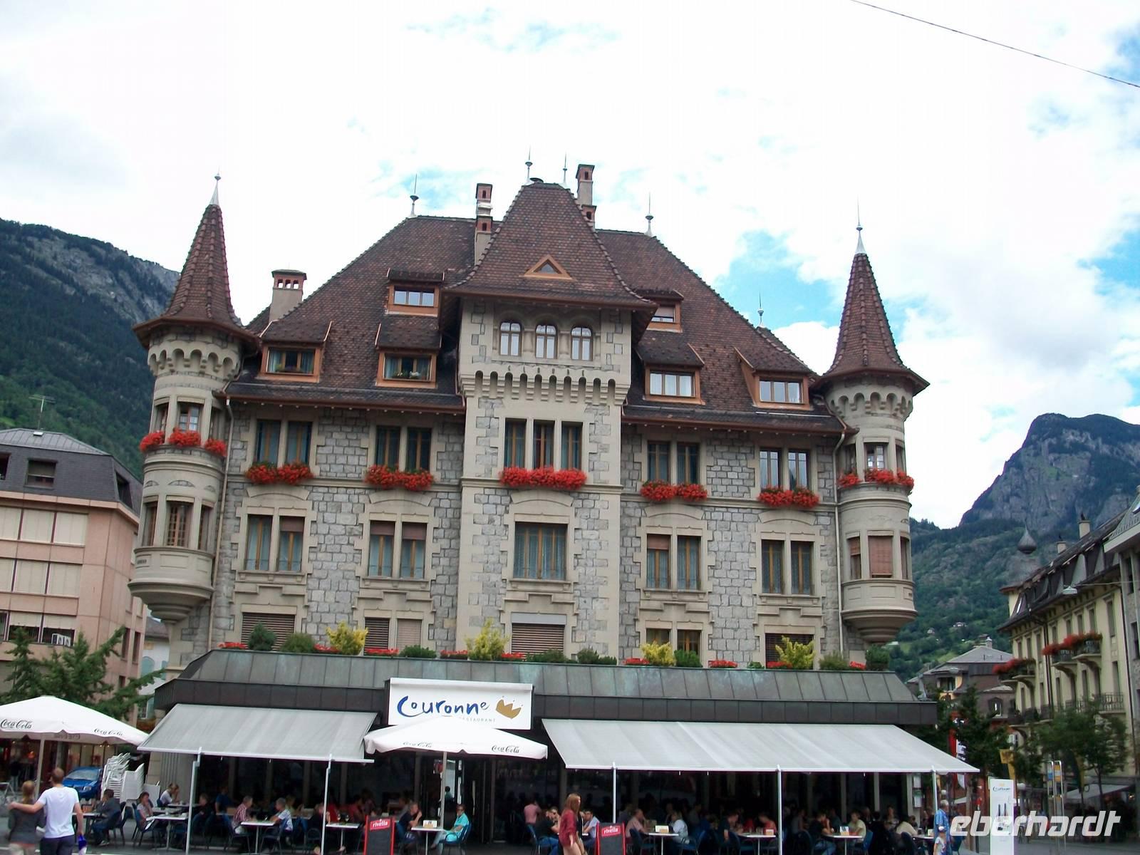 Zur Mittagszeit gelangen wir mit der Seilbahn hinunter zum sogenannten Kühboden, es ist die mittlere Station. Im schönen Restaurant wartet eine Schweizer Spezialität auf uns: Älplermakaronen, eine sehr nahrhafte Speise. Während wir es uns schmecken lassen hat Petrus draußen wieder die Schleusen geöffnet, der Spaziergang auf der Fiescheralp muss leider ausfallen und so gelangen wir dann hinunter wo wir dann unseren Bus wieder besteigen um einer interessanten Stadt entgegen zu fahren.