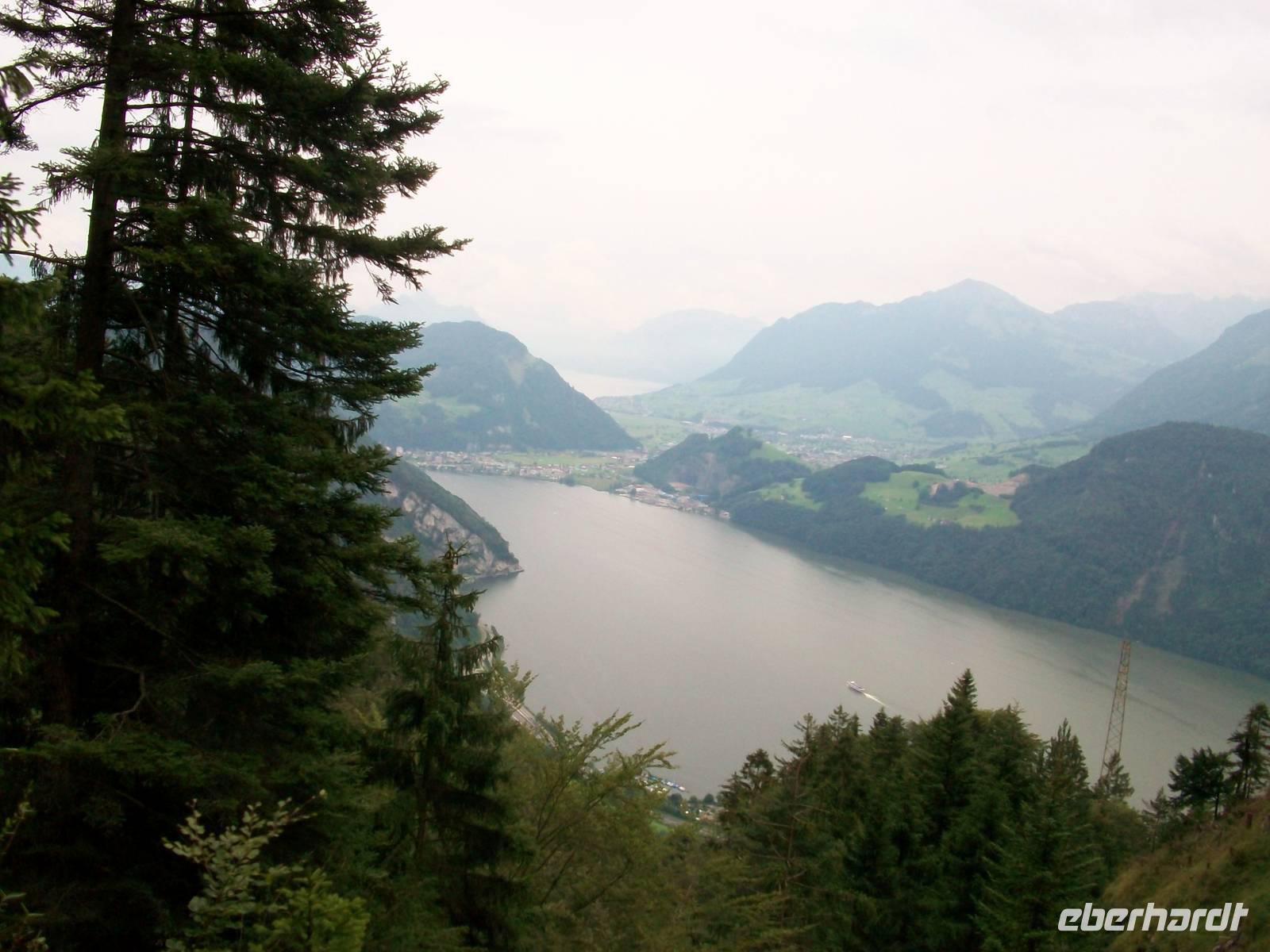 Die Sicht ist heute früh recht gut; im Süden sind die schneebedeckten Berge des Oberlandes zwischen einigen Wolken zu sehen, vor uns liegt das Häusermeer von Luzern und daran anschließend die Wasserfläche des Vierwaldstättersees. Auch wenn alles in einen leichten Dunst gehüllt bleibt, der Blick ist zum Abschluss der Reise noch einmal grandios und mit diesen schönen Impressionen treten wir die Heimreise an.