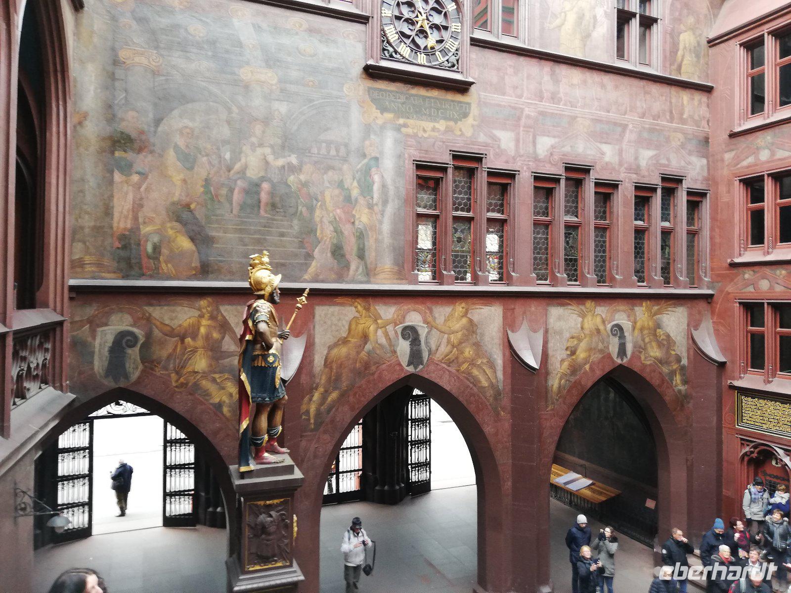 Nach einem guten Frühstück wartet unsere Stadtführerin Ria auf uns vor dem Hotel. Wir fahren mit dem Bus durch Basel. Ria informiert uns, dass die Grenzstadt Basel am Dreiländereck Schweiz-Deutschland-Frankreich liegt und aus diesem Grund Vororte in allen drei Ländern hat. Wir fahren durch die Stadt und immer wieder über den Rhein, wir erfahren das Grossbasel auf der linken Seite des Rheins und das Kleinbasel am rechten Rheinufer liegt. Sie zeigt uns den Schweizer-,Französischen- und Deutschen Bahnhof in Basel, die unterirdisch verbunden sind. Vom Bus aus sehen wir auch das Zentrum der Chemie- und Pharmaindustrie, mit beiden Pharmafirmen Novartis und Hoffmann-La Rochein , wir sehen das Messezentrum und auch die Bank für Internationalen Zahlungsausgleich. Die Stunde Busfahrt durch Basel vergeht sehr schnell. Wir steigen am Steinenberg aus dem Bus und beginnen nun mit einem Spaziergang durch die Altstadt. Dazu wird die Gruppe geteilt und die Stadtführerin Elisabeth kommt hinzu. Die beeindruckenden Momente und besonderen Bauten sind dabei das Münster und der Münsterplatz und auch das Rathaus von Basel. Nach dem Spaziergang durch die Altstadt bleibt uns noch Freizeit bevor wir gegen 12.00 Uhr die Stadt mit dem Bus verlassen. Auf unserer Fahrt nach Brig fahren wir an Solothurn und Freiburg vorbei, bevor wir am Rasthof am Lac de la Gruyère eine Mittagspause planen. Gut gestärkt setzen wir unsere Fahrt fort und nach kurzer Zeit planen wir einen weiteren Stopp. Wir haben Sonne und gönnen uns einen Aufenthalt in Montreux. Da die Stadt auch für die große Zahl hochkarätiger kultureller Veranstaltungen bekannt ist, besuchen wir die