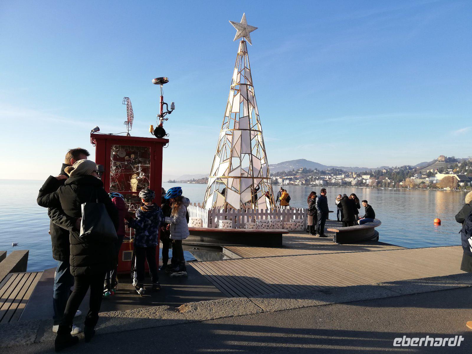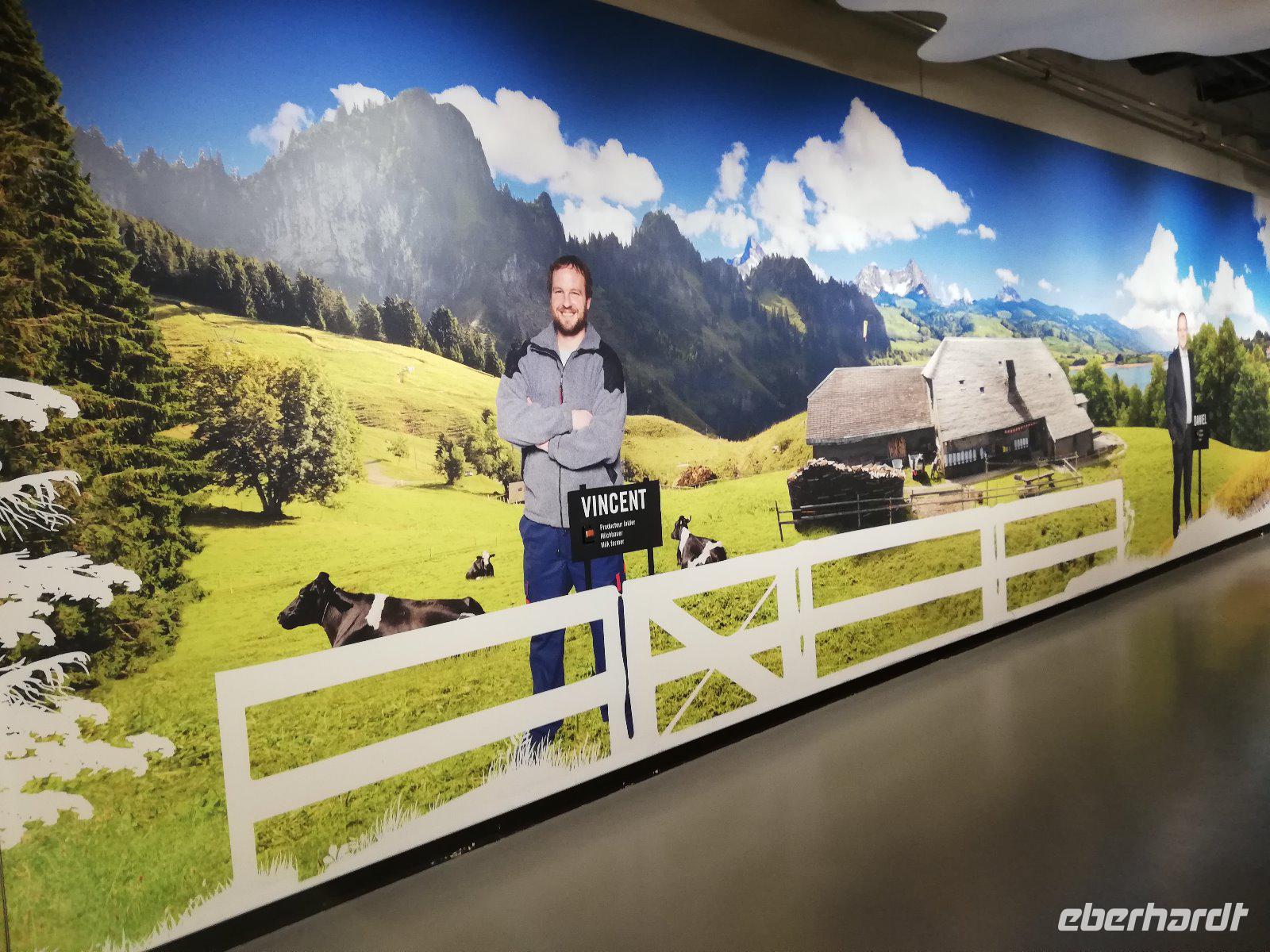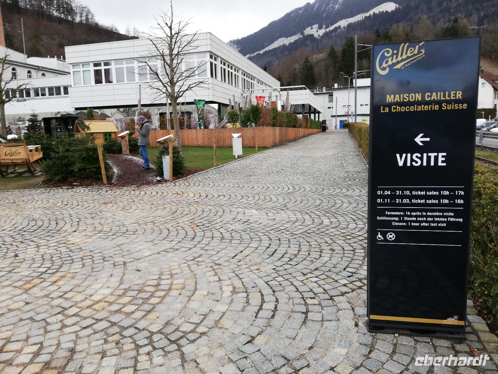Wir werden von der Chefin des Hotels Touring herzlich verabschiedet. Wir fahren heute wiederum durch das Rhonetal bis zum Genfersee. Heute blicken wir von der Autobahn hoch über Montreux auf den Genfersee. Danach fahren wir nach Broc zur Schokoladenfabrik. Bei unserer Anfahrt stellt Klaus sein Können auf die Probe. Wir wissen natürlich schon lange, dass Klaus ein perfekter Busf...,oh Chauffeur ist. Was er uns aber bei dem Rückwärtsfahren zeigt, war sehr beachtlich. Noch einmal vielen Dank,Klaus. . Wir sind angemeldet für eine Führung in der Schokoladenfabrik Cailler und gehen durch eine Erlebniswelt. Seit 1898 wird hier Schokolade produziert. Heute gehört Cailler zu Nestle.