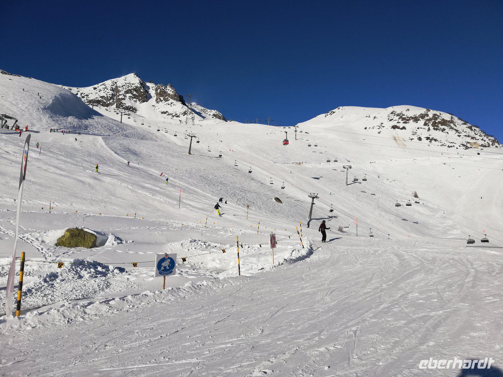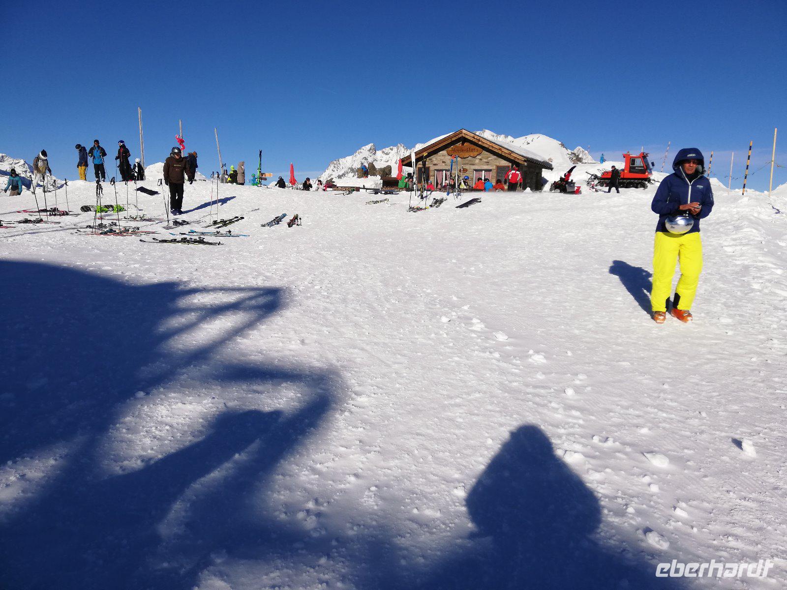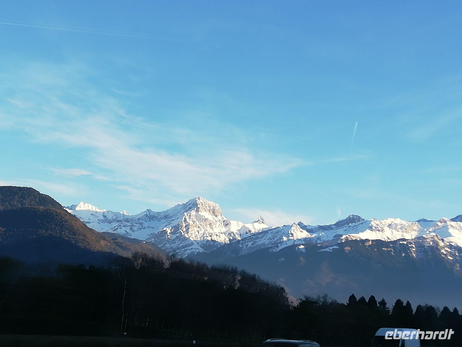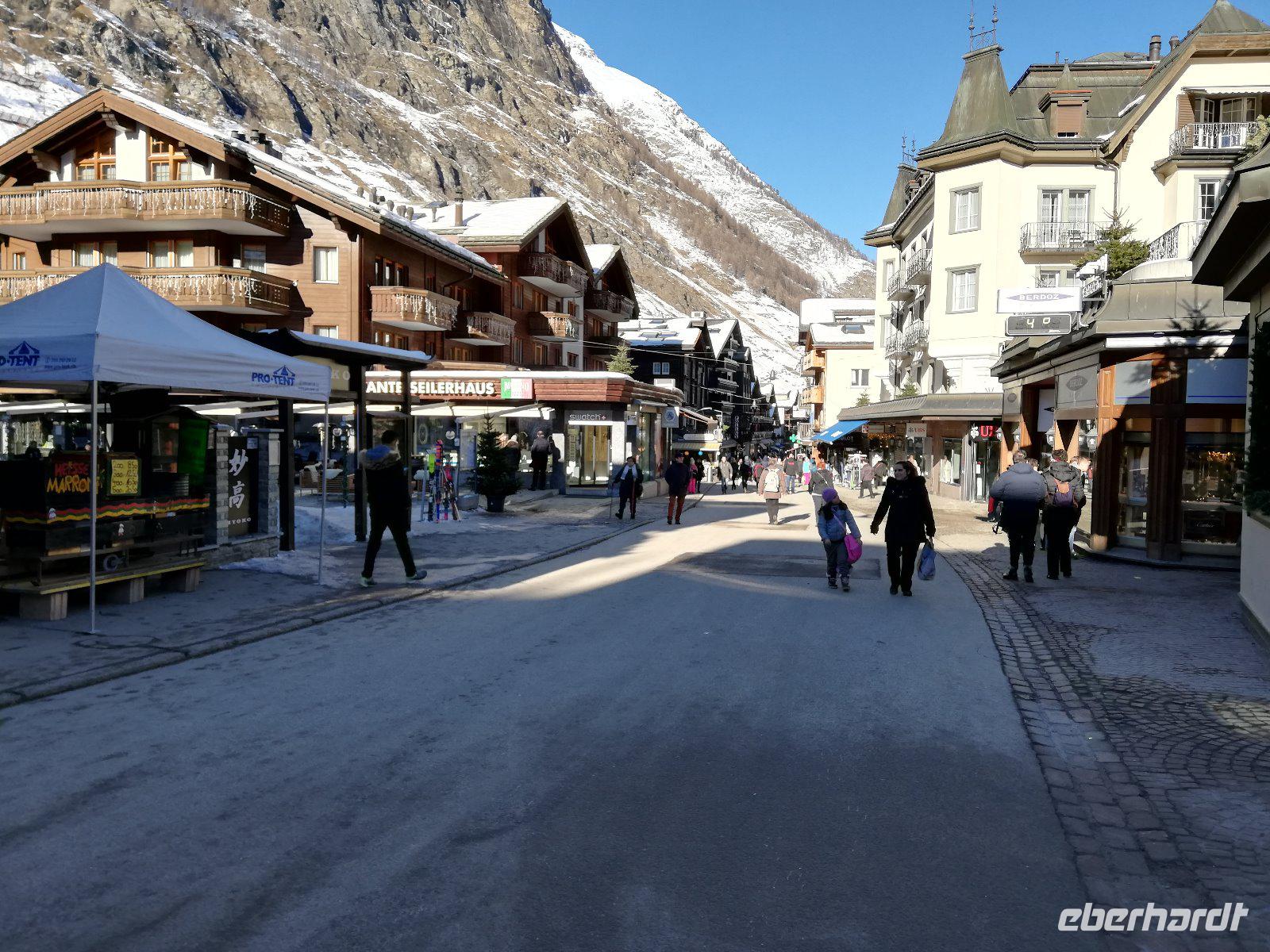 Welch ein überwältigendes Panorama. Wir benötigen die Sonnenbrille, um die Schönheit der Berge genießen zu können. Viele Fotos werden "geschossen" und trotz der ca. - 7 Grad kann auf der Terrasse der Kaffee getrunken werden. Uns bleibt noch Zeit für einen Bummel durch den Ort und entlang der Bahnhofstraße .