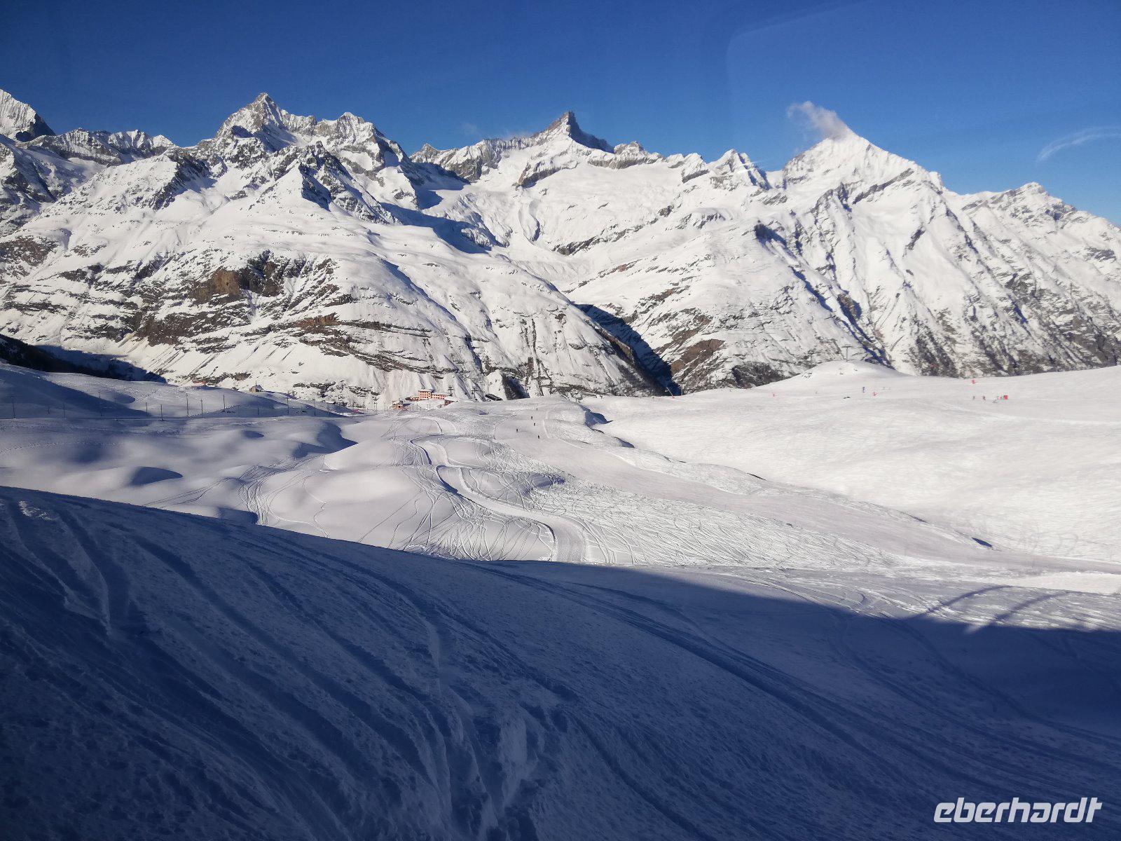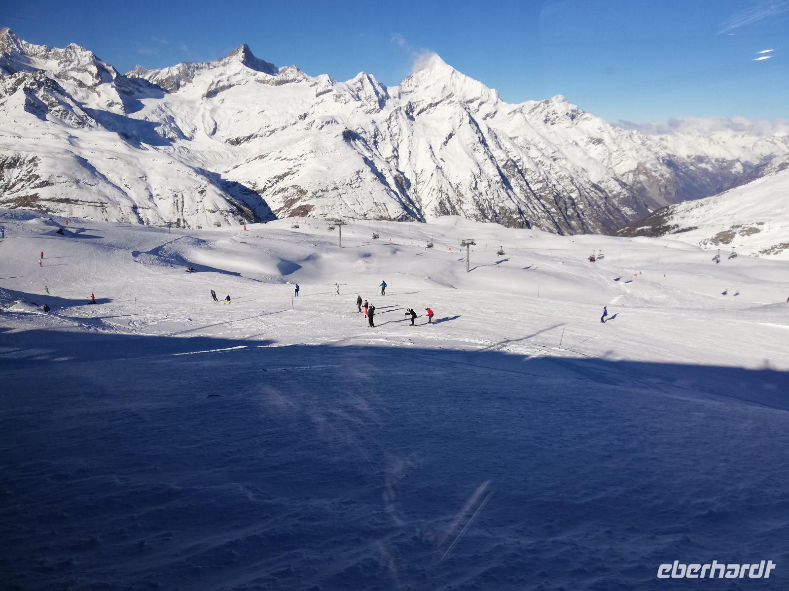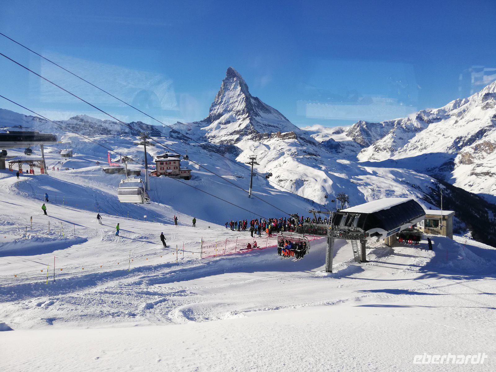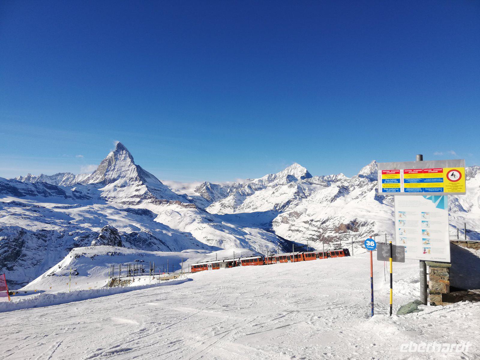 Das Jahr 2018 geht zu Ende. Ganz entspannt beginnen wir den Tag. Wir haben eine freie Sicht in die Berge und eines der schönsten Ziele in der Schweiz vor uns. Mit dem Bus fahren wir nach Täsch und dann mit der Bahn in das autofreie Zermatt. Nur wenige möchte heute nicht mit der Gornergratbahn (der höchsten Zahnradbahn Europas) fahren. Wir haben keine Wolke am Himmel und fahren bei herrlicher Sicht an den unterschiedlichen Stationen an der Bahnstrecke vorbei , zu dem 3082 hohen Gornergrat.