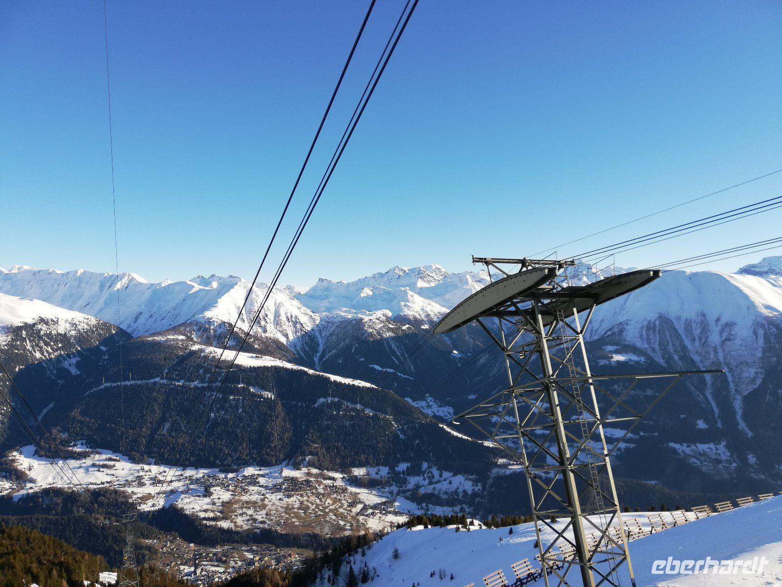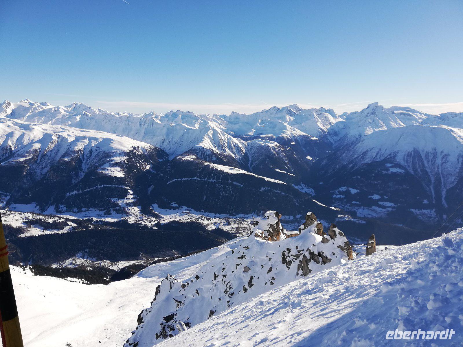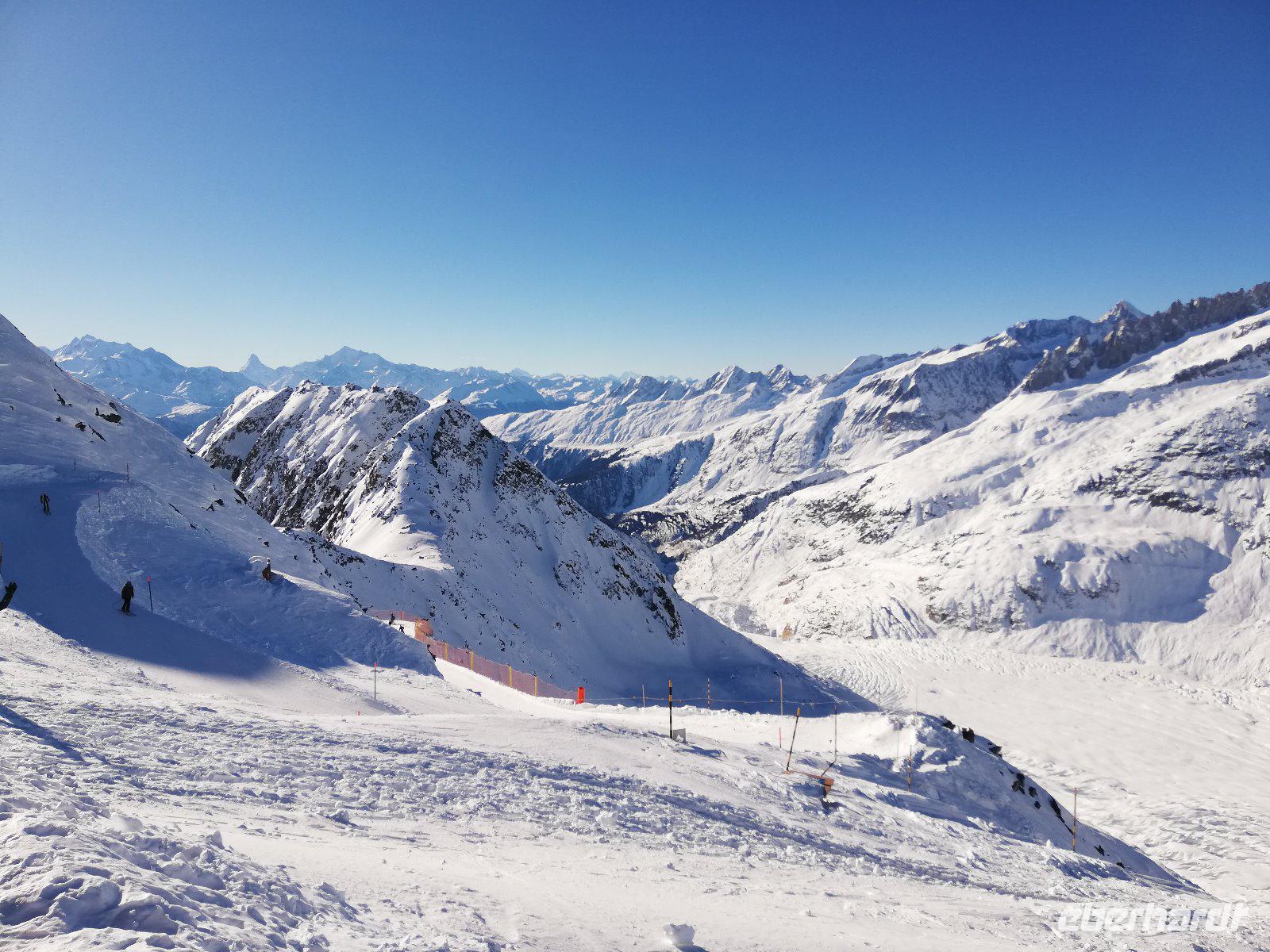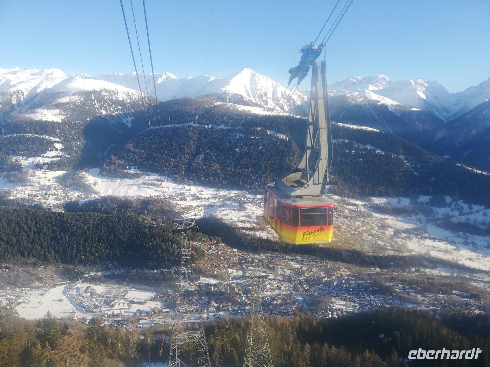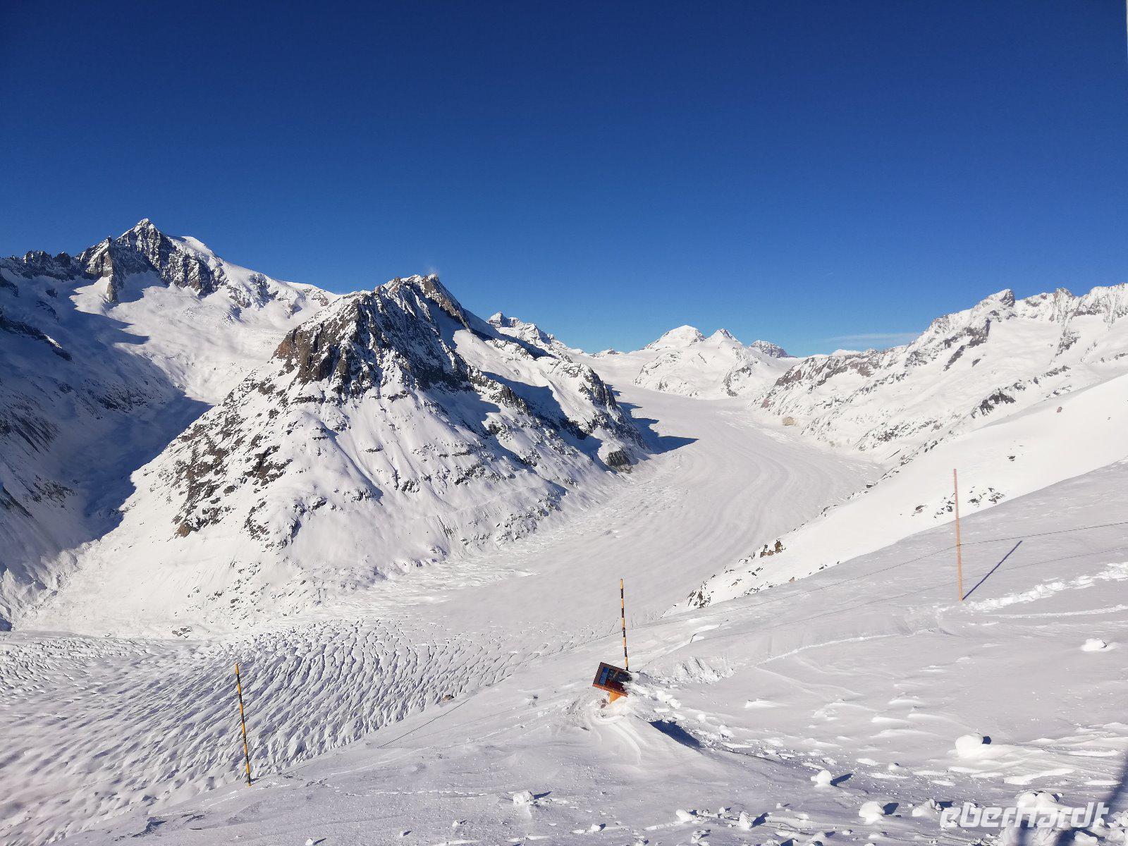Gegen 11 Uhr starten wir nach einem späten Frühstück, unsere Neujahrsfahrt. Nur wenige bleiben im Hotel. Entlang der Rhone fahren wir nach Fiesch.Wir haben wolkenlosen Himmel und sind gespannt auf den Blick auf den Aletschgeletscher. Gegen 12.00 Uhr Uhr fahren wir mit der Kabinenbahn, die 100 Personen fasst, zur Fieschalp. Weiter geht es mit einer Kabinenbahn, die 45 Personen aufnehmen kann, zum Eggishorn. Insgesamt sind wir 20 min mit den Bahnen unterwegs.Die Bergstation liegt auf einer Höhe von 2893 Metern. Es zeigt sich ein fantastischer Blick auf den Aletschgletscher und in die Berge. Nur der Wind bläst kräftig. Anlass eine Station zurück zufahren und die Aussicht von der Fieschalp aus, bei einem Kaffee oder Glühwein zu genießen.