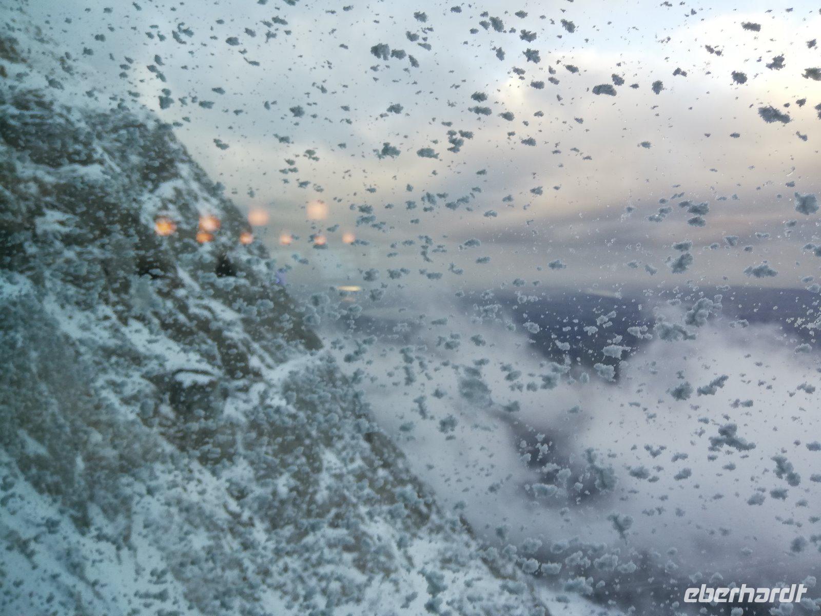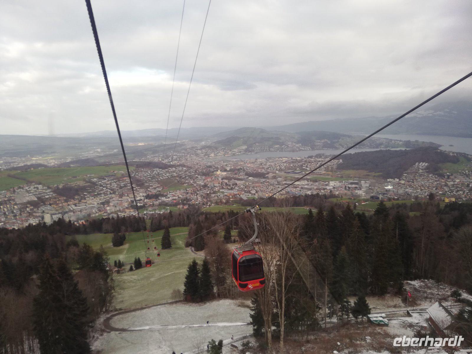 Gegen 08.07. Uhr soll die Sonne aufgehen, und wir erleben den Sonnenaufgang. Gestern Abend war nicht daran zu denken. Ein tolles Erlebnis mit eisverzierte Geländer, viel Schnee und tolle Blicke in die Berge und nach Luzern. Nur ungern fahren wir nach 09.00 Uhr mit der Gondelbahn nach Kriens zurück. Zwei unserer Gäste fahren wir noch zum Bahnhof nach Luzern und danach beginnt die Rückreise. Die Strecke die wir wählen ist aber noch eine Erlebnisreise durch die Schweiz. Wir fahren über den Hirzelpass und haben einen tollen Blick auf den Zürichsee und später noch auf den Walensee bevor wir mit dem Grenzübergang Kriessen/Mäder unser Urlaubsland verlassen.Gegen 21.30 Uhr endet unsere Fahrt - Silvester im Glacier-Express