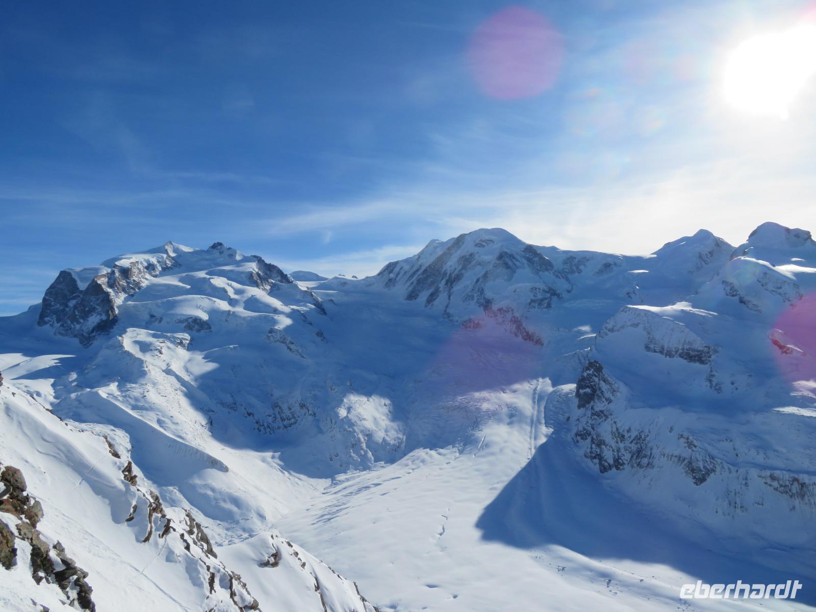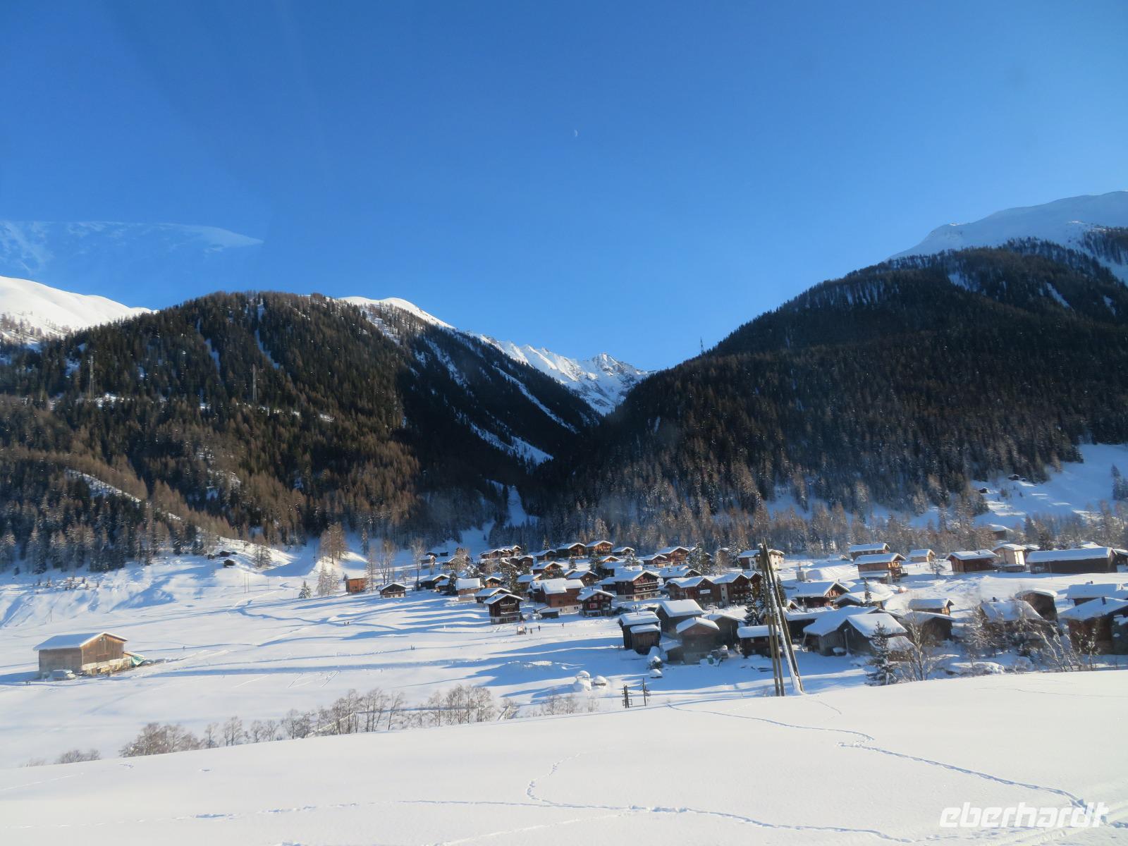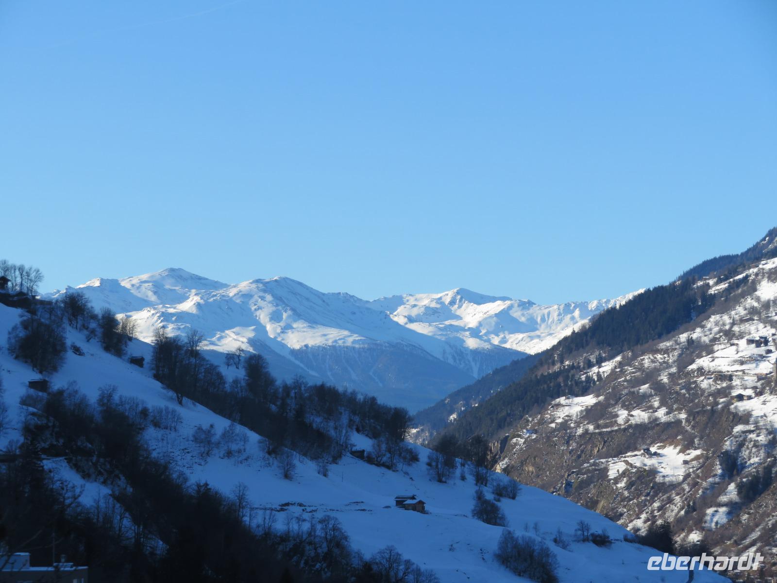 Wieder weckt uns wunderbarer Sonnenschein. Nach dem späten Frünstück steht ein Ausflug auf das Eggishorn auf unserem Programm. Wir fahren zunächst nach Fiesch. Dort erwartet uns die nagelneue Gondelumlaufbahn, welche uns auf die Fiescheralp bringt. Nun geht es hinauf auf das 2.869 Meter hohen Aussichtspunkt Eggishorn. Ganz richtig ist es nicht, denn die Bahnstation befindet sich auf einem Vorgipfel des eigentlichen Gipfels Eggishorns. Uns eröffnet sich eine einmalige Sicht auf das Panorama der Walliser und Berner Alpen. Wir sehen den Mont Blanc das Matterhorn und die gesamte Kette der Walliser Alpen. Unser Blick schweift hinüber zu Eiger, Mönch und Jungfrau und zum Jungfraujoch in den Berner Alpen. Wir bestaunen den Aletschgletscher in seiner vollen Pracht. Dieser ist mit 23 Kilometern der längste Gletscher der Alpen. Umgeben von mehreren Gipfeln, welche über 4.000 Meter hoch sind, bildet der Gletscher das Herzstück des UNESCO-Weltnaturerbes. Nun bleibt noch Zeit, die einmalige Aussicht in vollen Zügen bei herrlichem Sonnenschein zu genießen. Wir können uns kaum satt sehen an dieser Pracht der Natur. Die Kabinenbahn bringt uns hoch über den Pisten schwebend, zurück auf die Fiescheralp. Mit der neuen Gondelbahn geht es wieder hinab ins Tal. Der Nachmittag ist einfach zu schön, um bereits ins Hotel zurückzukehren. Deshalb haben wir uns entschieden, noch eine kleine Rundfahrt zu unternehmen. Wir fahren in das Goms. Diese Landschaft bildet das weite Tal der Rhône mit wunderschönen alten Walliser Dörfern und die umliegenden Berge. Die dunkelbraunen Häuser sind aus Lärchenholz erbaut. Das Tal ist tief verschneit. Wir genießen die wunderschönen Ausblicke in ein wahres Winterwunderland bei einem Glühwein. Nun bringt uns der Bus zurück nach Brig. Wieder geht ein herrlicher Tag für uns zu Ende.