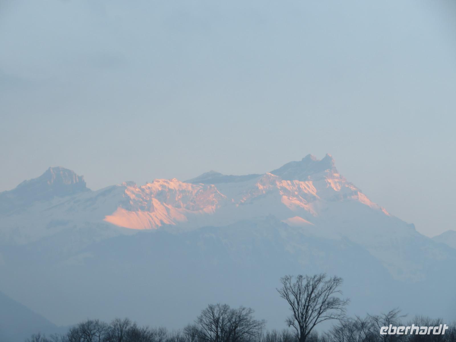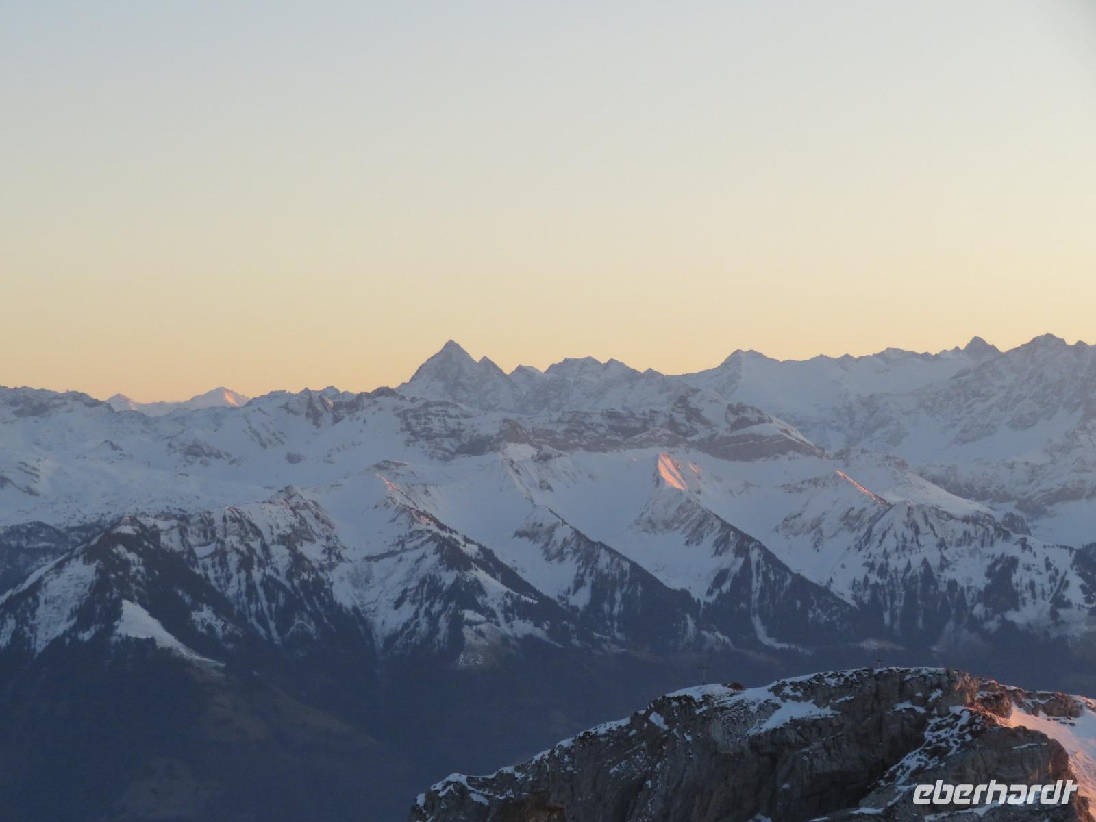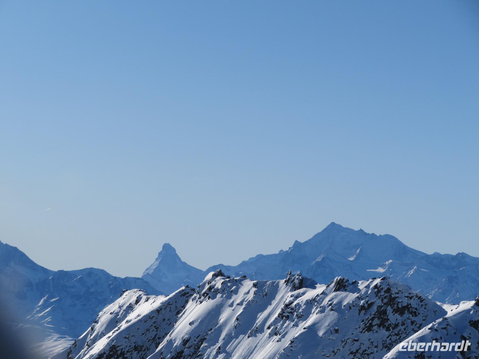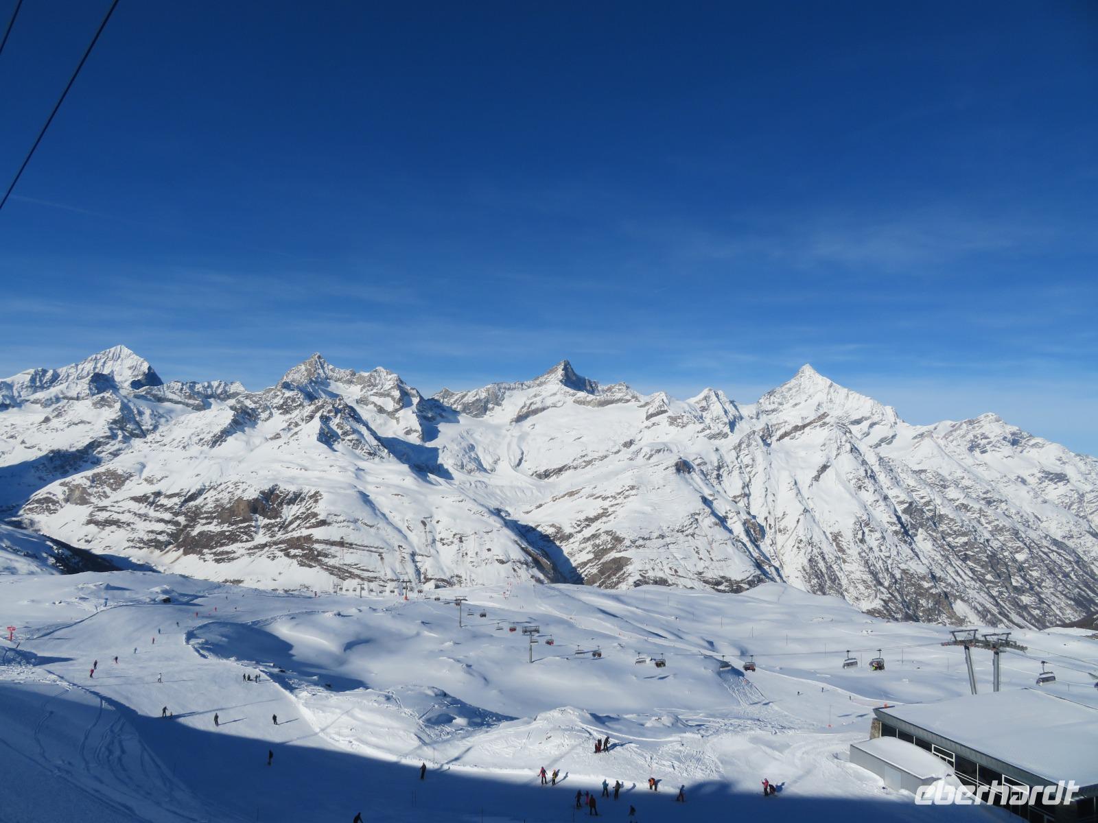 Wieder weckt uns wunderbarer Sonnenschein. Nach dem späten Frünstück steht ein Ausflug auf das Eggishorn auf unserem Programm. Wir fahren zunächst nach Fiesch. Dort erwartet uns die nagelneue Gondelumlaufbahn, welche uns auf die Fiescheralp bringt. Nun geht es hinauf auf das 2.869 Meter hohen Aussichtspunkt Eggishorn. Ganz richtig ist es nicht, denn die Bahnstation befindet sich auf einem Vorgipfel des eigentlichen Gipfels Eggishorns. Uns eröffnet sich eine einmalige Sicht auf das Panorama der Walliser und Berner Alpen. Wir sehen den Mont Blanc das Matterhorn und die gesamte Kette der Walliser Alpen. Unser Blick schweift hinüber zu Eiger, Mönch und Jungfrau und zum Jungfraujoch in den Berner Alpen. Wir bestaunen den Aletschgletscher in seiner vollen Pracht. Dieser ist mit 23 Kilometern der längste Gletscher der Alpen. Umgeben von mehreren Gipfeln, welche über 4.000 Meter hoch sind, bildet der Gletscher das Herzstück des UNESCO-Weltnaturerbes. Nun bleibt noch Zeit, die einmalige Aussicht in vollen Zügen bei herrlichem Sonnenschein zu genießen. Wir können uns kaum satt sehen an dieser Pracht der Natur. Die Kabinenbahn bringt uns hoch über den Pisten schwebend, zurück auf die Fiescheralp. Mit der neuen Gondelbahn geht es wieder hinab ins Tal. Der Nachmittag ist einfach zu schön, um bereits ins Hotel zurückzukehren. Deshalb haben wir uns entschieden, noch eine kleine Rundfahrt zu unternehmen. Wir fahren in das Goms. Diese Landschaft bildet das weite Tal der Rhône mit wunderschönen alten Walliser Dörfern und die umliegenden Berge. Die dunkelbraunen Häuser sind aus Lärchenholz erbaut. Das Tal ist tief verschneit. Wir genießen die wunderschönen Ausblicke in ein wahres Winterwunderland bei einem Glühwein. Nun bringt uns der Bus zurück nach Brig. Wieder geht ein herrlicher Tag für uns zu Ende.