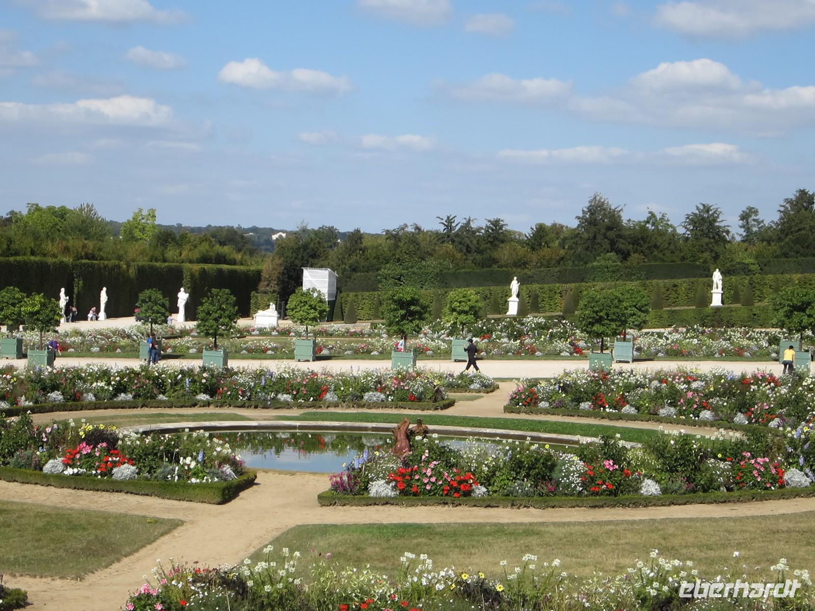 In den Gärten faszinieren uns heute die Wasserspiele bei barocker Musik und Kaiserwetter. Im Jardin de Roi bewundern wir die herrlichen Blumenarrangements und können uns die Liebe Ludwig XIV. zu seiner königlichen Residenz gut vorstellen. In seiner Schrift "Art und Weise, die Gärten von Versailles zu zeigen" empfiehlt er höchstpersönlich Spaziergänge durch die wunderschönen Anlagen seines Gartenarchitekten Le Nôtre.