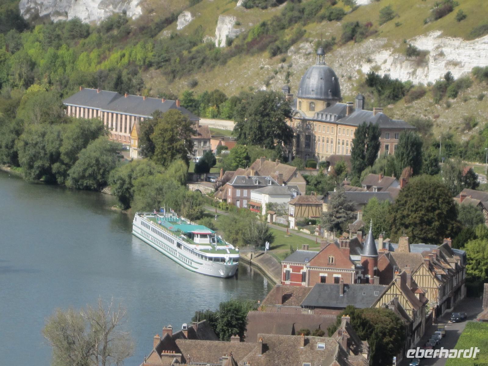Nach sportlicher und geistiger Betätigung an Bord führt uns unser Weg heute zum Chateau Gaillard. Die Festung von Richard Löwenherz aus dem 12. Jahrhundert ist bereits von Le Petit Andely aus zu sehen. Richard, der König von England und Herzog der Normandie, wird 1199 in Châlus durch den Pfeil einer Armbrust tödlich verwundet. Sein Bruder Johann Ohneland ist dem französischen König Philippe-Auguste nicht gewachsen. Der König von Frankreich greift die Festung 1203 an und belagert sie 8 Monate lang, viele Bürger verhungern vor den Festungsmauern.1204 wird das Chateau französischer Besitz, wird dann im 100-jährigen Krieg abwechselnd englisch und französisch. Ende des 16. Jahrhunderts läßt Heinrich IV. die Festung schleifen. Kapuziner und Büßermönche nutzen die Steine Anfang des 17. Jahrhunderts zur Restauration ihrer Klosteranlagen. Mitte des 19. Jahrhunderts werden die Reste des Chateau Gaillard unter Denkmalschutz gestellt. Die unbeschreiblich schöne Aussicht auf Sequana, die kurvenreiche Seine mit ihrer sanft anmutenden ländlichen Umgebung, genießen wir bei einer Kostprobe von Cidre und Calvados, den berühmten Spezialitäten der Normandie. Das dritte C der Normandie steht für Camembert, den wir heute Abend beim Abendessen verkosten. Die Crew verwöhnt uns anschließend mit einem bühnenreifen Showprogramm, das allen viel Vergnügen bereitet.
