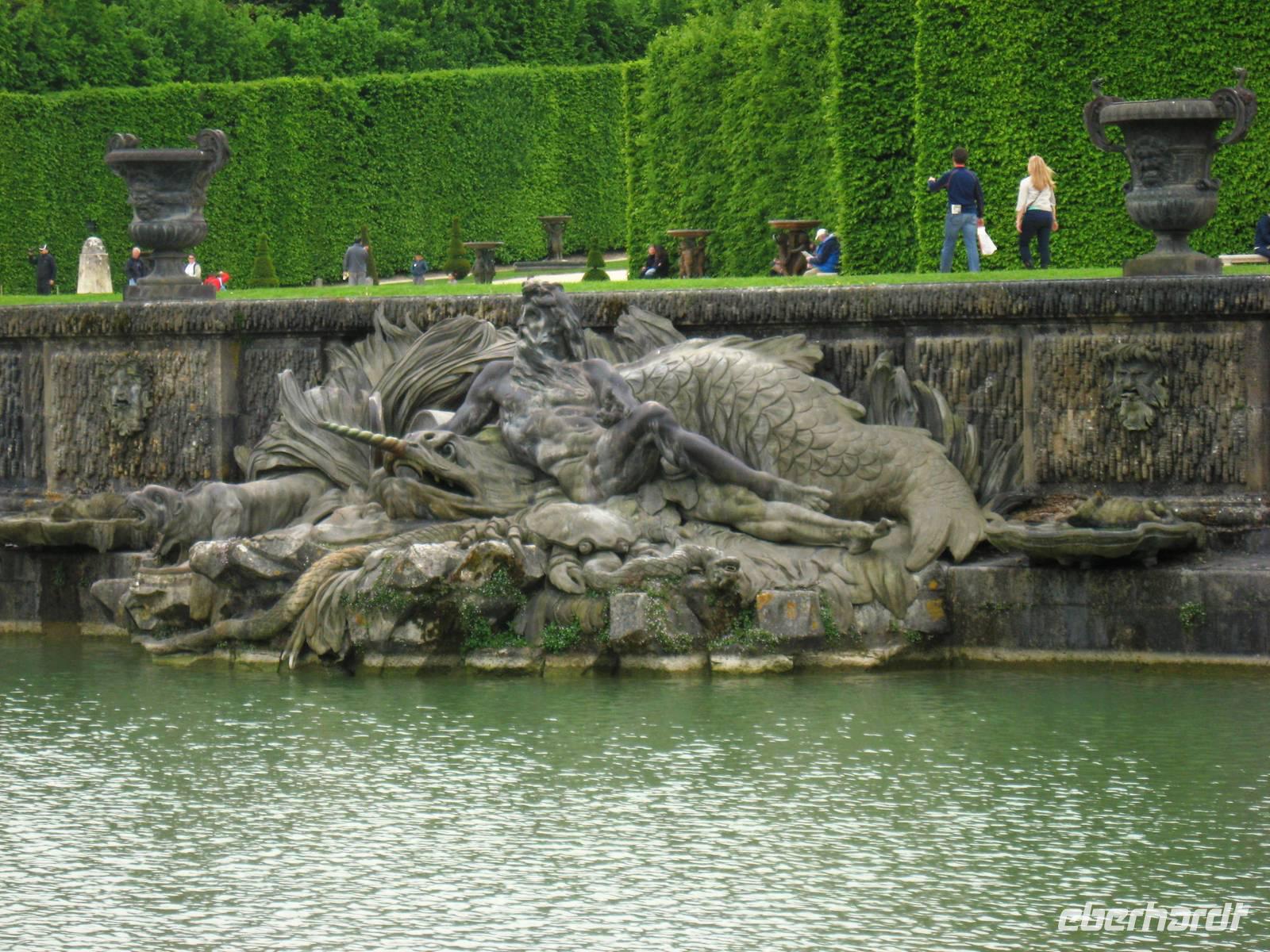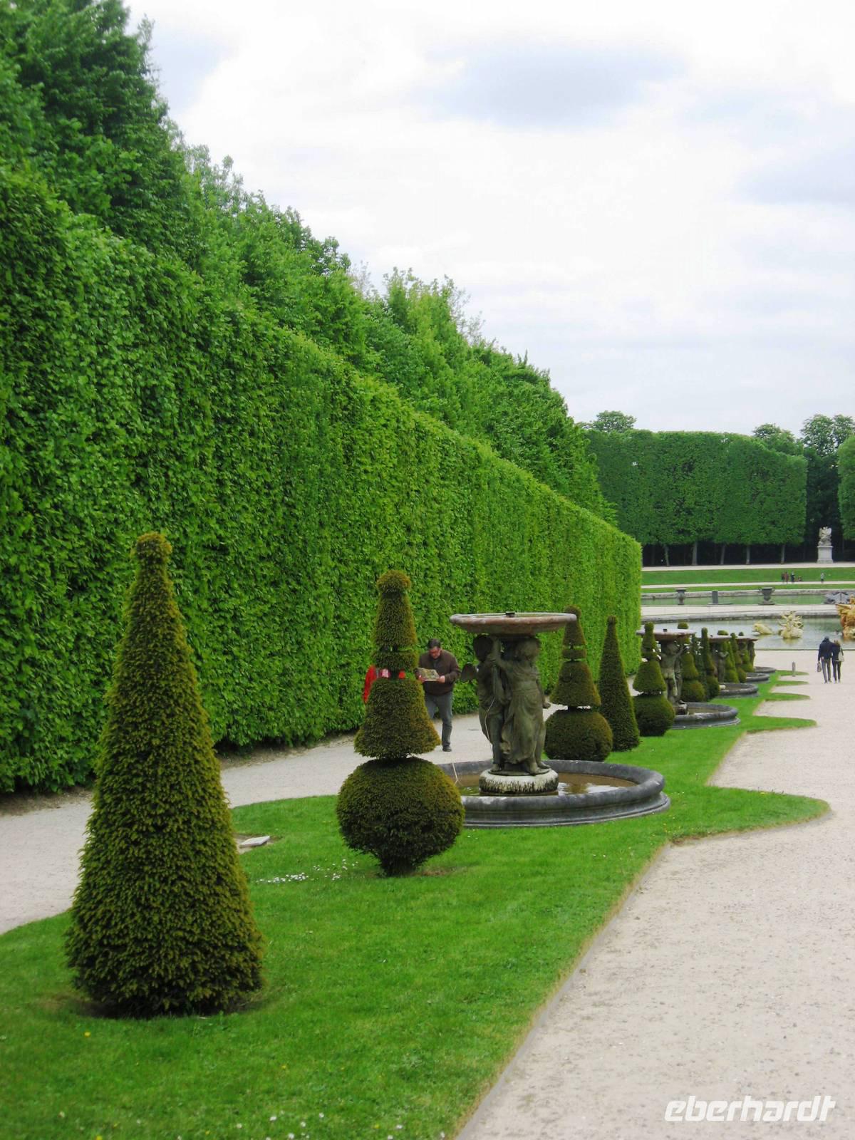 In Versailles hatte Ludwig der XIII. sich ein kleines Jagdschloss bauen lassen, das sein Sohn, Ludwig der XIV., der Sonnenkönig, zu einer prunkvollen Schlossanlage hat ausbauen lassen. Eminent wichtiger Bestandteil sind die großen, vielfältig gestalteten Gartenanlagen, deren Größe man von der Schlossterrasse aus am besten erahnen kann. Der Gartenbaumeister André le Nôtre entwarf den Garten, die geometrisch angelegten Beete, die kunstvoll gestalteten Brunnen und Wasserspiele, deren Hauptfiguren sich immer wieder auf die antiken Mythologien beziehen. Auf dem in der Mitte der Anlage gelegenen Kanal wurden Wasserschlachten inszeniert und bei großen Festen Ruderboote mit romantischem Licht zu Wasser gelassen.