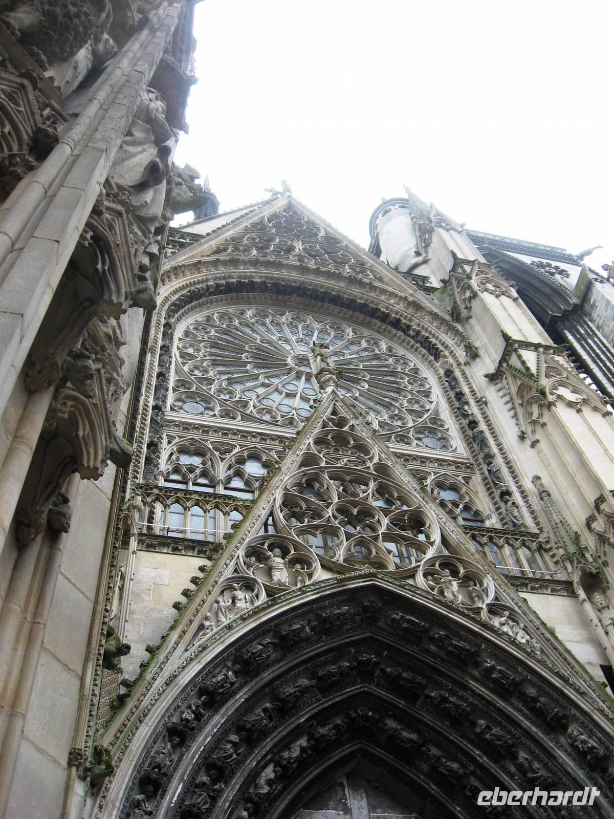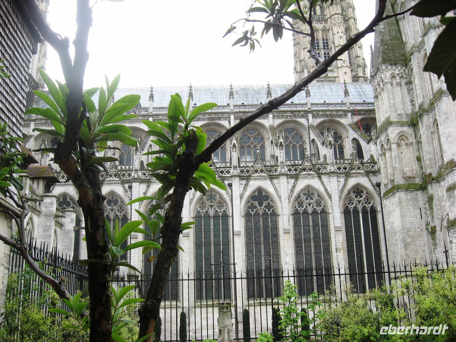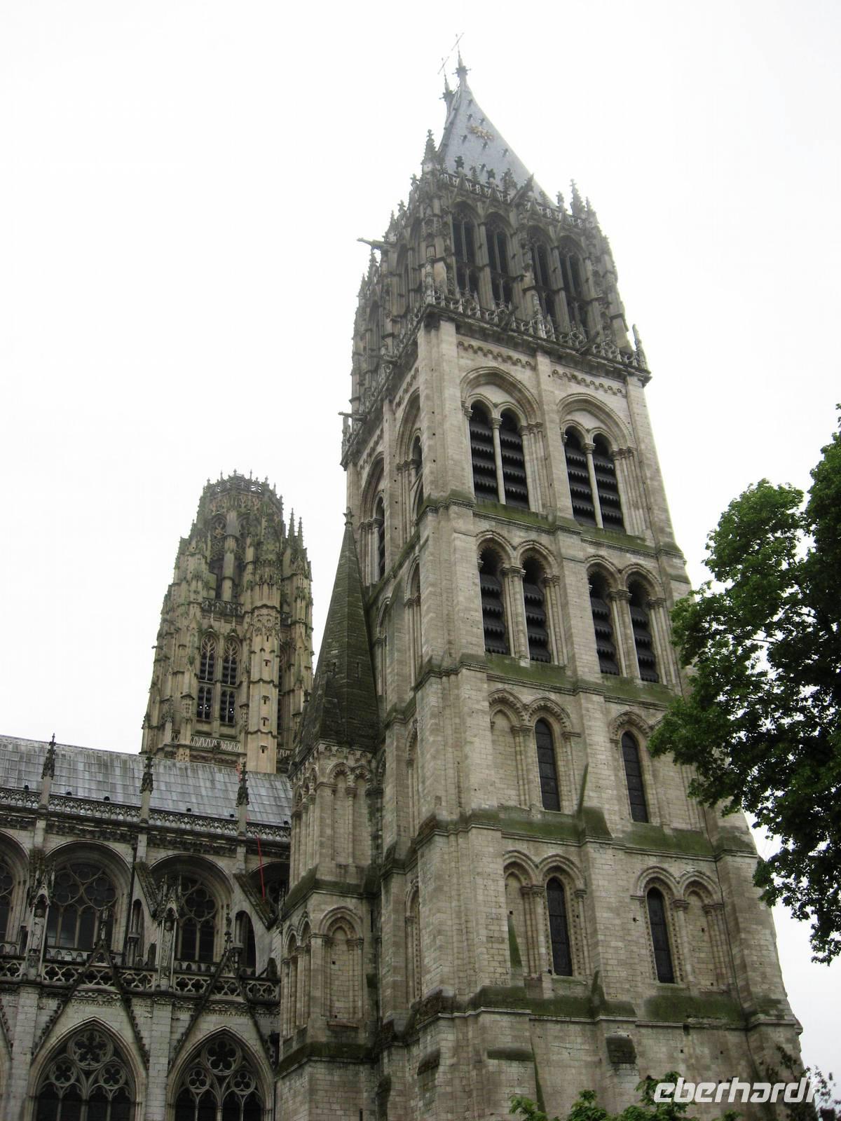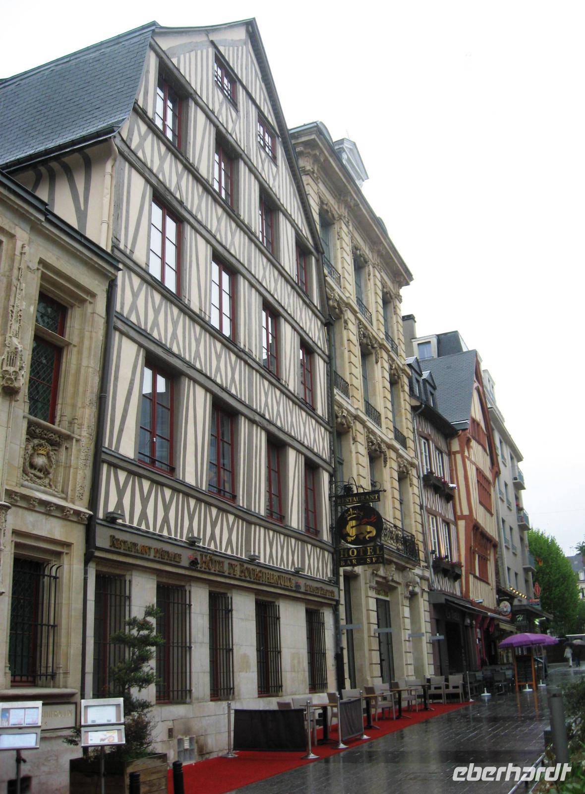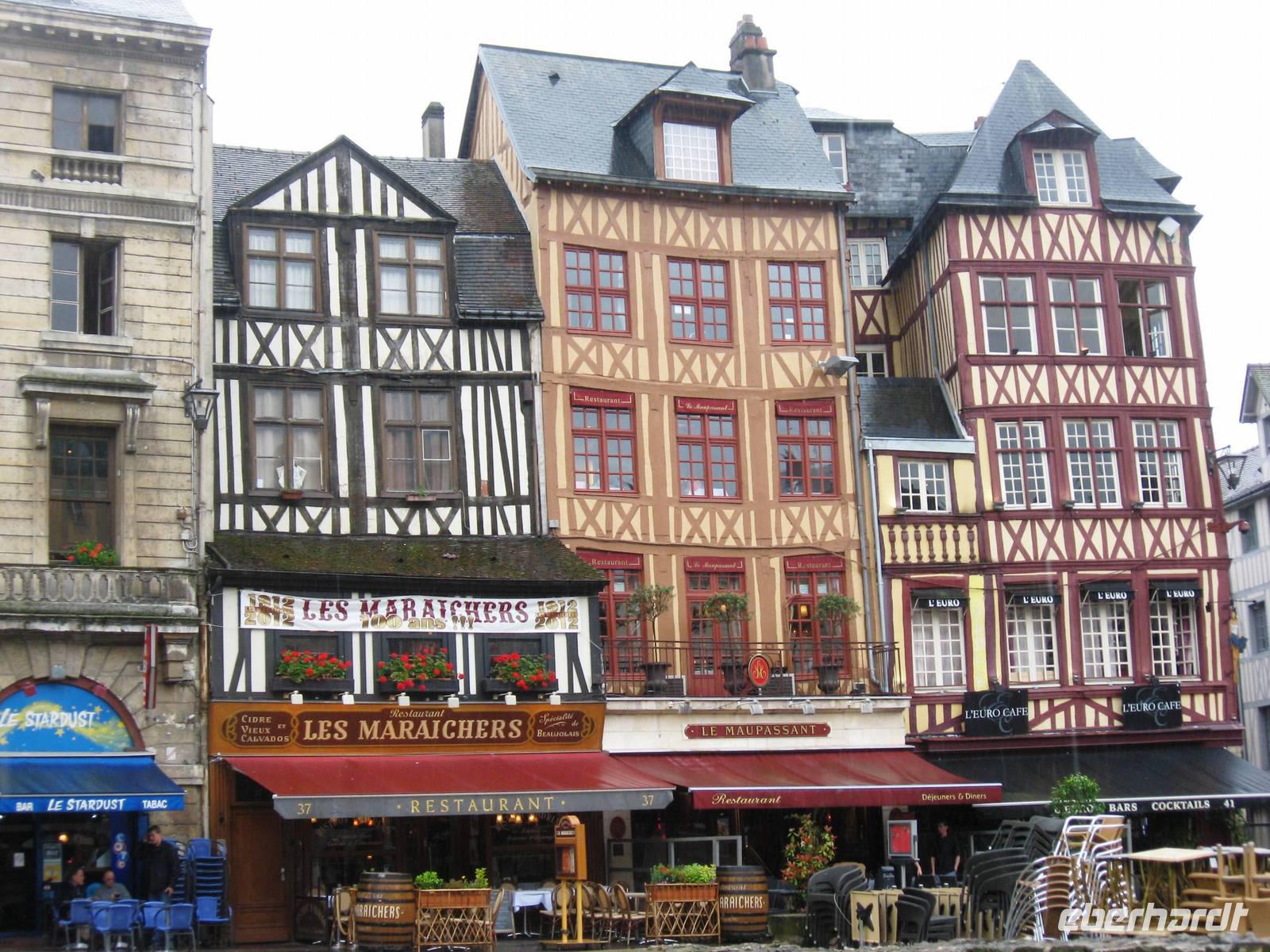 Wir gehen durch die schöne "Rue du Gros Horloge", die nach dem großen schönen Uhrturm benannt wurde. Wie überall in der Innenstadt stehen auch hier rechts und links wunderschöne Fachwerkhäuser. Danach gehen wir zum prächtigen Justizpalast und zum krönenden Abschluss zur großen Kathedrale von Rouen, die ab dem 12. Jahrhundert über mehrere hundert Jahre gebaut wurde und im 19. Jahrhundert über zwei Jahre hinweg von Claude Monet in 33 Werken zu verschiedenen Tageszeiten gemalt wurde. Ein schöner Abschluss für unseren Rundgang durch ein Rouen, das uns mit Regenwetter empfangen hatte.
