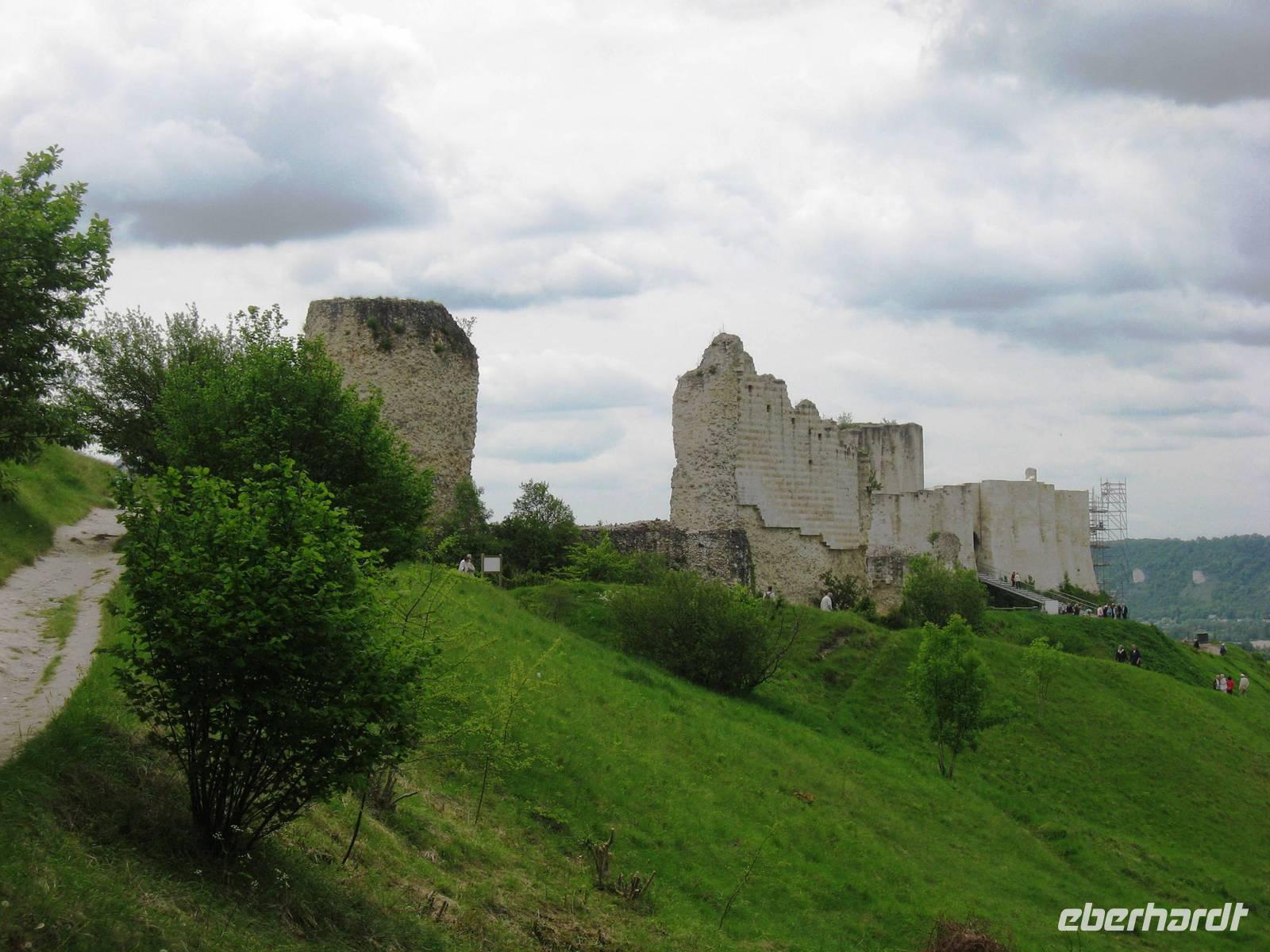 Richard Löwenherz ließ die Festungsanlage Château Gaillard nach seiner Rückkehr vom 3. Kreuzzug in nur 2 Jahren hoch über der Seine an einem strategisch günstigen Punkt bauen. Ein Großteil der imposanten Anlage ist zerstört, aber wir sehen Teile der Mauer, größere Teile der Hauptfestung und erahnen, welche Ausmaße diese Festung einmal hatte. Heute ist das Wetter schön und wir genießen den Ausblick auf die Landschaft ringsherum, insbesondere die Seine und die Kreidefelsen im Sonnenschein.
