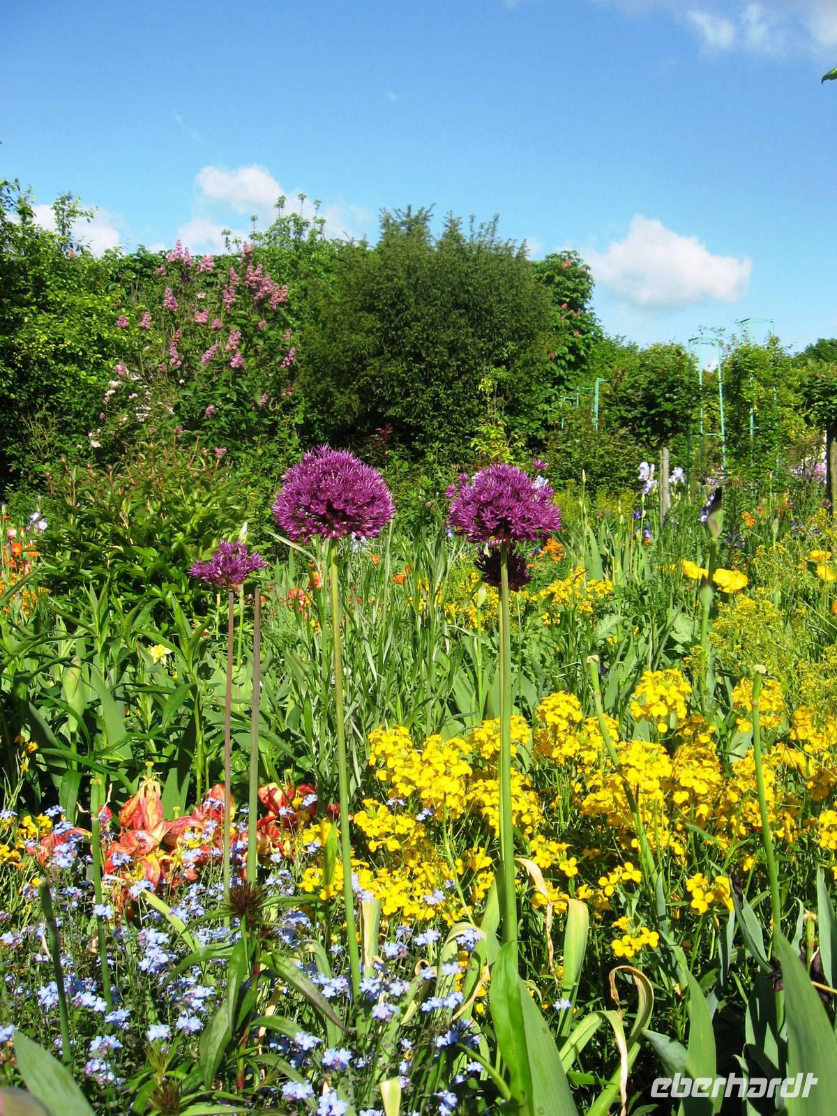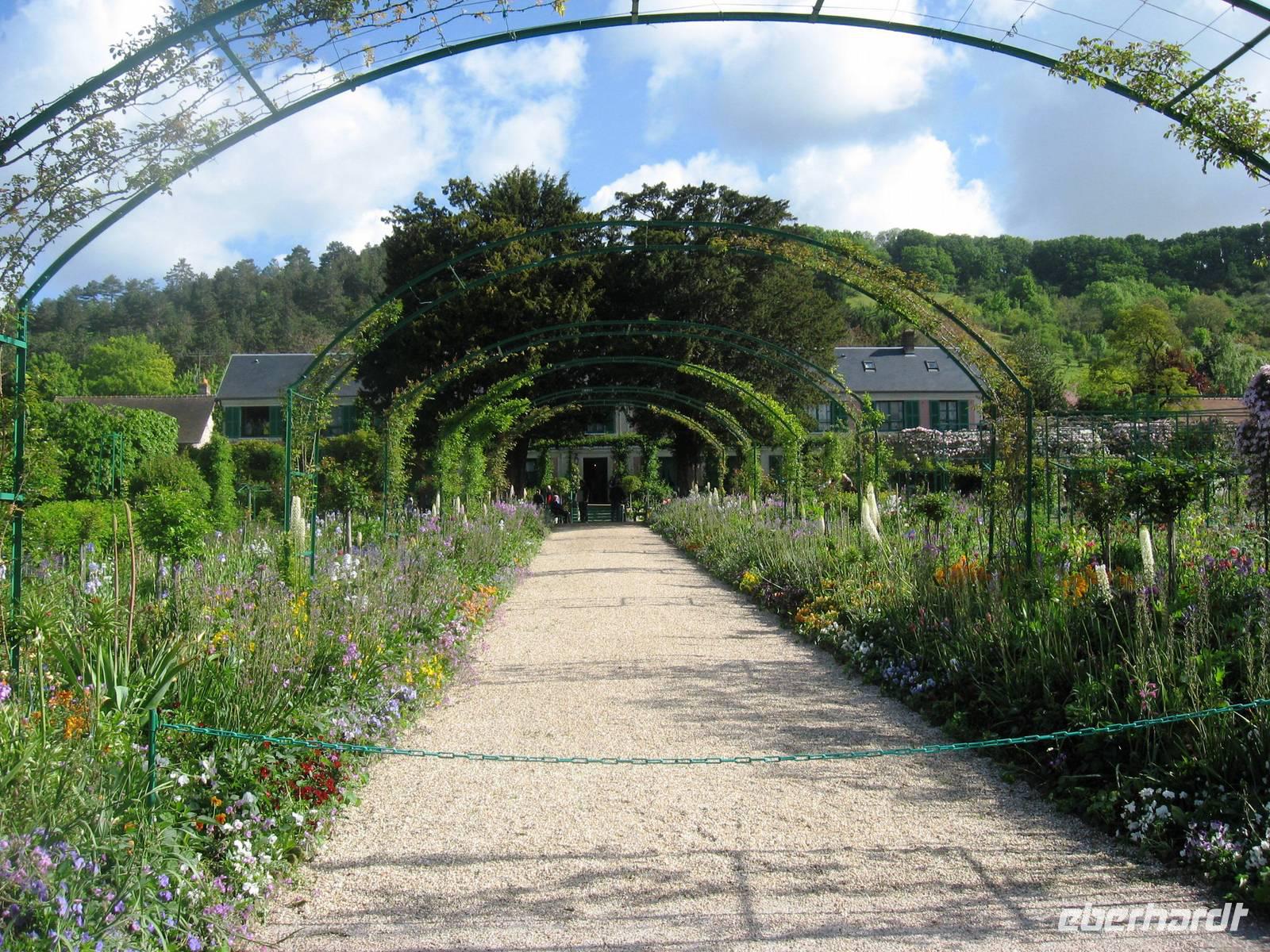 Claude Monet hatte die finanziell schwierigsten Jahre als Künstler hinter sich, als er mit Unterstützung des Kunsthändlers Durand-Ruel 1883 ein Haus mit Garten in Giverny erst mietete und später kaufte. Er legte einen Garten an, den er „Clos normand" nannte und erweiterte diesen Bereich später um einen Seerosenteich, den man über eine japanische Brücke überqueren kann. Die Fülle der Blumen und der Farben ist nahezu unbescheiblich.