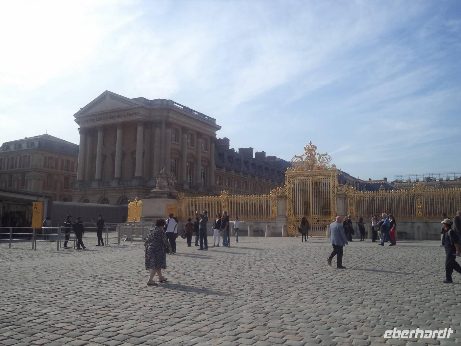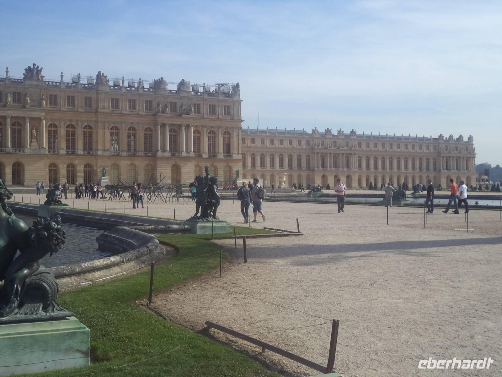 Ein ausgiebiges Bordfrühstück eröffnete den zweiten Reisetag, während unser Schiff bereits abgelegt hatte und seineabwärts durch die französische Hauptstadt glitt. Der Morgen verging mit dem Entdecken des hübschen, 110 m langen Kreuzfahrtschiffes mit seinen zahlreichen Unterhaltungsmöglichkeiten und mit einem Vortrag der Bordreiseleitung über die Seine. Dieser zweitlängste komplett französische Fluss würde uns von Paris bis zu seiner Mündung und wieder zurück in den nächsten Tagen beherbergen - ein guter Grund etwas über seine Besonderheiten in Erfahrung zu bringen. Nach dem interessanten Vortrag folgte die Vorstellung der Besatzung des Kreuzfahrtschiffes, mit der wir bei einem Begrüßungsdrink noch kurz auf eine gelungene Reise anstoßen konnten. Dann gab es schon Mittagessen und danach den ersten Ausflug: In Conflans, dem Ort, in dem die Oise in die Seine hineinfließt, legte unser Schiff an. Wir bestiegen unsere Busse und fuhren in das nicht allzuweit entfernte Versailles - zu einer der bekanntesten Sehenswürdigkeiten Frankreichs.