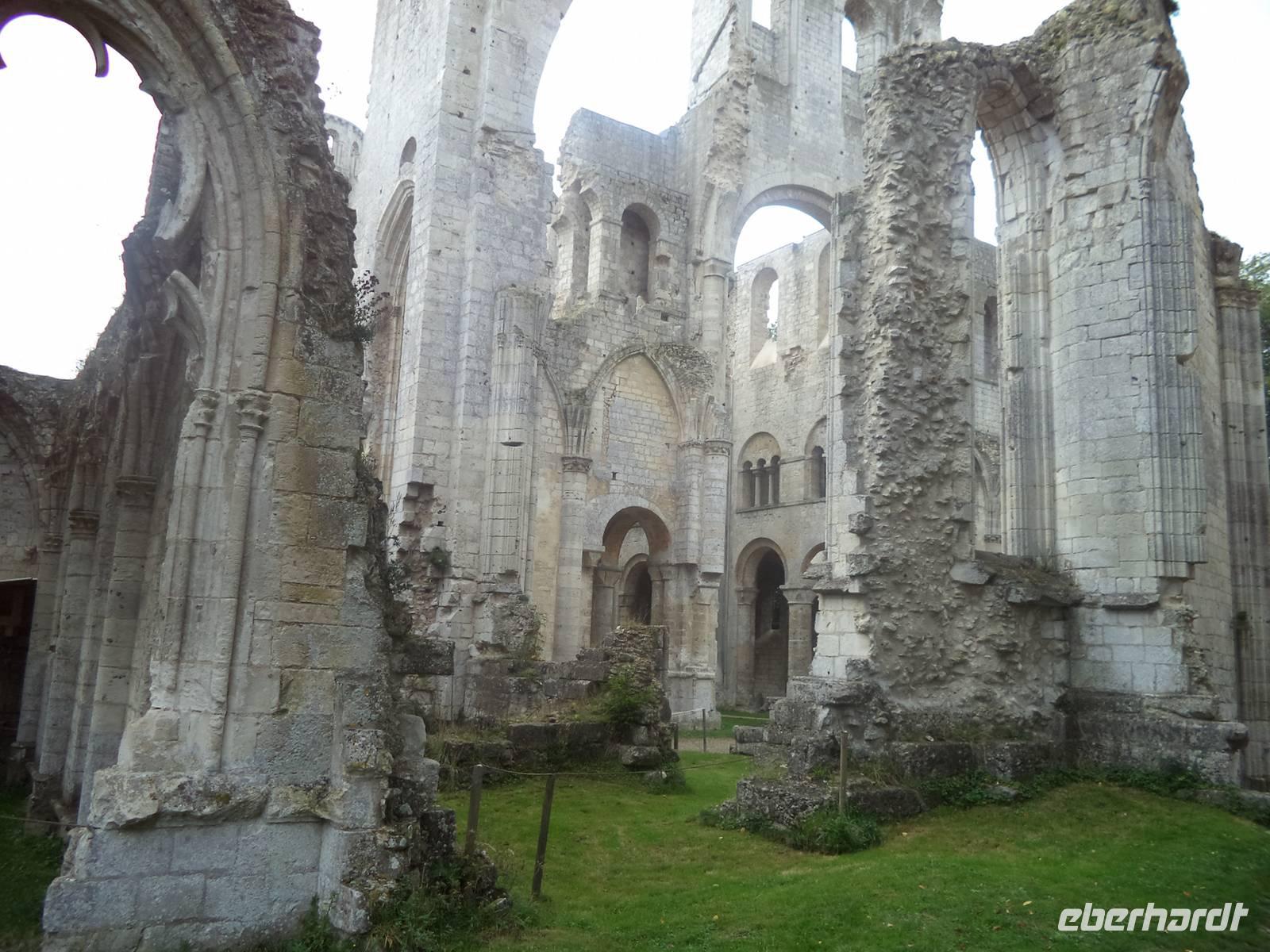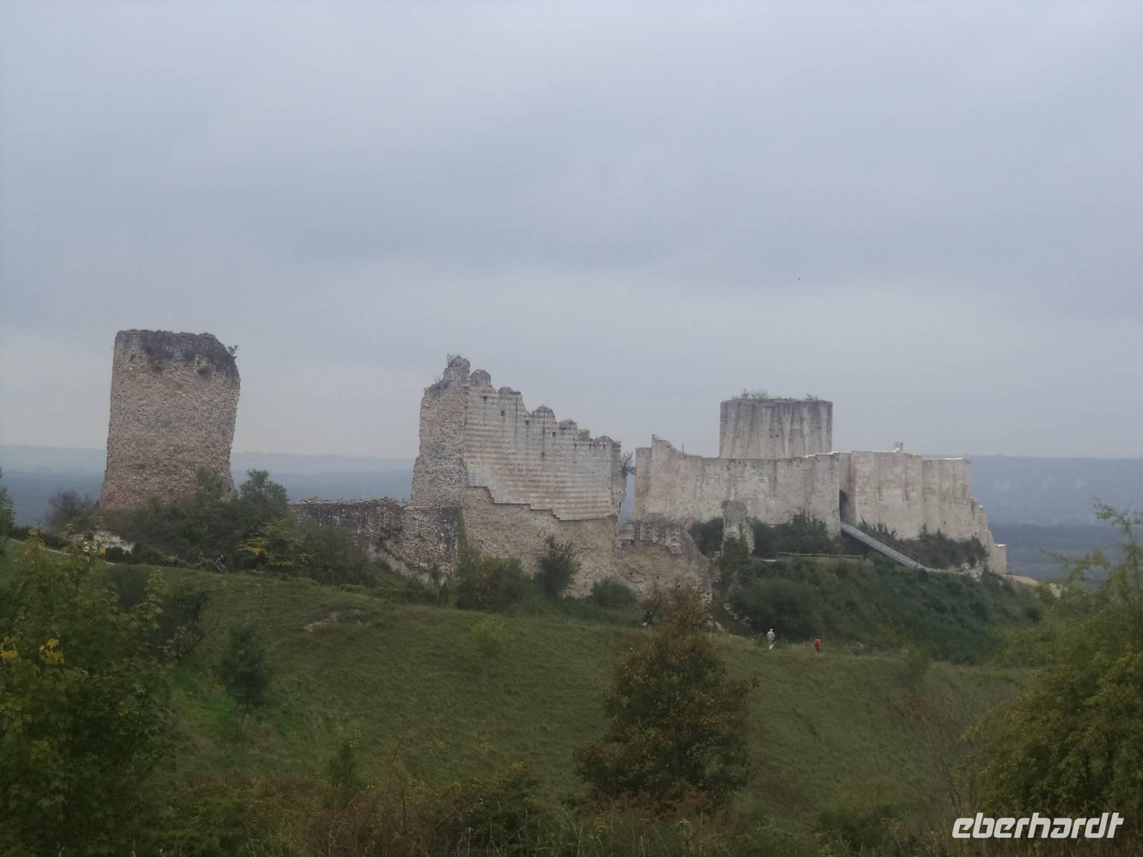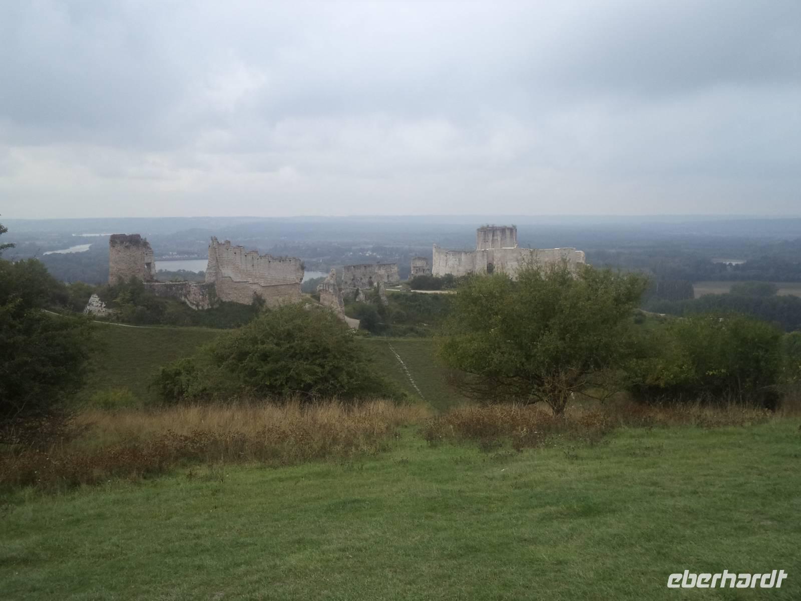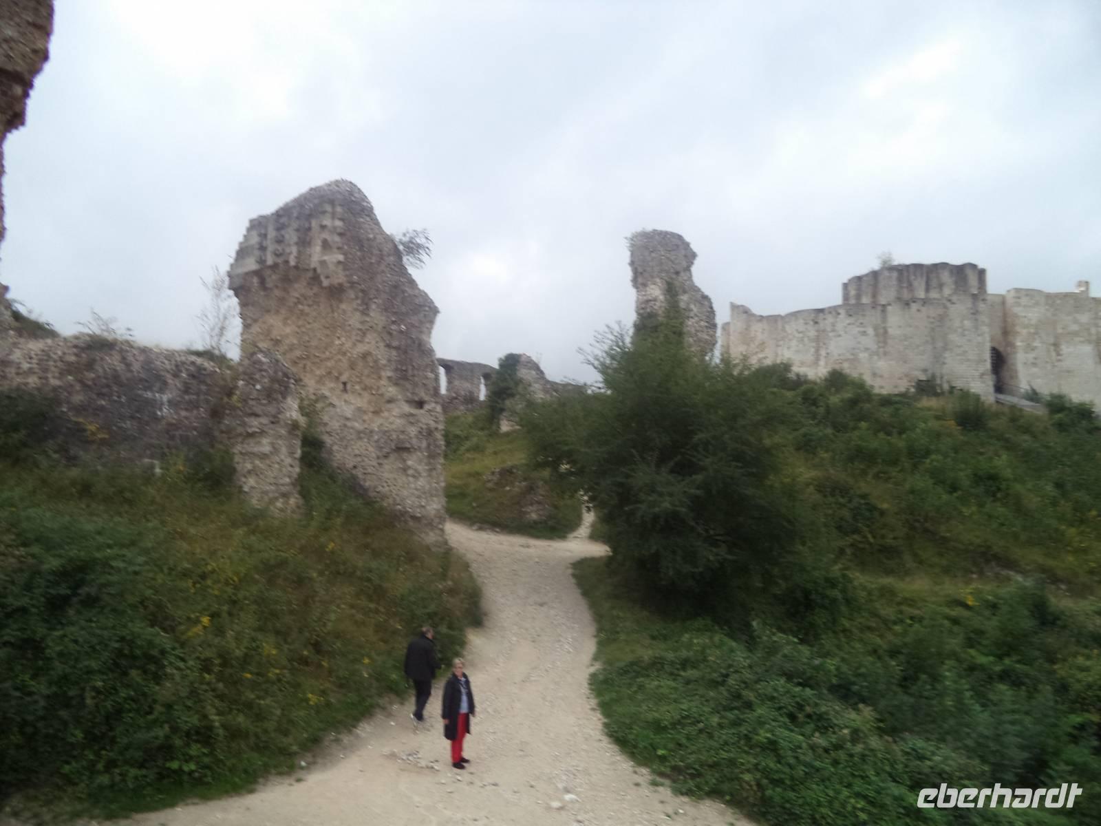 Der Vormittag wurde heute an Bord verbracht, denn MS „Renoir hatte eine recht gewaltige Strecke stromaufwärts der Seine zurückzulegen. Mehrere Schleusen - der gesamte Höhenunterschied von Paris bis zur Flussmündung beträgt übrigens 26 m - ermöglichen es Schiffen, den Fluss trotz des Gefälles zu passieren. Vom vergangenen Abend an unterwegs, erreichten wir gegen Mittag Les Andelys. Der Name zeigt ein Mehrzahlwort und tatsächlich gibt es zwei Orte dieses Namens: Groß- und Klein Andelys. Der Platz nahe unserem Anleger nahe der Kirche von Klein Andelys ermöglichte das Halten der Busse und dann konnten wir mit deren Hilfe Auffahren zur malerisch das Seine-Tal beherrschenden Festung Chateau Gaillard. Nach nur einem Jahr Bauzeit beherrschte von hier der englische König Richard Löwenherz - nominell auch Herzog der Normandie - das Seinetal und legte gleichzeitig eine Sperrfestung gegen das Vordringen seines Rivalen, des Königs von Frankreich an. Schön war die Anlage der Festung, die Löwenherz einmal stolz „seine Tochter" genannt haben soll und spektakulär war die strategische Lage der Burg, die dadurch auch Geschichte schrieb, denn nach dem Tod seines Bruders Richard verlor der nachfolgende englische König - deshalb auch „Johann ohne Land „ genannt - die Besitzungen an den angreifenden französischen König Philipp Auguste - schon 1204. In einer vielbeschriebenen Belagerung brachen die Franzosen die englische Burg und sorgten damit für einen der vielen Auslöser für den 133 Jahre später beginnenden gewaltigen „hundertjährigen Krieg" zwischen England und Frankreich. Noch zweimal machte die Burg, nunmehr französisch - in der Geschichte von sich reden: in ihrem Kerker starb 1315 die wegen Ehebruch angeklagte Königin und Gattin Ludwigs X. unter myteriösen Umstanden, angeblich mit ihren eigenen Haaren erdrosselt - während ihr Gatte bereits vier Tage später eine ungarische Prinzessin heiratete. Und während des hundertjährigen Krieges zwischen Frankreich und England war hier für einige Zeit der König Karl II. von Navarra der prominenteste Gefangene.