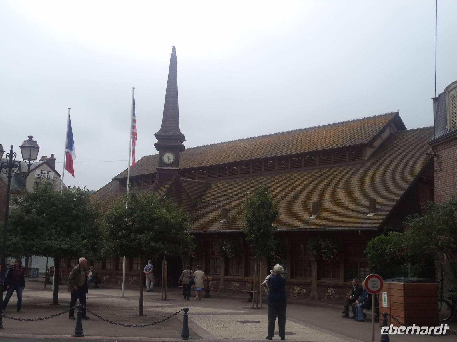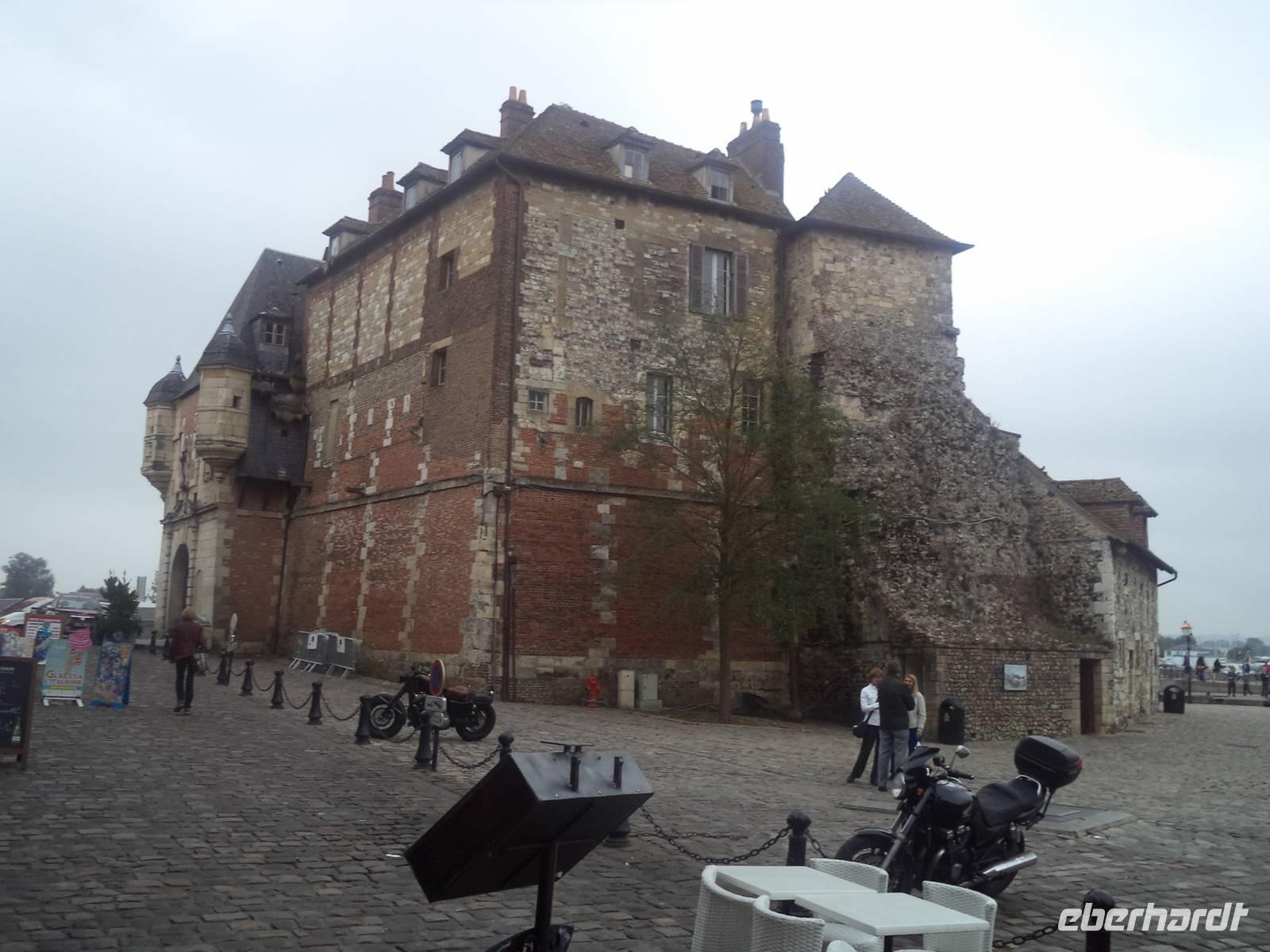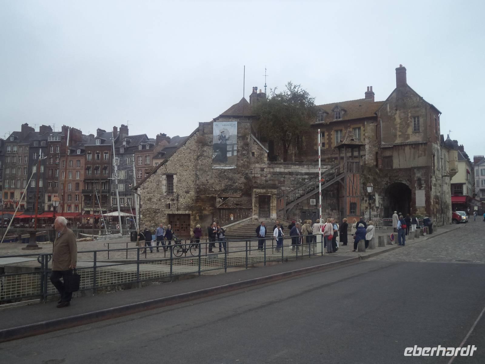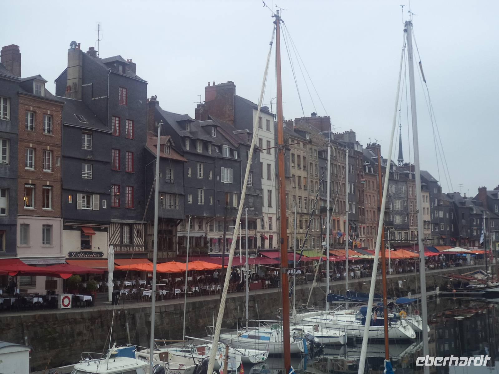 In der Normandie war es immer noch warm. Heute lag unser Schiff, die MS „Renoir", im Hafen von Honfleur und am Morgen - gleich nach dem leckeren Frühstück - gingen wir „an Land" und besichtigten einen der malerischsten und bekanntesten Orte der Normandie. In diesem ehemaligen alten Kriegshafen sind die Häuser, die das alte Hafenbecken umstehen, mit ihren vielen Etagen und ihrer Schieferbedeckung unverkennbar. Sie ziehen nicht nur hunderttausende Touristen jährlich an, sondern das alte Hafenviertel um das „vieux bassin" von Honfleur war und ist Tummelplatz von Künstlern - vor allem natürlich Malern, die die pittoresken Details auf der Leinwand festhalten wollen, aber auch von Literaten, die die unglaubliche Atmosphäre mit Worten einfangen wollen! Ein schweres Stück Arbeit, denn Honfleur ist - tatsächlich! - schwer zu beschreiben! Mehrere Museen versuchen, die kunsthistorische Bedeutung des Ortes einzufangen, aber die Realität überwältigt immer wieder - wie beispielsweise die alte Kirche Ste. Catherine. Erbaut wurde sie im 15. Jahrhundert, unmittelbar nach Ende des für Frankreich und die Normandie prägenden „hundertjährigen Krieges". Damals gab es keine freien Baumeister mehr, da alle in königlichem Auftrag mit dem französischen Wiederaufbau beschäftigt waren. So griffen die Leute der damals bedeutenden Hafenstadt Honfleur zur Selbsthilfe: Schiffsbaumeister errichteten die neue Kirche es Ortes so, wie sie auch Schiffe bauten - nur umgedreht. Ste. Catherine ist auf diese Art ein Unikat - eine Kirche, die von aussen und innen aussieht wie umgedrehte Schiffe. Der Nachmittag begann mit der Fahrt in Richtung Küste, wobei wir über die Hängebrücke „Pont de Normandie" zunächst durch Le Havre fuhren. Frankreichs größter Ölhafen ist ansprechender, als man denkt und so setzten wir unsere Fahrt an der Küste fort.