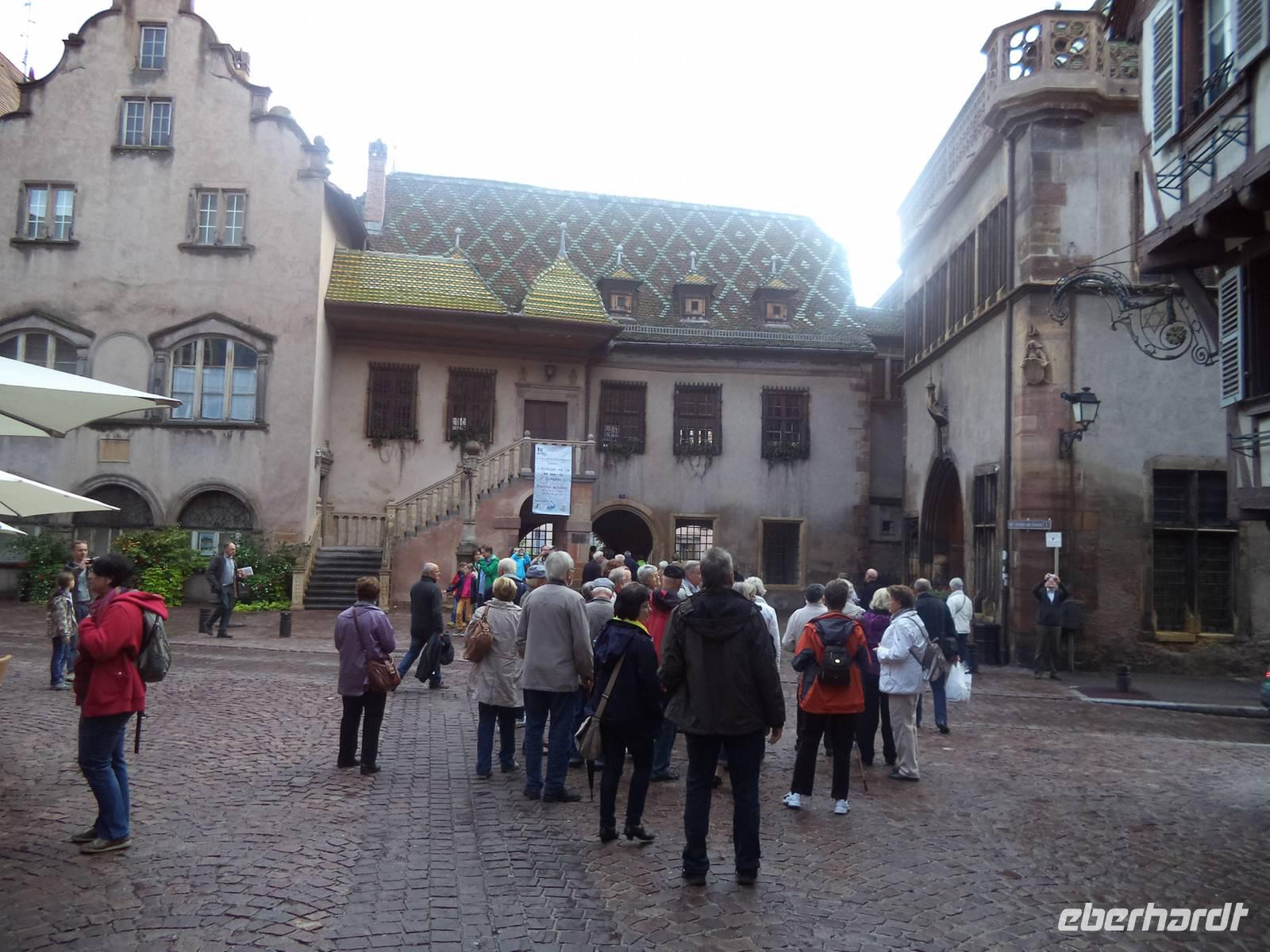 Ein letzter, gutgefüllter Programmtag würde uns heute noch einige Höhepunkte des Elsass zeigen. Wir begannen mit der einstigen freien Reichsstadt Colmar, wegen ihres gut erhaltenen architektonischen Erbes und vor allem seiner Fachwerkbebauung aus mehreren Jahrhunderten Stadtgeschichte wegen weithin berühmt. Ein sehr lebhafter Stadtführer erzählte uns vieles aus der Stadtgeschichte und wies auf die herausragendsten Sehenswürdigkeiten hin wie etwa das alte Zollhaus, das man heute „Koifhus" nennt oder als herrliches Beispiel für Fachwerkarchitektur das 1537 für einen reichen Hutmacher erbaute Pfisterhaus. Nicht fehlen durften natürlich das berühmte „Kopfhaus", dessen Fassade mit mehr als 100 Köpfen verziert ist (und wo der Begriff „Kopfschmuck" eine etwas andere Deutung bekommt...), die ehemalige Wache und das Johanniterordens-Haus. Zu den sehr oft fotografierten Sehenswürdigkeiten gehört auch das ehemalige Kräuterviertel am Fluss Lauch, das liebevoll wegen seiner schönen Häuser, Brücken und Kanäle „Klein Venedig" genannt wird und an das alte Gerberviertel grenzt. Nach der Führung war Freizeit - vielleicht für einen Kaffe, einen Imbiss oder um sich das nahe Unterlindenmuseum mit seinem berühmten Isenheimer Altar von Matthias Grünwald anzusehen.