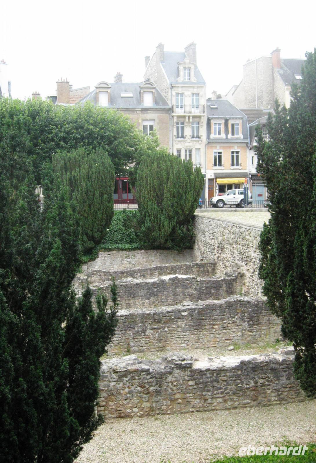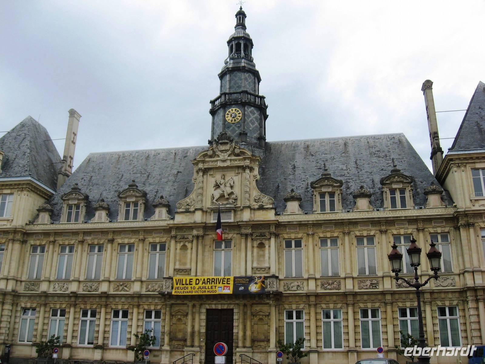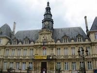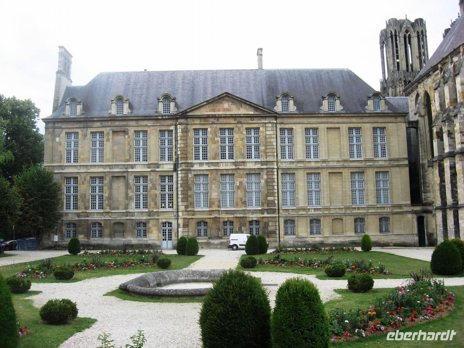 Nach unserem Sonntagsfrühstück packen wir die Koffer und fahren mit dem Bus in das sonntäglich ruhige Reims, machen eine kleine Stadtrundfahrt und steigen dann hinter der großen gotischen Kathedrale aus. Ein kleiner Garten ist um die Apsis angelegt worden, neben der Kathedrale steht das Palais de Tau, der Palast des Erzbischofs, heute ein Museum... Und auf der linken Seite, ein Stückchen weiter, ein Jugendstil-Schmuckstück aus den 20er Jahren des vorigen Jahrhunderts, die Carnegie-Bibliothek, benannt nach dem amerikanischen Stifter Andrew Carnegie.
