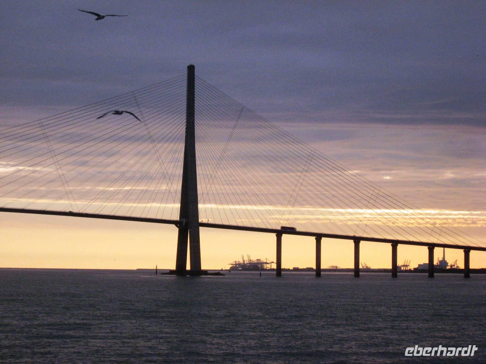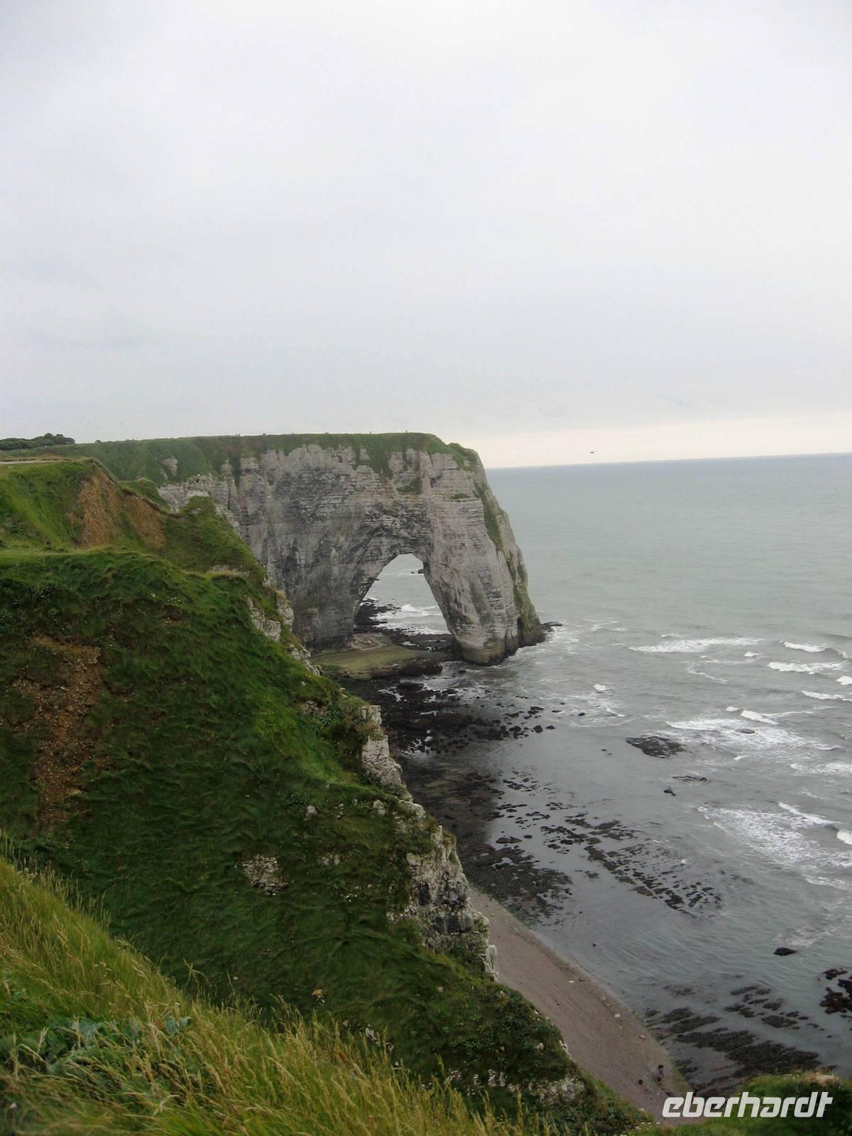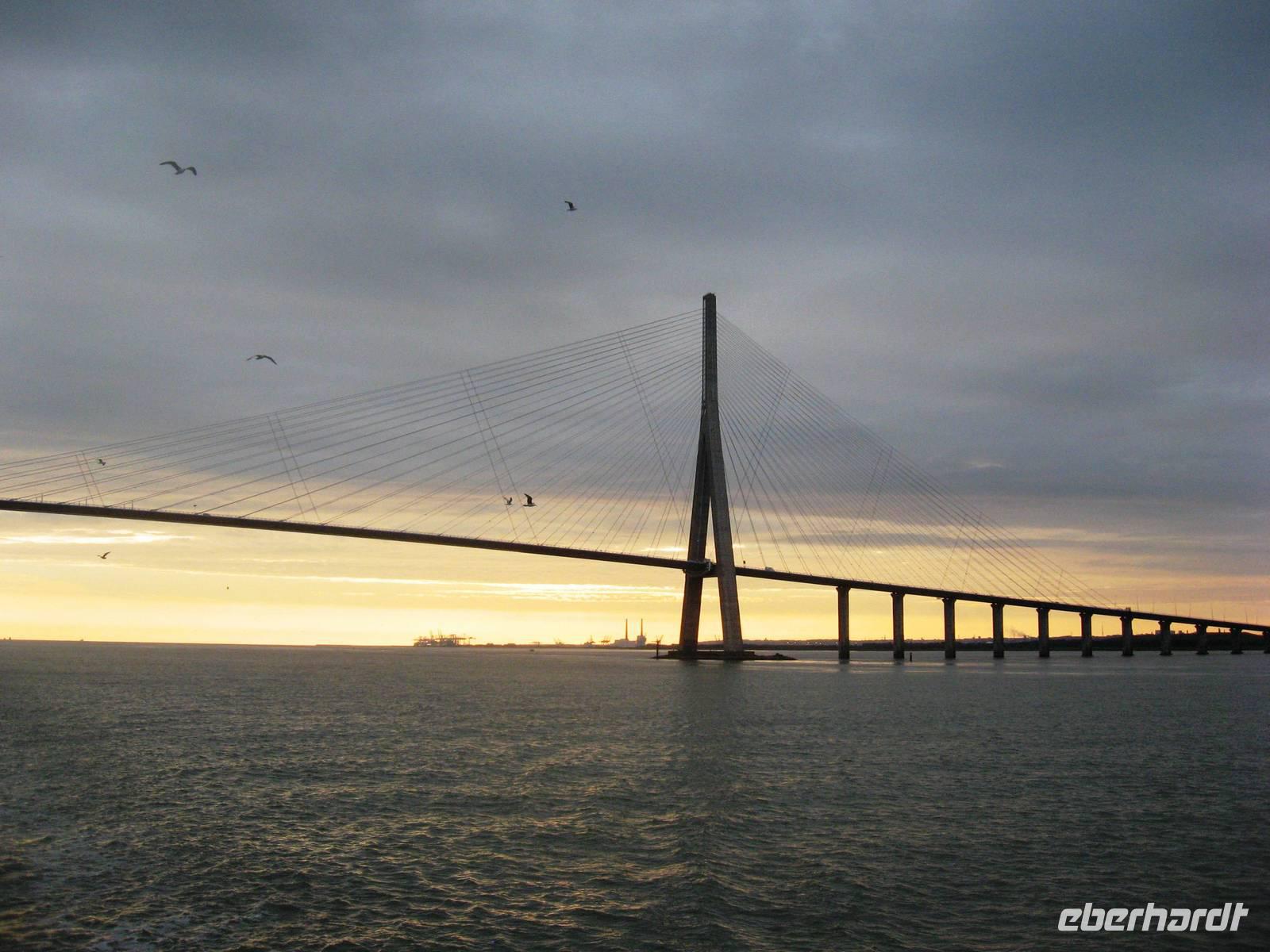 Wir spazieren weiter zum alten Hafenbecken, vorbei an der ältesten Kirche der Stadt (heute Marinemuseum) und weiter in Richtung der Holzkirche Ste.-Cathérine. Nachdem die alte Kirche abgebrannt war, haben die Schiffszimmerleute der Stadt vor Jahrhunderten die Initiative ergriffen und aus schnell geliefertem Holz ein zweischiffiges Kirchenschiff (im wahrsten Sinne des Wortes ?) errichtet. Danach gehen wir hoch zur Côte de Grâce (einem Hügel), um die dortige Kapelle zu besichtigen und von oben einen Blick auf den Ort werfen zu können. Nach dem Mittagessen geht es mit dem Bus in Richtung Etretat, einem kleinen, aber sehr bekannten Seebad. Hier stehen viele schmucke Villen, z. B. die von Maurice Leblanc, dem literarischen Vater des Meisterdiebs Arsène Lupin. Auf der Hauptstraße des Ortes kommen wir am Hotel Salamandre vorbei, an dem es sehr viele phantasievolle Holzschnitzarbeiten zu bewundern gibt. An der Strandpromenade gibt es mehrere Möglichkeiten: hier hin- und herzuspazieren, hinunter an den Kieselstrand zu gehen, den Felsen auf der linken oder der rechten Seite hochzugehen und zum Abschluss noch einen Kaffee im Café zu genießen... Vielleicht auch eine bunte Mischung aus allem. Am späten Nachmittag fahren wir wieder ab und kommen nach einer kleinen Stadtrundfahrt durch Le Havre, der zweitgrößten Hafenstadt Frankreichs nach Marseille bald wieder in Honfleur an, nicht ohne vorher bei einem Fotostopp einige Fotos von der Pont de Normandie, dieser besonderen Schrägseilbrücke über die Seine-Mündung zu machen.