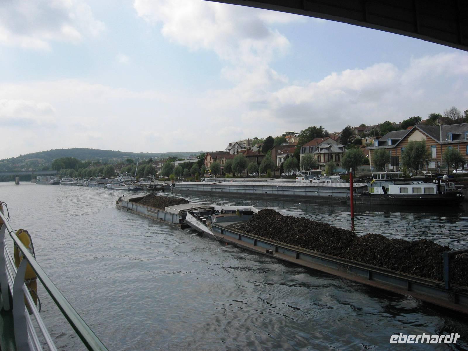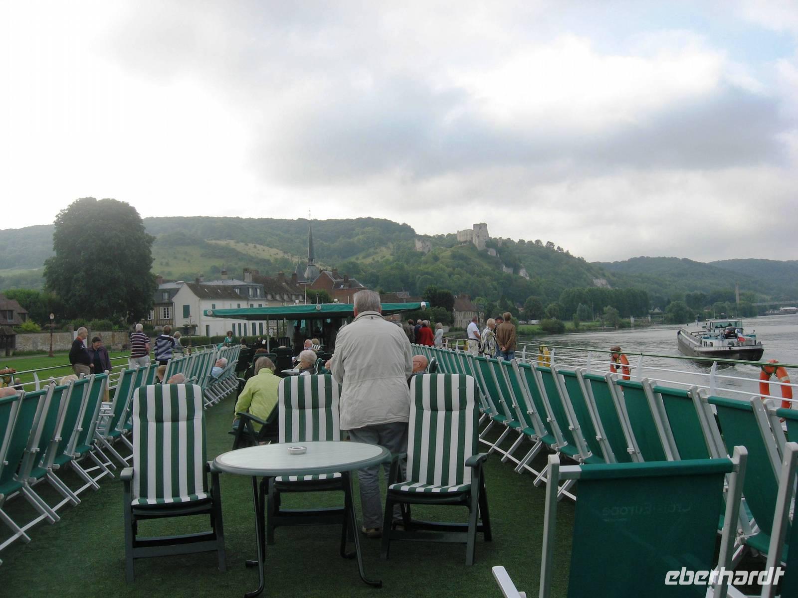 Während des Frühstücks fahren wir an Les Andelys vorbei. Ab hier sind auf der rechten oder linken Seite immer wieder schöne Kalkfelsen zu sehen.
