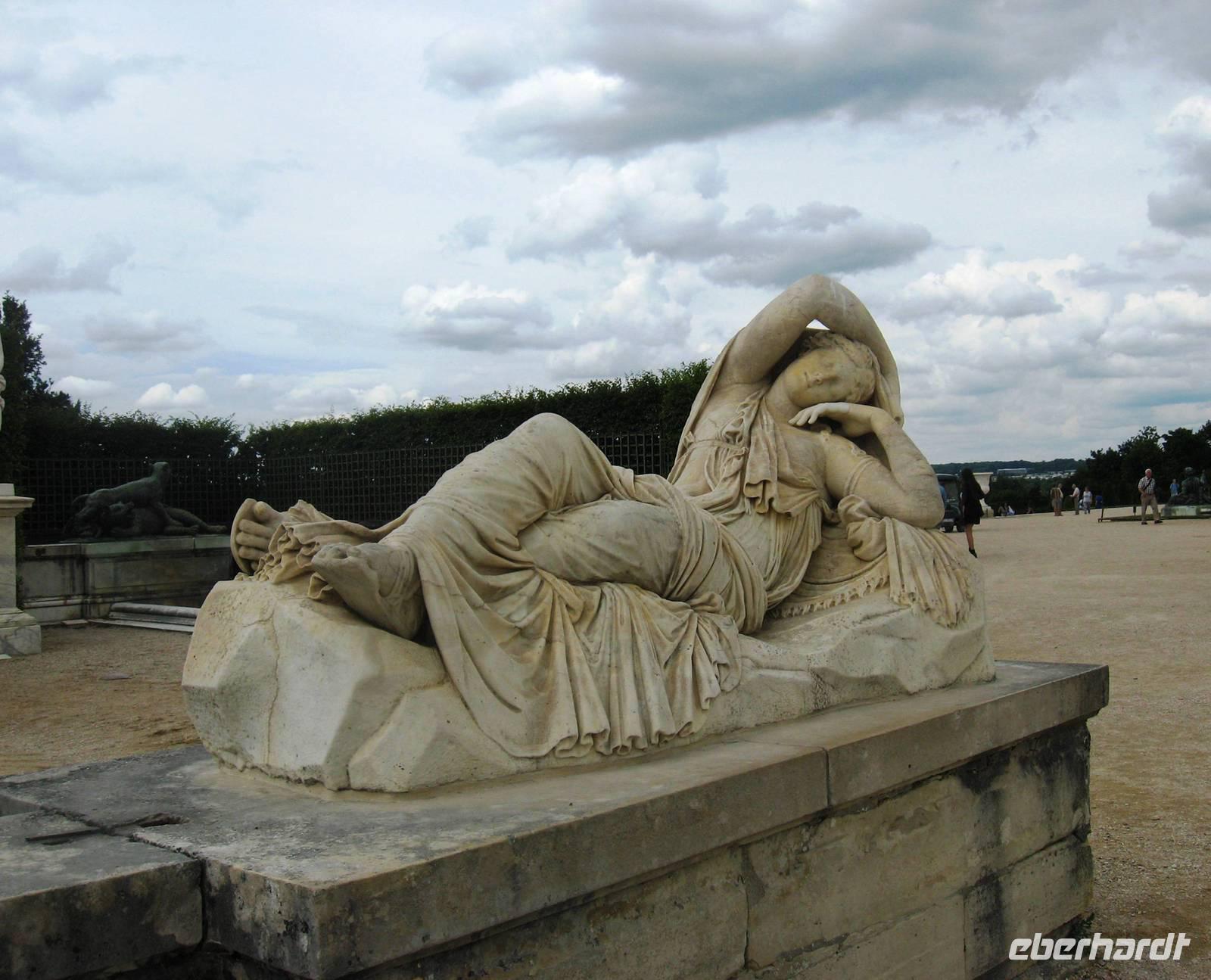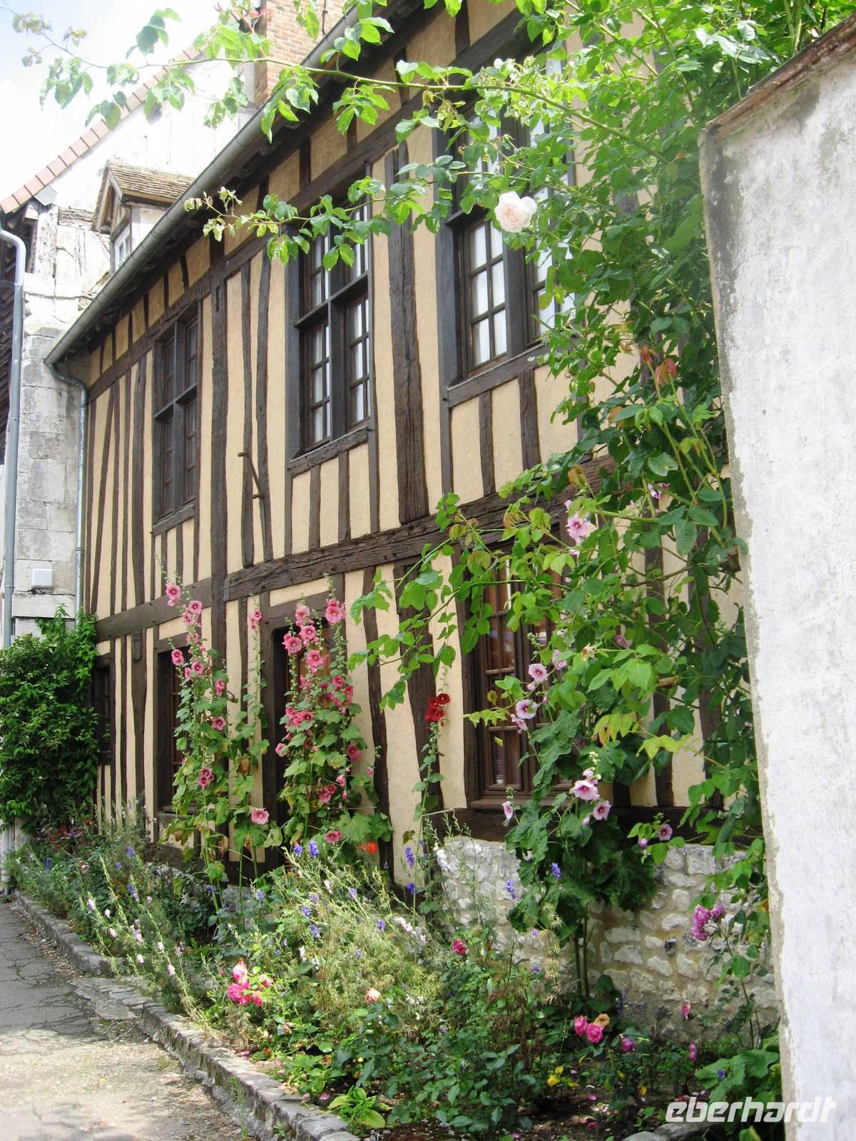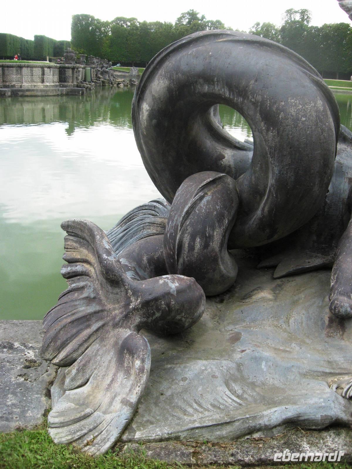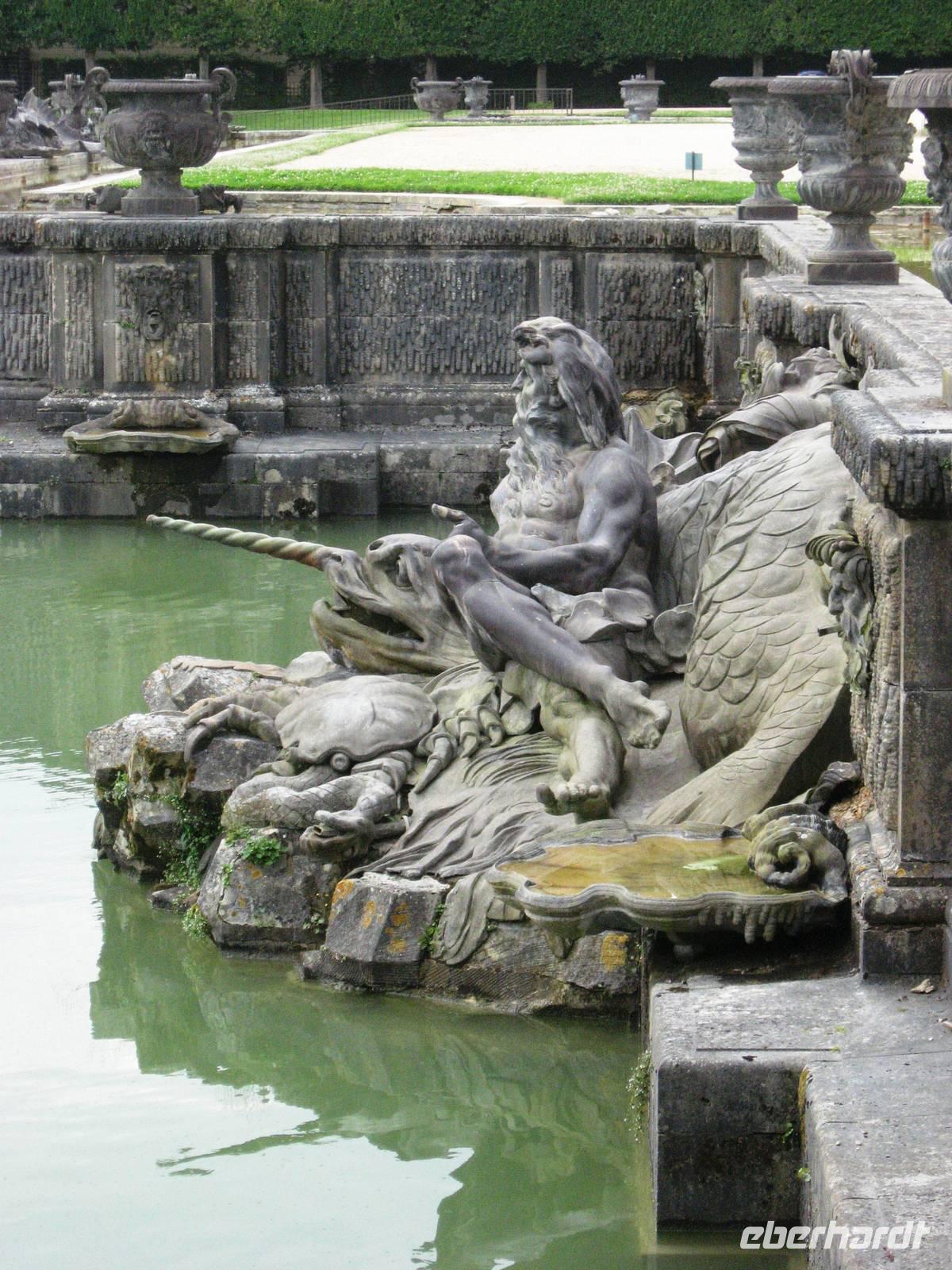 Früh am Morgen verlassen wir Paris, die eigentliche Flussfahrt beginnt. Während des Frühstücks gleiten wir an der Landschaft und an vielen interessanten Hausbooten vorbei. Später kommen wir der Natur vom Sonnendeck aus näher... Im Salon gibt es viele Informationen über die Seine und/oder Rätselspiele. Nach dem Mittagessen machen wir von Poissy aus einen Ausflug nach Versailles in die großartigen Gartenanlagen des berühmten Schlosses. Je nach Wunsch kann man hier einen größeren oder kleineren Spaziergang machen. Mit einigen Gästen zusammen machen wir einen etwas größeren Spazierweg von der Schlossterrasse aus bis zur Orangerie, zum „Ballsaal", vorbei am Bacchus- und am Saturnbecken, durch einen Hain hindurch zum schönen Apollobecken, in dem sich - wie in fast allen Wasserbecken, Karpfen tummeln. Schon von oben aus haben wir den großen Kanal gesehen und gestaunt, wie viel Perspektive und Tiefe er dem Garten verleiht, jetzt gehen wir auf ihn zu und könnten ein Ruderboot mieten, um eine halbe oder gar eine ganze Stunde auf ihm hin- und herzufahren. Aber wir möchten den Garten weiter zu Fuß erkunden, - ein erfrischendes Eis und wir gehen weiter in Richtung Trianon, biegen aber vorher wieder rechts ab und erreichen das große und geheimnisvolle Neptunbecken auf der rechten Seite des Schlosses, von wo aus wir wieder Richtung Ausgang streben. Au revoir, Versailles. Am späten Nachmittag kommen wir mit dem Bus am Schiff in Mantes-la-Jolie an und fahren weiter bis nach Vernon, einer hübschen Stadt mit einer sehr sehenswerten Kirche unweit unseres Anlegers, zu der wir mit drei regenfesten Gästen ;-) nach dem Abendessen noch einen Spaziergang machen. Rund um die Kirche stehen schmucke Fachwerkhäuser.