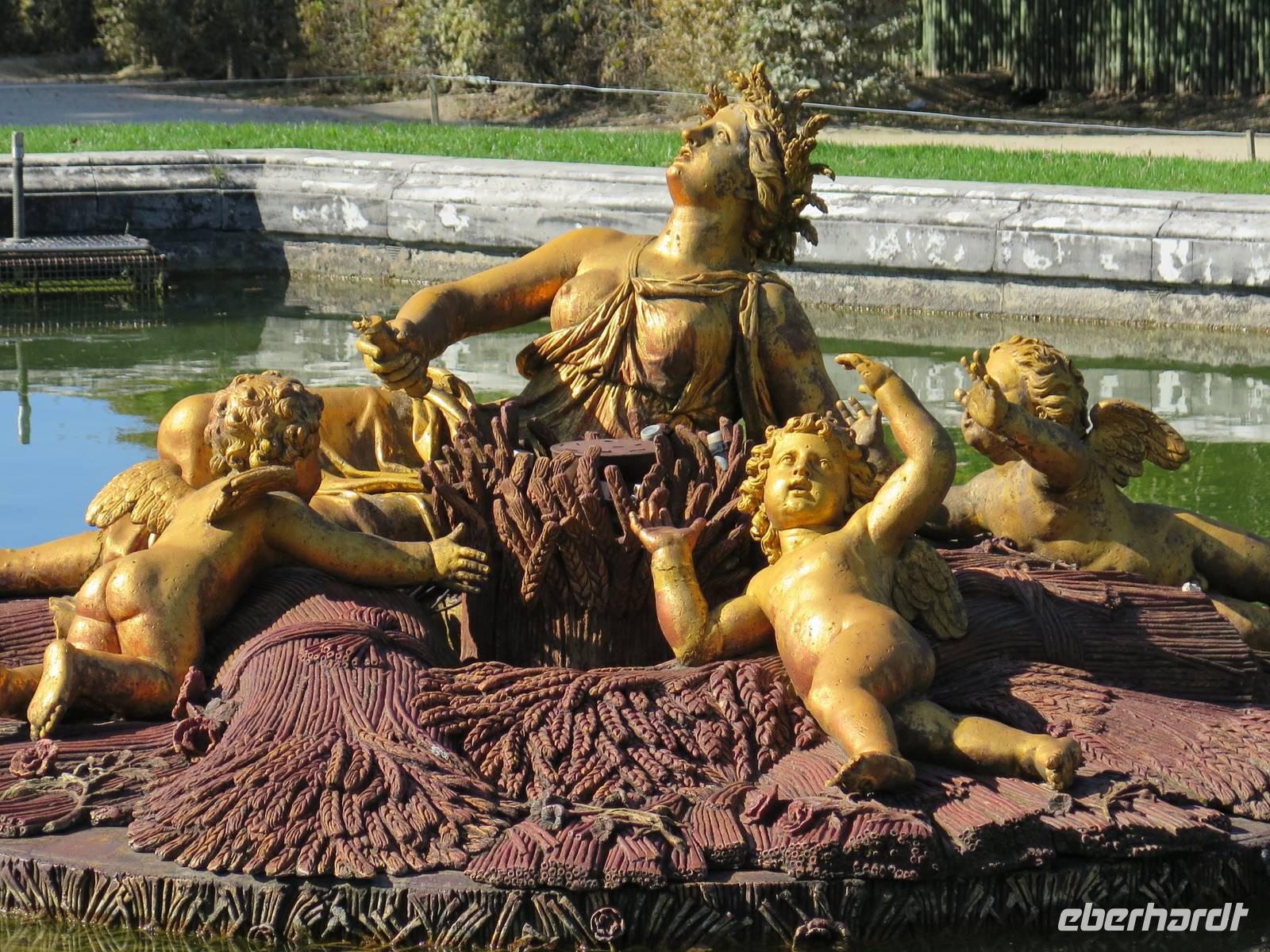 Heute ist der Tag, an dem wir Paris für eine Weile verlassen, um dann wieder zurück zu kehren. Unser Schiff setzt sich in Richtung Poissy in Bewegung. Wir entfernen uns vom Pariser Zentrum nur etwa 32 Kilometer. Auf der Seine, die sich in diesem Gebiet nur so dahinschlängelt, brauchen wir jedoch den ganzen Vormittag für diese Wegstrecke. Die Zeit verkürzen wir scheinbar und machen uns bei einem Vortrag über die Seine schlau. Nach dem Mittag dann brechen wir nach Versailles auf. In diesem Ort befindet sich eine der größten Palastanlagen Europas. Wir sehen die Schlange vor dem Schloss und sind froh, dass wir an diesem wunderschönen Herbsttag die royalen Gärten besichtigen wollen. Bevor die Springbrunnen frei geschaltet werden, haben wir schon einen schönen Spaziergang gemacht. Die Hecken sind singende klingende Bäumchen, aus denen barocke Musik zu hören ist. In der Mitte eines jeden Quadrates finden wir einen anderen schönen Brunnen. Der bedeutende Landschafts- und Gartengestalter André Le Nôtre konzipierte als Gartenarchitekt unter Ludwig XIV. diese Parkanlage. Beschwingt kehren wir auf das Boot zurück, das inzwischen ohne uns zwei weitere Seineschleifen durchfahren hat.