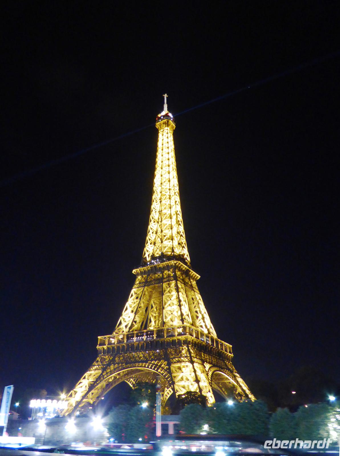 Abends nehmen wir unser exzellentes Gala-Dinner schon wieder unweit des beleuchteten Eiffelturms ein - fünfminütiges Flimmern zu jeder vollen Stunde eingeschlossen.