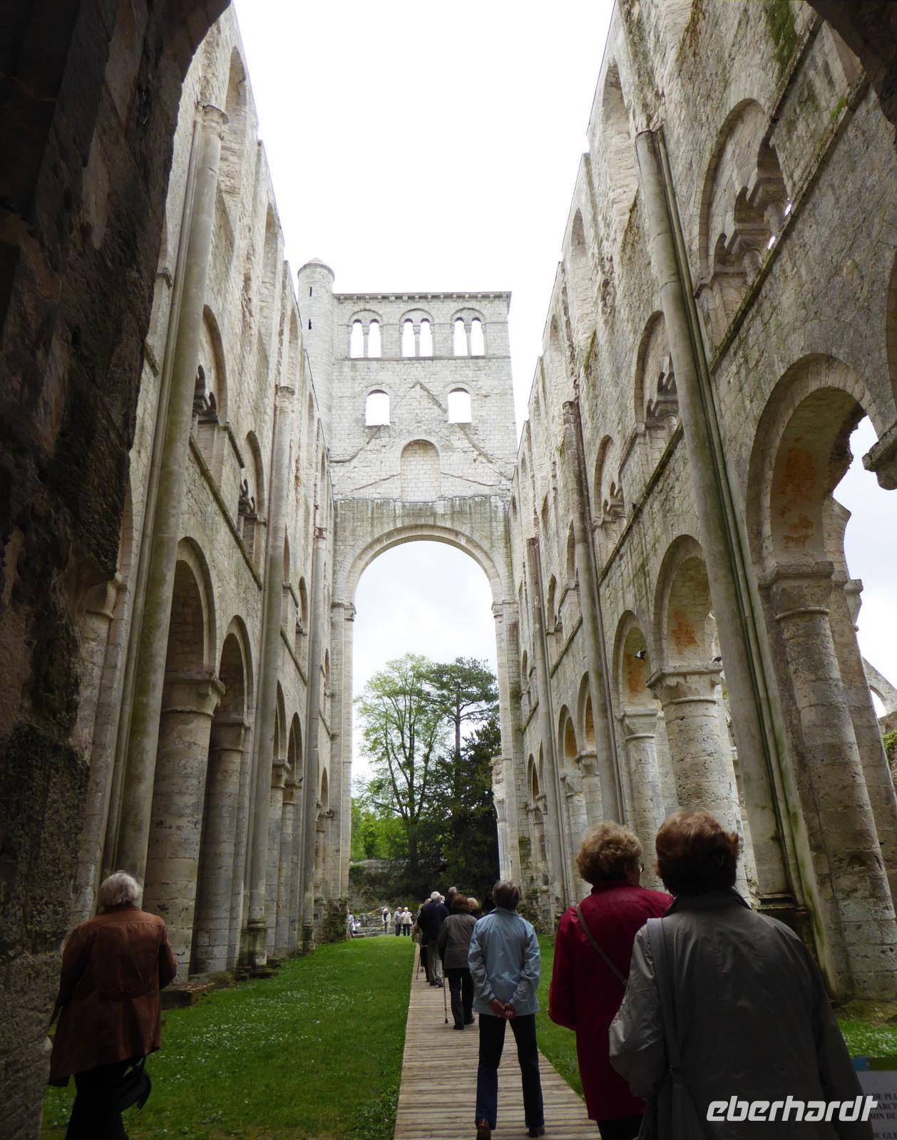 Mittags erreichen wir Duclair und fahren von hier aus ein kurzes Stück mit unserem Bus an schönen normannischen Häusern vorbei nach Jumièges und den romantisch schönen Ruinen dieser ehemaligen Benediktinerabtei. Schon aus der Ferne kann man die 46 m hohen Türme sehen.
