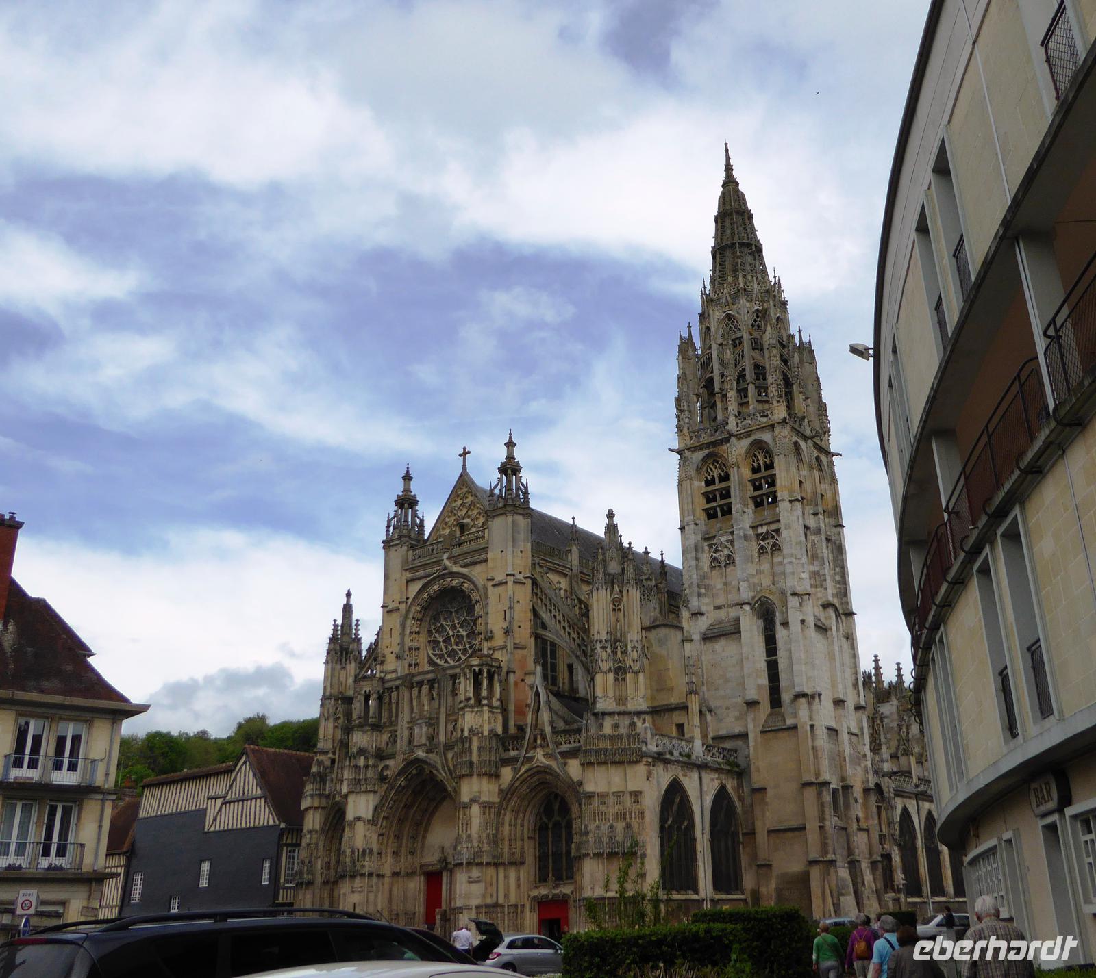 Wir fahren weiter nach Caudebec-en-Caux, einem kleinen Ort an der Seine, der früher auch touristische Bedeutung hatte: hier konnte man die sogenannte „mascaret" beobachten, eine bis zu 7 m hohe landeinwärts rollende Flutwelle. Im Ort gibt es auch eine wunderschöne gotische Kirche, die an diesem Tag leider wegen eines Gottesdienstes nicht zugänglich ist, aber auch von außen sehen wir, mit wieviel Schweiß, Arbeit und Könnerschaft hier gearbeitet worden ist.