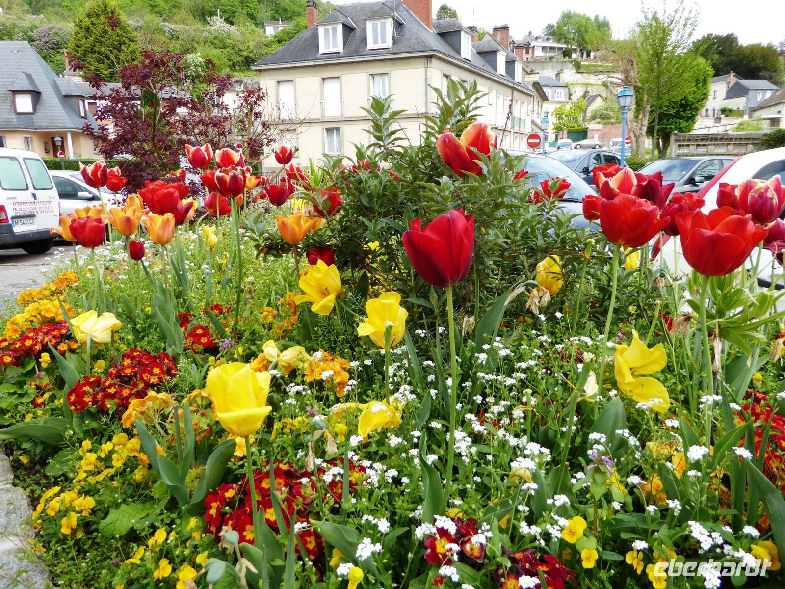 In Mantes-la-Jolie - hier steht eine wunderschöne Kirche mit bunt glasierten Dachziegeln - gehen wir abends wieder an Bord und fahren noch bis nach Vernon weiter, einer sehr hübschen Stadt mit einer hohen gotischen Kirche und typischer Fachwerkbebauung um die Kirche herum. Hier kann der Tag wunderbar bei einen kleinen Abendspaziergang ausklingen.