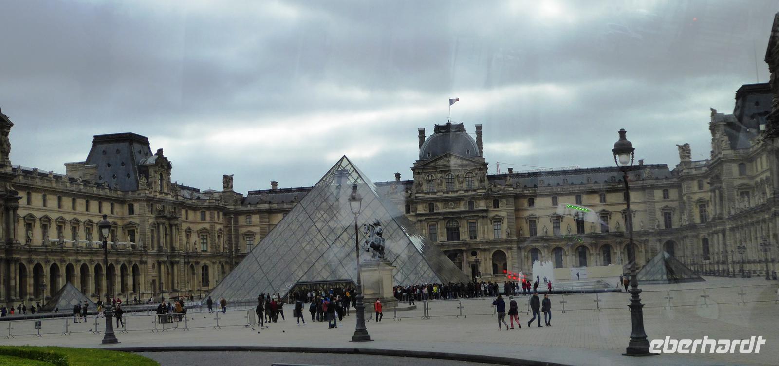 Nach unserem Frühstück klettern wir zusammen mit unserem Stadtführer Paul in den Bus: auf geht es zu unserer großen Stadtrundfahrt durch Paris. Wir sehen unter anderem die großen Boulevards, die Haussmann'sche Architektur, den Arc de Triomphe, die Champs-Elysées, den Concorde-Platz, die Alte Oper von Garnier, genießen den Blick über die Stadt von der Terrasse des Kaufhauses Galéries Lafayette aus, fahren am Vendôme-Platz mit dem legendären Ritz-Hotel und der Siegessäule vorbei, in den Hof des Louvre mit Blick auf die Glaspyramide, weiter in Richtung Notre-Dame, an der Julisäule und der neuen Oper vorbei, am Panthéon und an der Universität vorbei und machen einen kleinen Spaziergang durch den Jardin du Luxembourg.