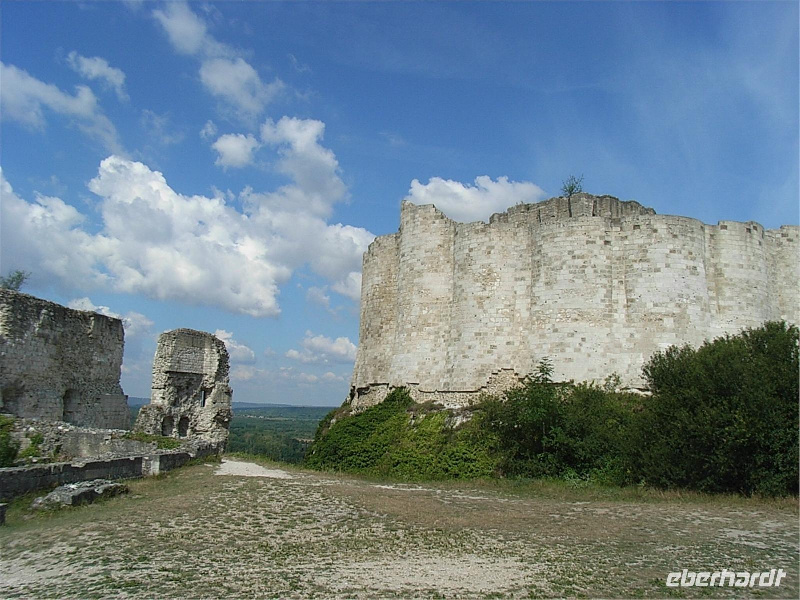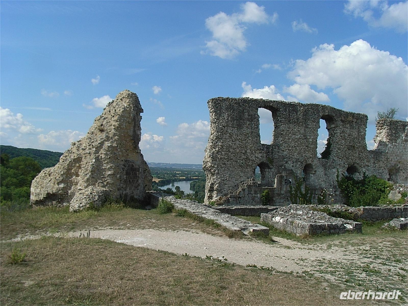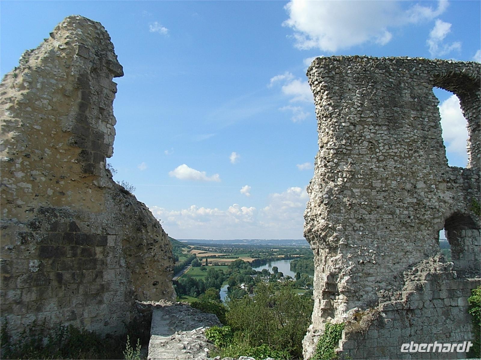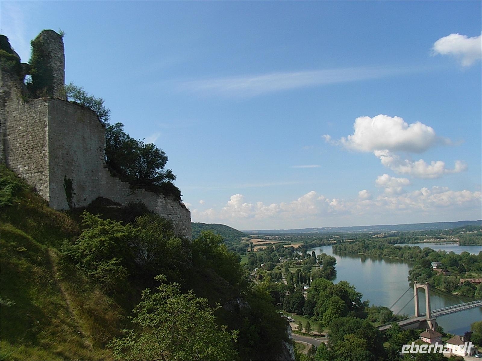 aus dem Schloss und die französische Armee läßt sie nicht durch ihre Linien. So verhungern viele Frauen, Kinder und verwundete Soldaten, die hier Schutz gesucht hatten, in einem eisigen Winter unterhalb der Festungsmauern, bevor das Chateau 1204 französischer Besitz wird. Im 100jährigen Krieg wird die Festung abwechselnd englisch und französisch. Ende des 16. Jahrhunderts läßt Heinrich IV. die Anlage schleifen. Kapuziner und Büßermönche nutzen die Steine Anfang des 17. Jahrhunderts zur Restauration ihres Klosters. Mitte des 19. Jahrhunderts werden die Reste des Chateau Gaillard unter Denkmalschutz gestellt. Wir genießen heute die unbeschreiblich schöne Aussicht auf Sequana, die kurvenreiche Seine mit ihrer sanft anmutenden ländlichen Umgebung. Wir verweilen etwas länger bei einer Kostprobe