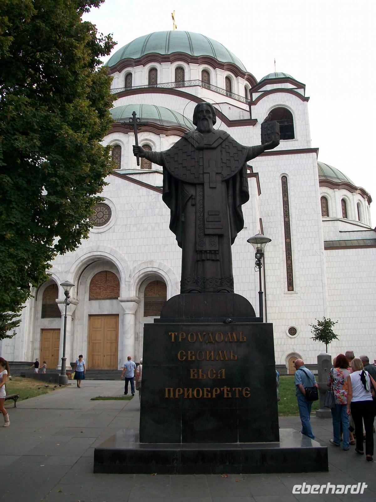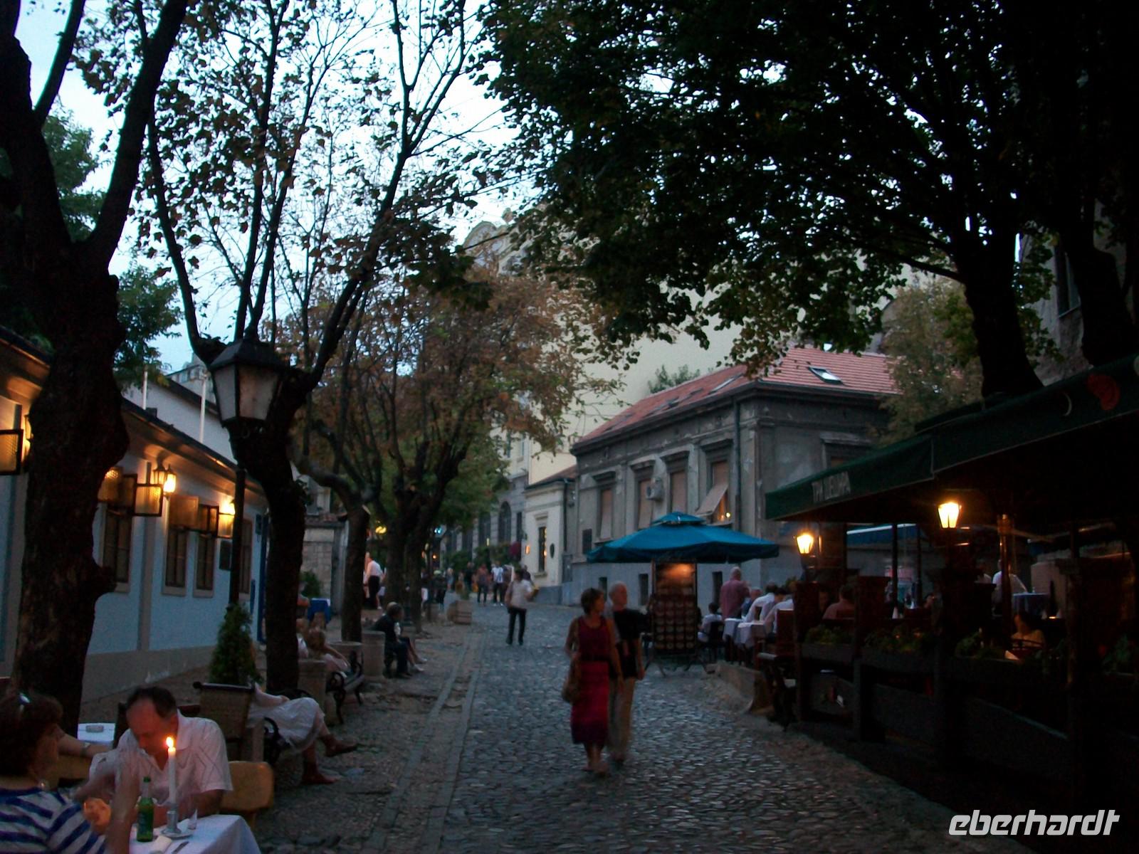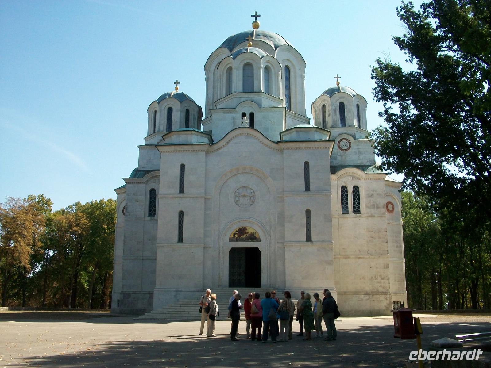 Im letzten Jahr ist hier in Belgrad viel geschehen, die Baustellen sind verschwunden und so sind wir schon nach einer halben Stunde am Hotel angelangt. Nun haben unsere Gäste etwas Zeit sich frisch zu machen, die Sachen zu sortieren und kurz vor drei beginnt dann die Stadtrundfahrt die dieses Jahr Bogdanka gestaltet. Nach einer kleinen Rundfahrt vorbei an der ehemaligen Königsresidenz und dem Haus der Blumen, Titos letzter Ruhestätte, langen wir an der Kirche des heiligen Sava an. Es ist ein monumentaler Kuppelbau, verkleidet mit Marmor und im Innern noch immer eine Baustelle. Trotzdem ist es ein sehr feierlicher Ort, an den Ikonen beten die orthodoxen Christen und der Raum ist erfüllt von religiösen Gesängen. Dann geht es weiter zur Festung Kalemegdan, Bogdanka hat uns auch hier viel zu erzählen über die turbulente Geschichte dieser Stadt. Die Festungsanlagen sind sehr weitläufig und dienen der Belgrader Bevölkerung als Refugium, hier ist von der Hektik der Großstadt nicht viel zu spüren. Wunderschön ist der Blick hinunter auf den Zusammenfluss von Save und Donau und am Ende der Besichtigung besteigen wir wieder den Bus um zu unserem Abendessen zu gelangen. Zuvor machen wir noch einen kurzen Abstecher zur Hauptfußgängerzone und sind dann etwas später zu Fuß unterwegs. Unser Weg führt uns ins Bohéme- Viertel von Belgrad. Es ist das historischste uns zugleich gemütlichste Viertel der Stadt und im Restaurant zu den drei Hüten nehmen wir, untermalt von Musik, unser sehr reichhaltiges Abendessen ein. Auch wenn wir nun schon etwas müde sind, dem eigenartigen Reiz dieses Abends kann sich niemand entziehen. Es ist der ruhige Abschluss eines anstrengenden Tages, nach dem Essen geht es zurück zum Hotel, in den weichen Betten finden wir schnell einen erholsamen Schlaf und lassen schon in Vorfreude auf morgen den Gott der Träume agieren.