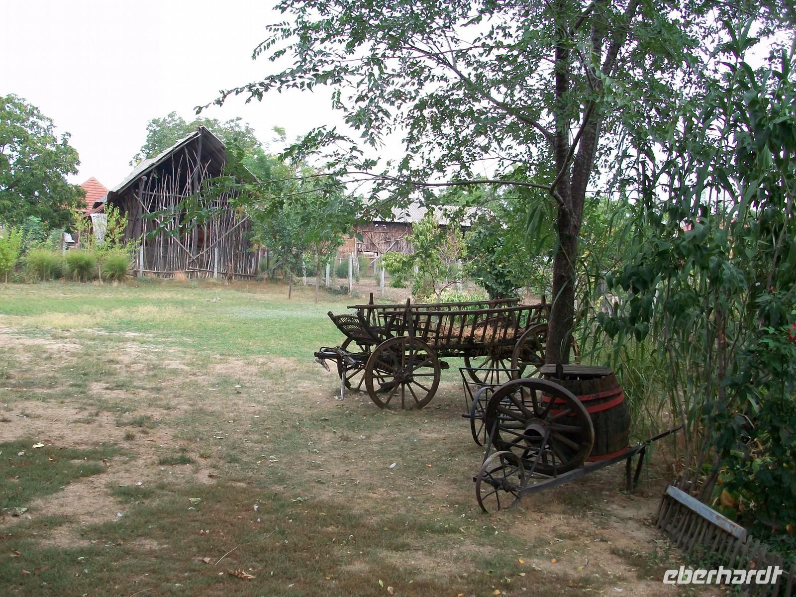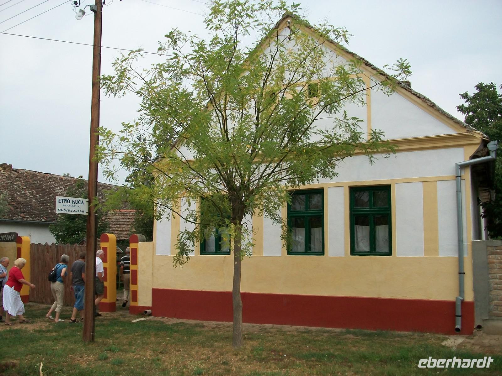 Wir durchfahren die Voivodina die einst von den Donauschwaben besiedelt wurde. Diese machten die sumpfigen Gegenden urbar und zu dem was sie heute sind: eine fruchtbare Kornkammer. Auch aus diesem Grund ist unser erstes Ziel heute ein Bauernhof im Dorf Maradik. Hier ist alles noch sehr urig und da kaum Touristen kommen, auch noch sehr authentisch. Unser Bus sucht sich auf der schmalen Dorfstraße einen Platz; am Eingang werden wir schon freundlich begrüßt und nun tauchen wir ein in eine längst vergangene Zeit.