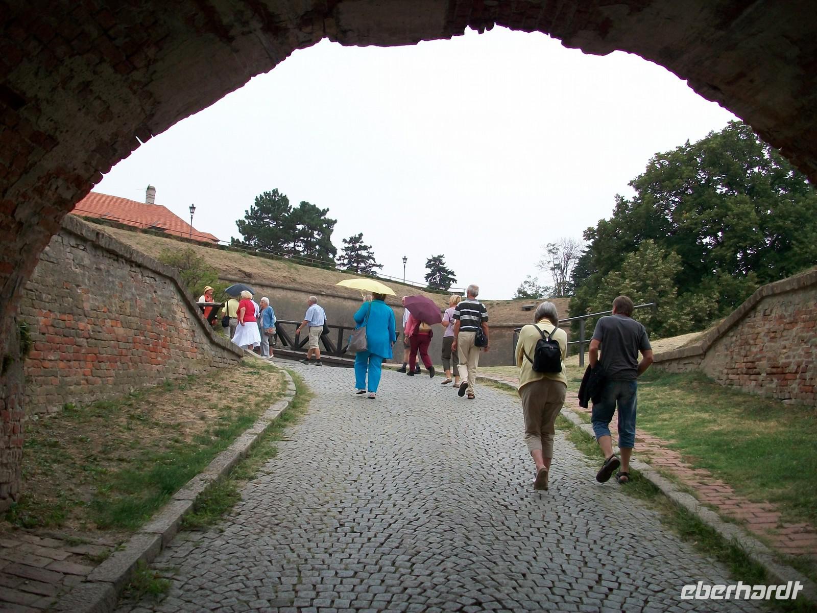 Der Himmel hat sich bezogen und sendet ein paar Tropfen herab als wir auf dem Weg zur Festung Petrovaradin sind. Sie stammt noch aus den Zeiten der Habsburger und hat eine sehenswerte Architektur aufzuweisen. Mit Bogdanka sind wir nun auf Erkundungsgang, sie zeigt uns viele Ecken der Festung und bringt uns auch die unruhige Geschichte näher. Am Aussichtspunkt gleich neben dem Uhrturm, haben wir einen phantastischen Blick auf die Donau. Gegenüber liegt Novi Sad- die Hauptstadt der Voivodina die wir nun besuchen werden. Nach einer kleinen Rundfahrt sind wir zu Fuß unterwegs und bald in der Fußgängerzone angelangt. Hier ist es etwas unruhig weil gerade sehr lautstark für ein Konzert geprobt wird. Die Häuser und die Kirche die den Hauptplatz umstehen machen einen sehr gepflegten Eindruck und Bogdanka hat uns viel Wissenswertes aus ihrer Heimatstadt zu erzählen. Dabei vergeht die Zeit wie im Flug, wir gönnen unseren Gästen nach der Führung eine Stunde Freizeit und treffen uns dann wieder zum Abendessen in einem der besten Restaurants dieser Stadt. Da das Wetter schön geblieben ist, können wir im gepflegten Innenhof Platz nehmen und die angenehme Atmosphäre genießen. Verwöhnt werden wir wieder mir leckeren Essen der unerschöpflichen Balkanküche, deftig, schmackhaft und sehr reichlich. Nach diesen schönen Stunden treten wir dann die Rückreise nach Belgrad zu unserem Hotel an, die Koffer müssen noch gepackt werden, morgen geht es weiter es gibt wieder viel zu erleben!