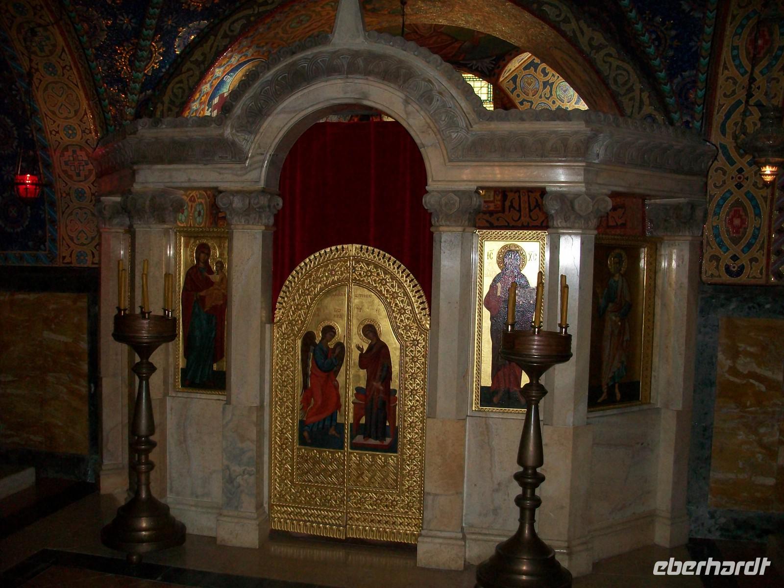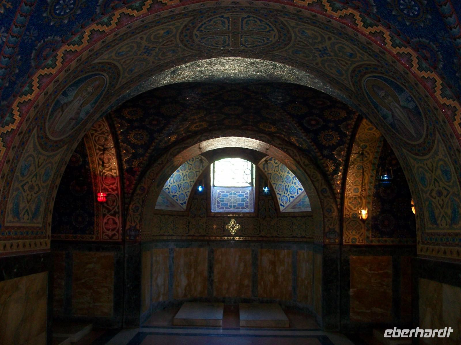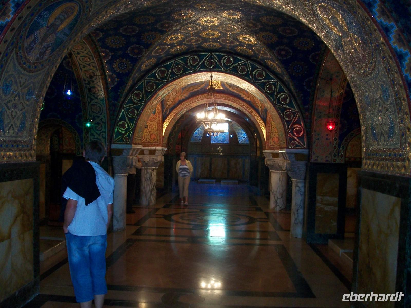 Wissenswert sind die Erklärungen über diese schöne Kirche und im Anschluss schauen wir uns noch die Krypta mit den Gräbern der Königsfamilie Kardordevic an. Auch diese letzte Ruhestätte ist ausgekleidet mit Mosaiken, es ist eine wahre Pracht diese schöne Arbeit anzuschauen.