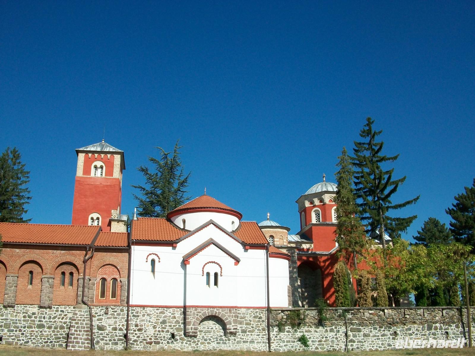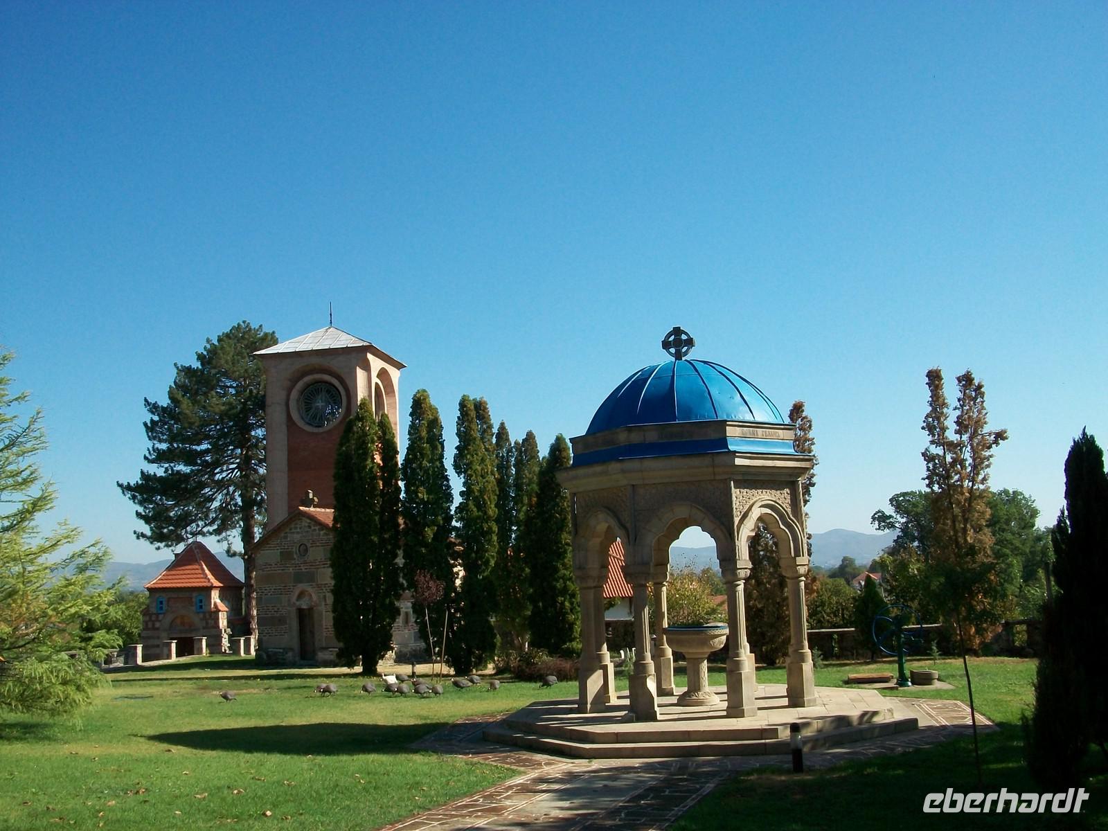 Wir sind im schönen Innenhof angelangt und werden nun von Bogdanka in die Geheimnisse dieses Klosters eingeweiht. Hier sind noch uralte Fresken erhalten geblieben an denen aber leider der Zahn der Zeit genagt hat. Einige Risse im Mauerwerk deuten auf ein Erdbeben hin, welches vor nicht allzu langer Zeit diese leichten Schäden anrichtete. Dennoch ist dieses Kloster sehr sehenswert und für Serbien sehr wichtig. Im Anschluss bleibt noch etwas Zeit um sich im Außengelände umzuschauen; sehr gepflegt sind hier die Anlagen und es ist auch ein Hort der Ruhe.